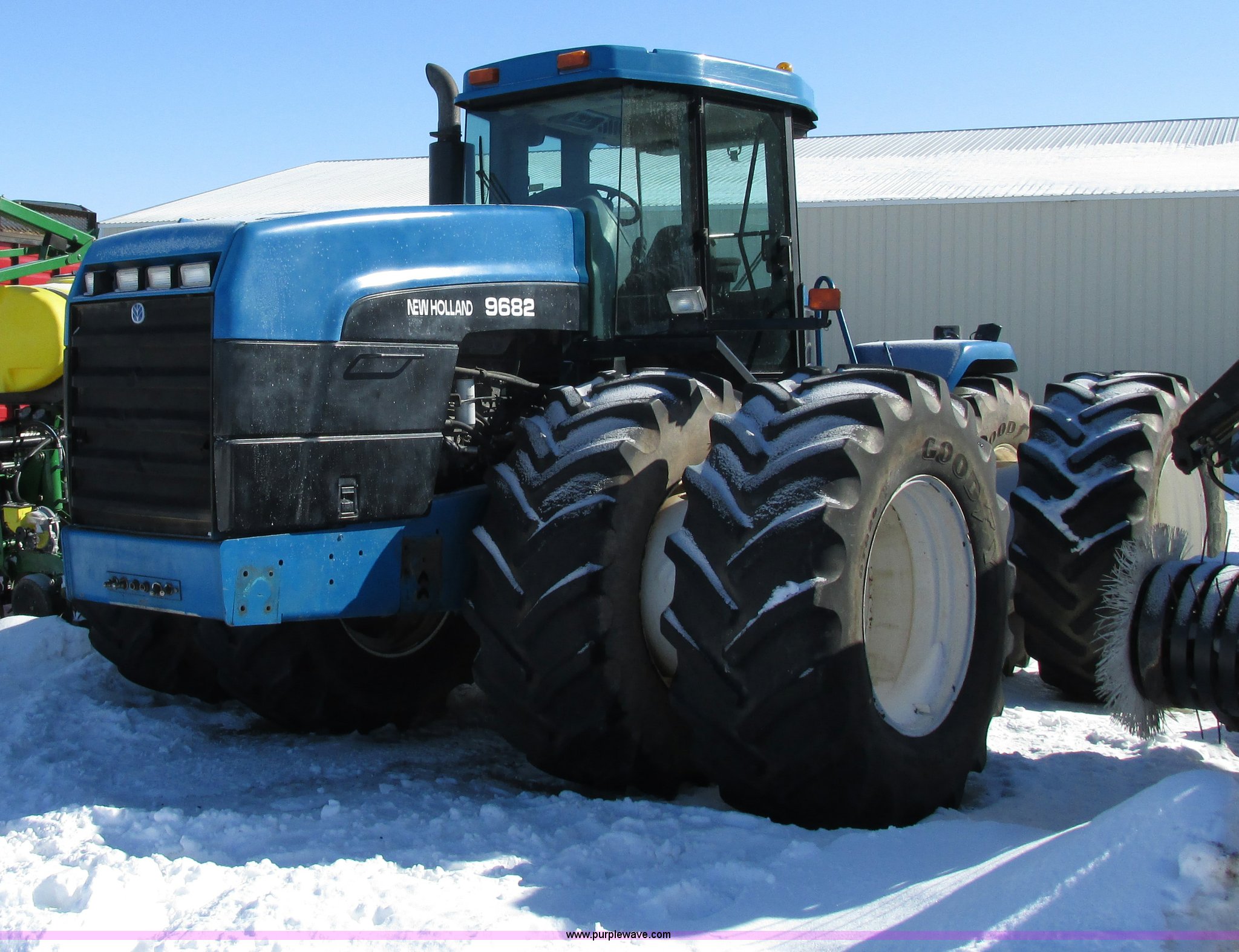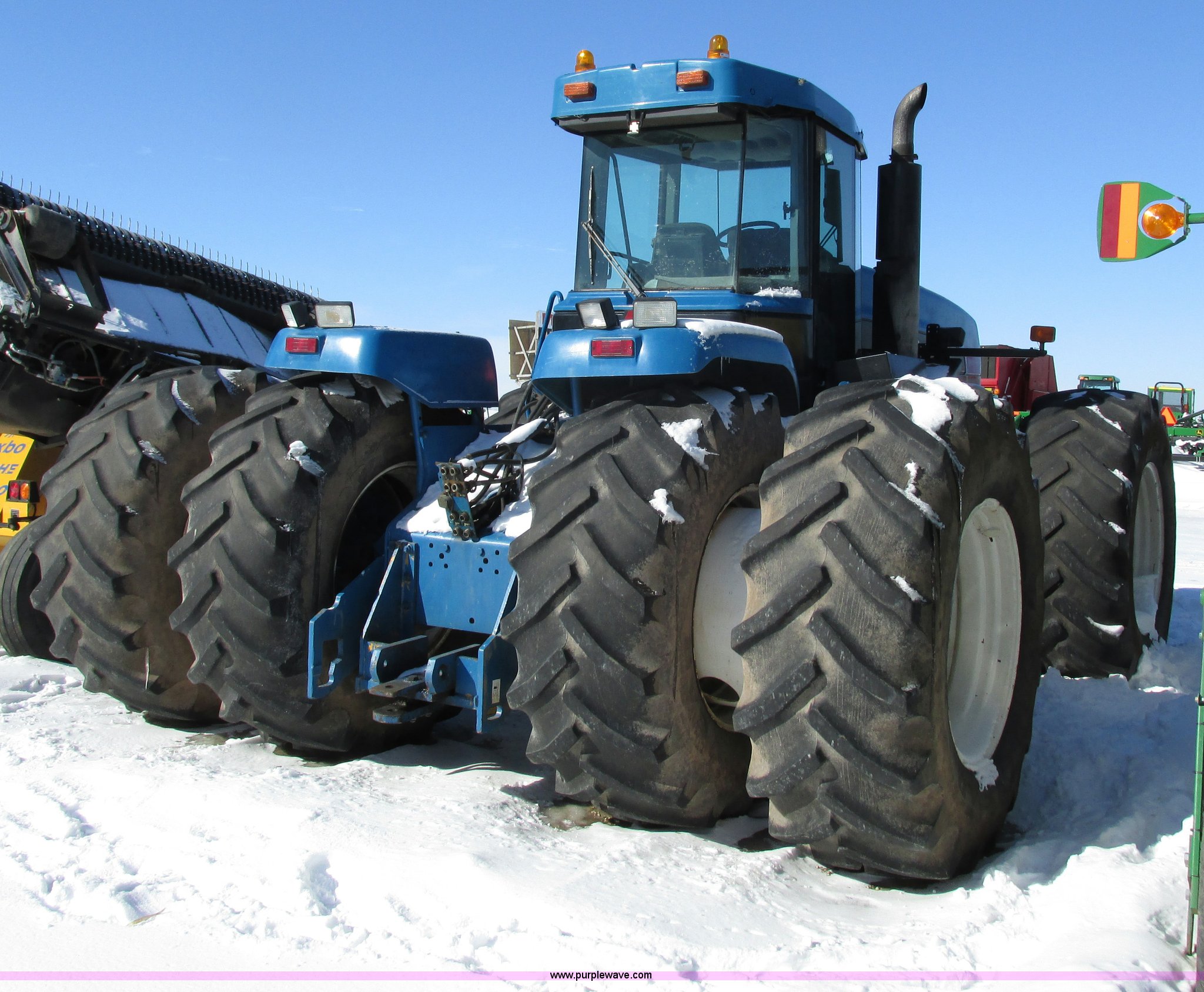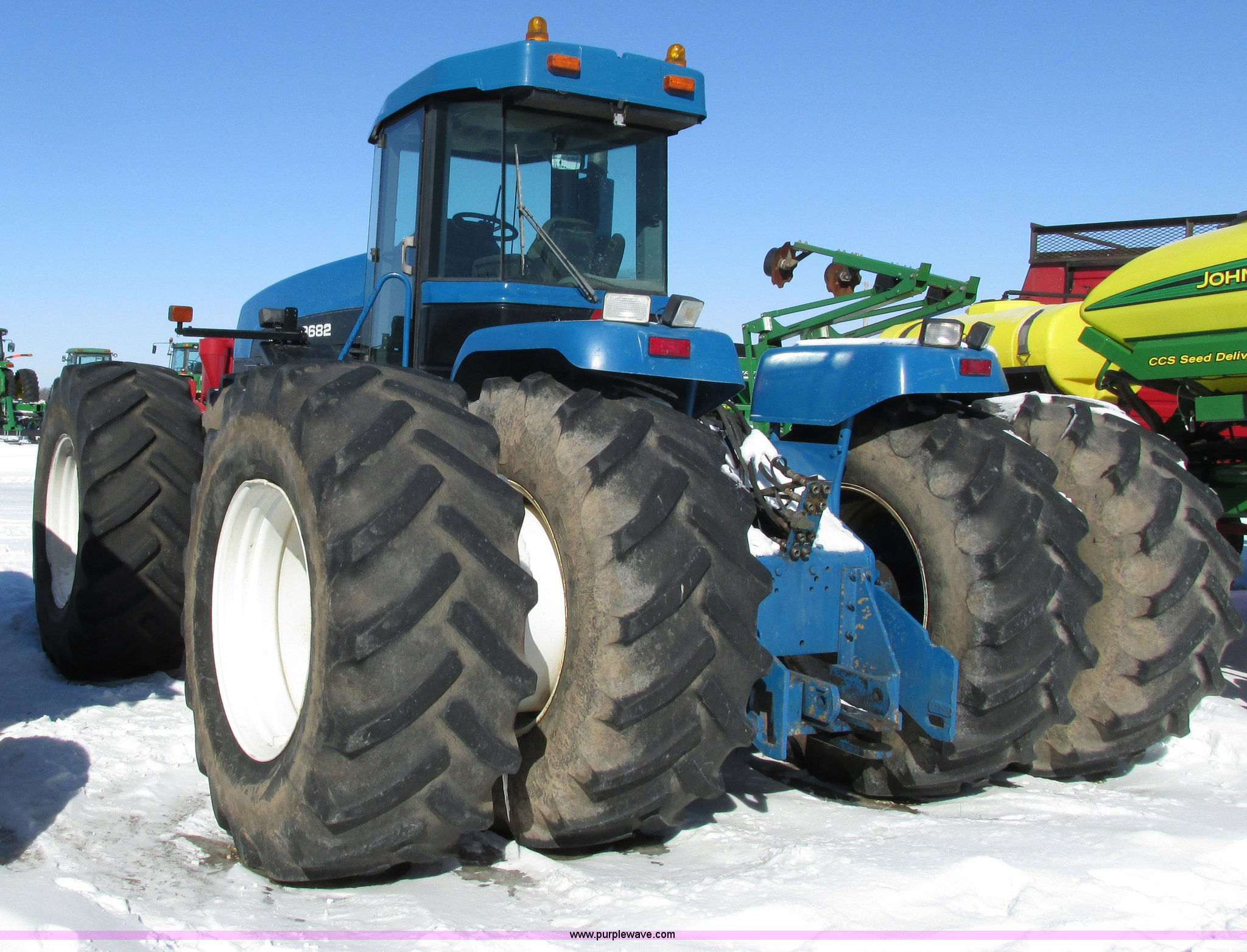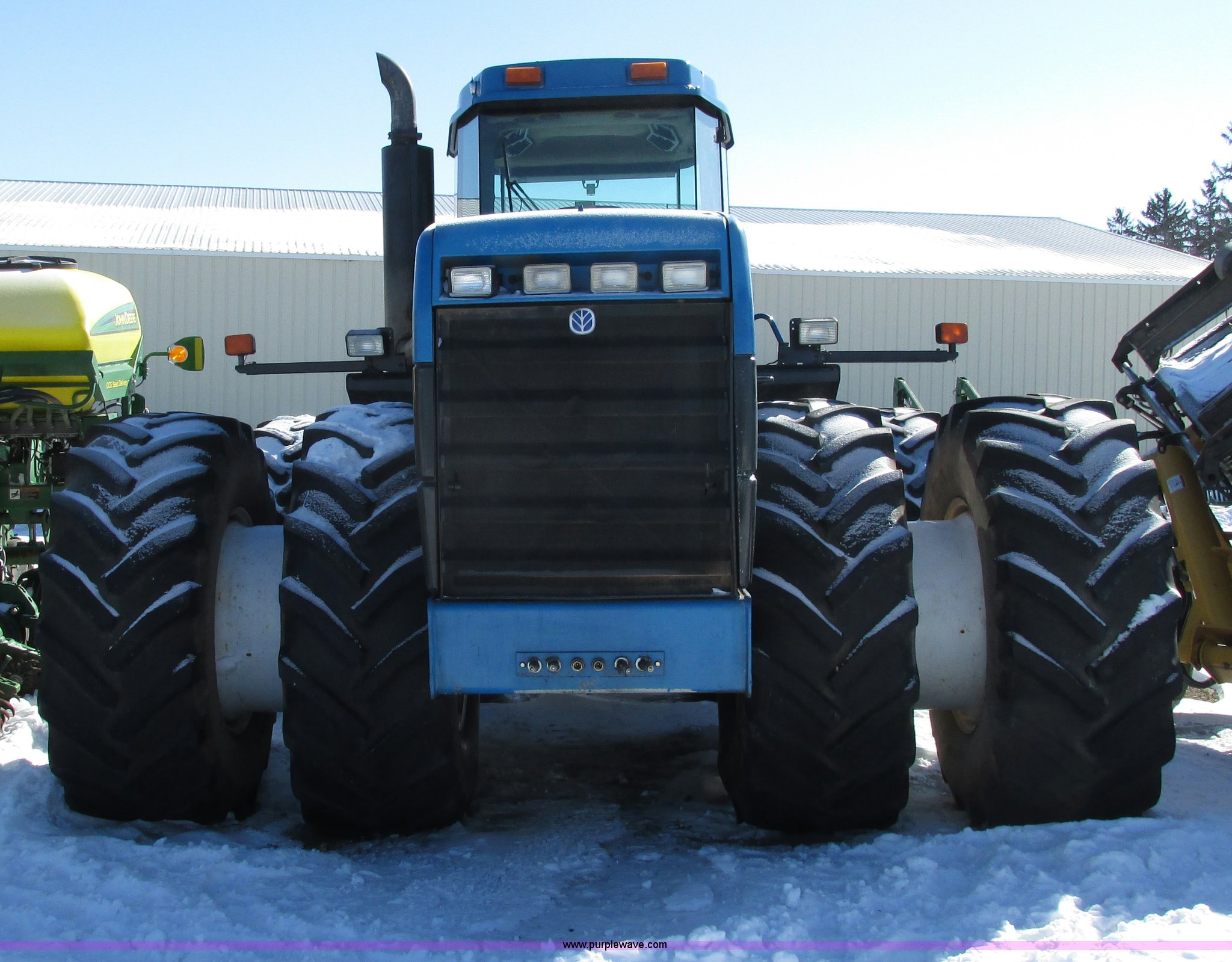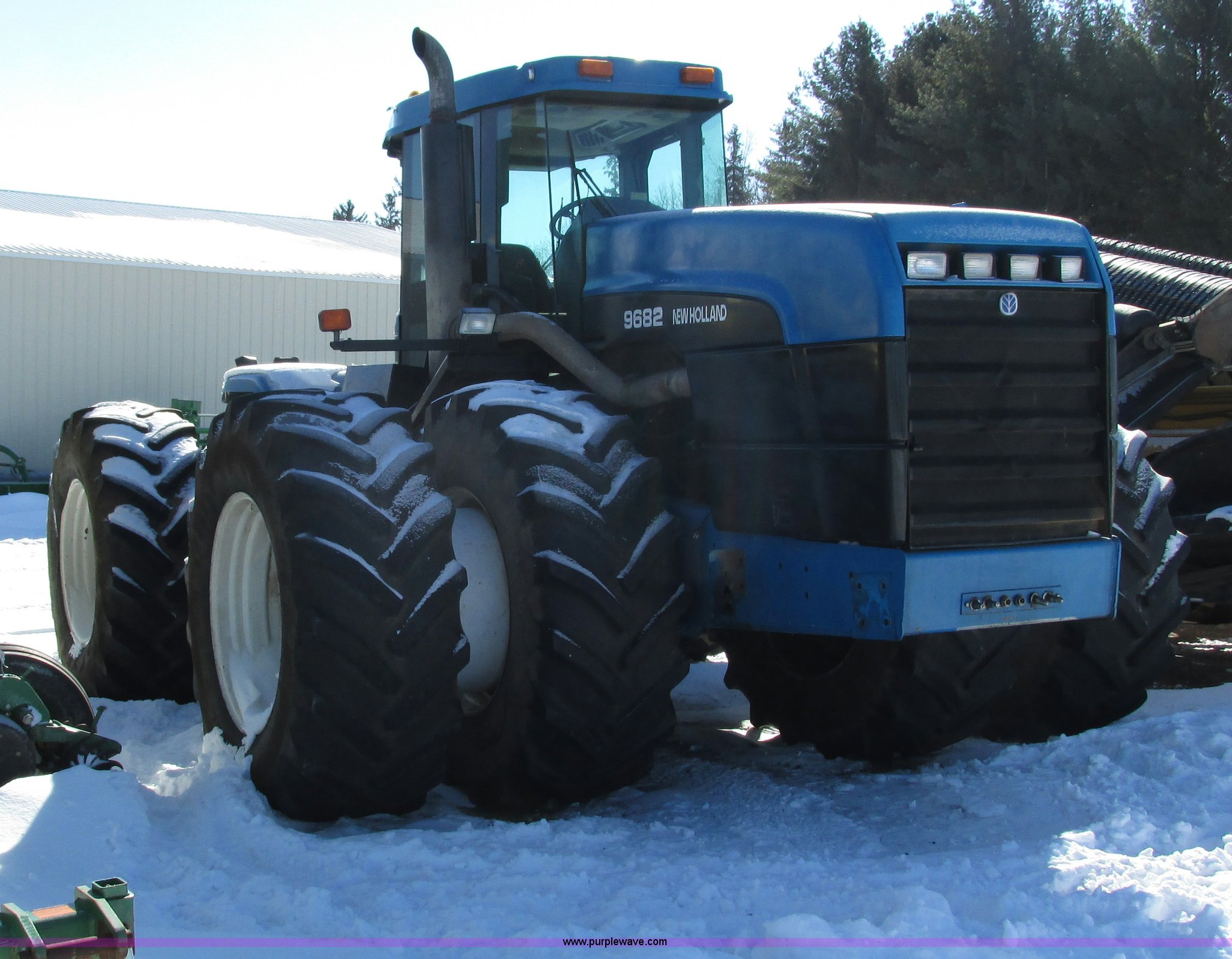 Purple Wave is selling a used Articulated 4-Wheel Drive Tractor in Wisconsin. This item is a 1997 New Holland 9682 4WD tractor with the following: 1,307 hours on meter, Actual hours unknown, 2008 Cummins N14-C 360-2100 six cylinder diesel engine, 360 HP, 1,307 hours on replacement engine, Serial 60530366, Synchro transmission, 12F-4R gears, AC and heat, AM/FM/cassette, Air suspension seat, Tilt steering wheel, Visors, Block heater, Draw bar, (3) front hydraulic remotes, (4) rear hydraulic remotes, 710/70R38 dual tires, Serial D106579, Stock# 130172