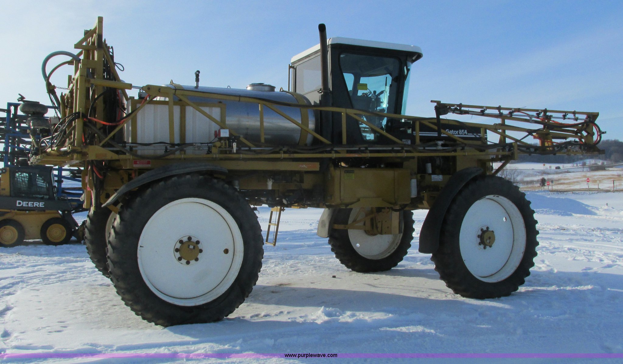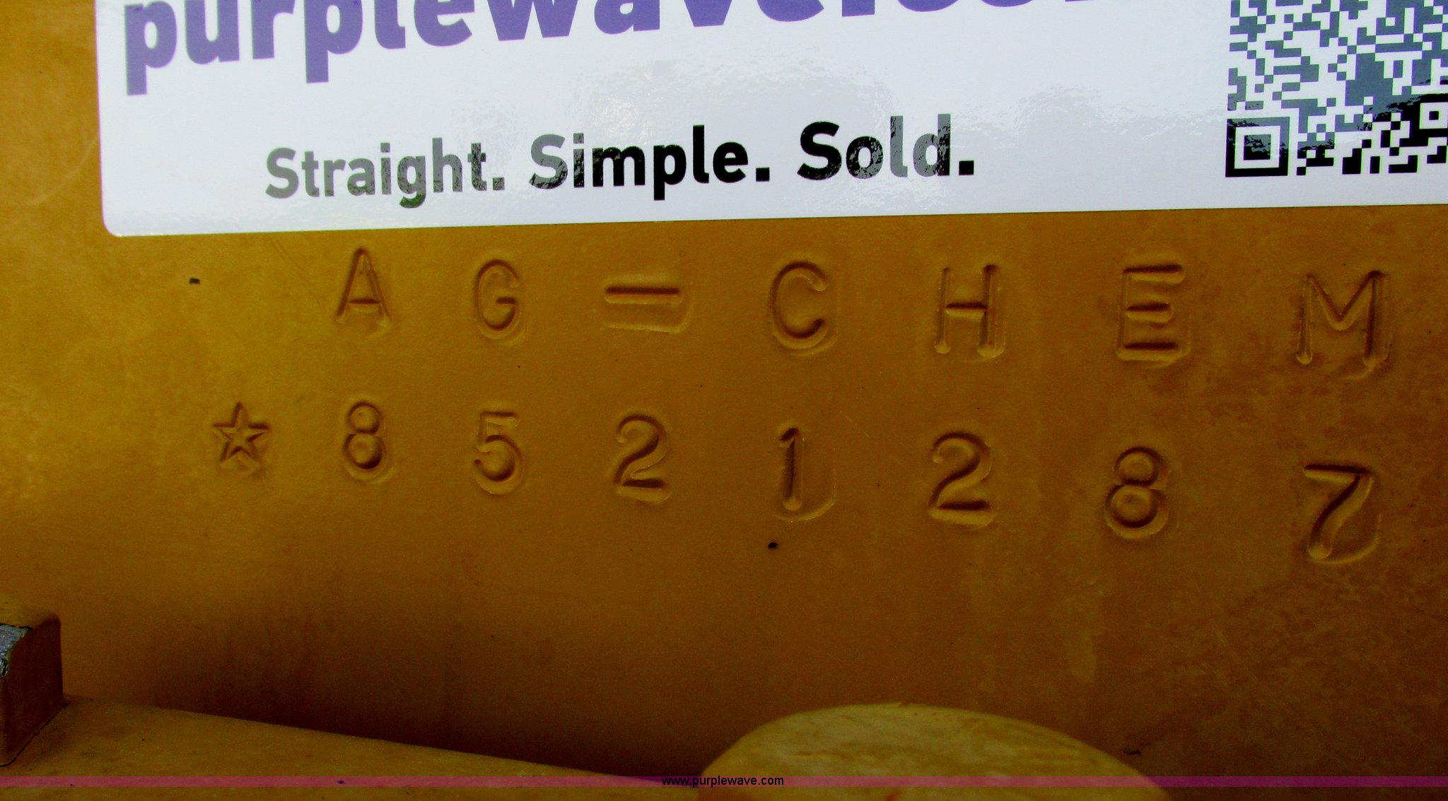Purple Wave is selling a used Applicator Self Propelled in Wisconsin. This item is a 1997 Ag-Chem RoGator 854 self-propelled sprayer with the following: 6,012 hours on meter, Cummins six cylinder diesel engine, Hydrostatic transmission, Four wheel drive, Rinse tank, Induction tank, Stainless steel chemical tank, Trimble EZ-Boom spray control system, Foam marker, 80'W boom, (2) boom sections, Three-way nozzle bodies, 20" nozzle spacing, (5) suction control valves, Break-way extension tips, AC and heat, Pioneer AM/FM/CD, Spring suspension seat, Work lights, EZ-Steer system, EZ-Guide Plus electronics, Hydraulic axle width adjustment, 14.9R46 tires, Missing foam additive funnel, Serial 8521287, Stock# 125357