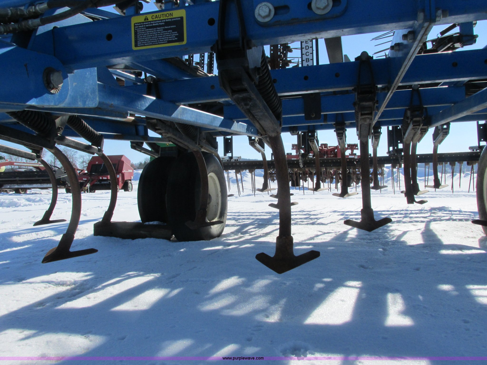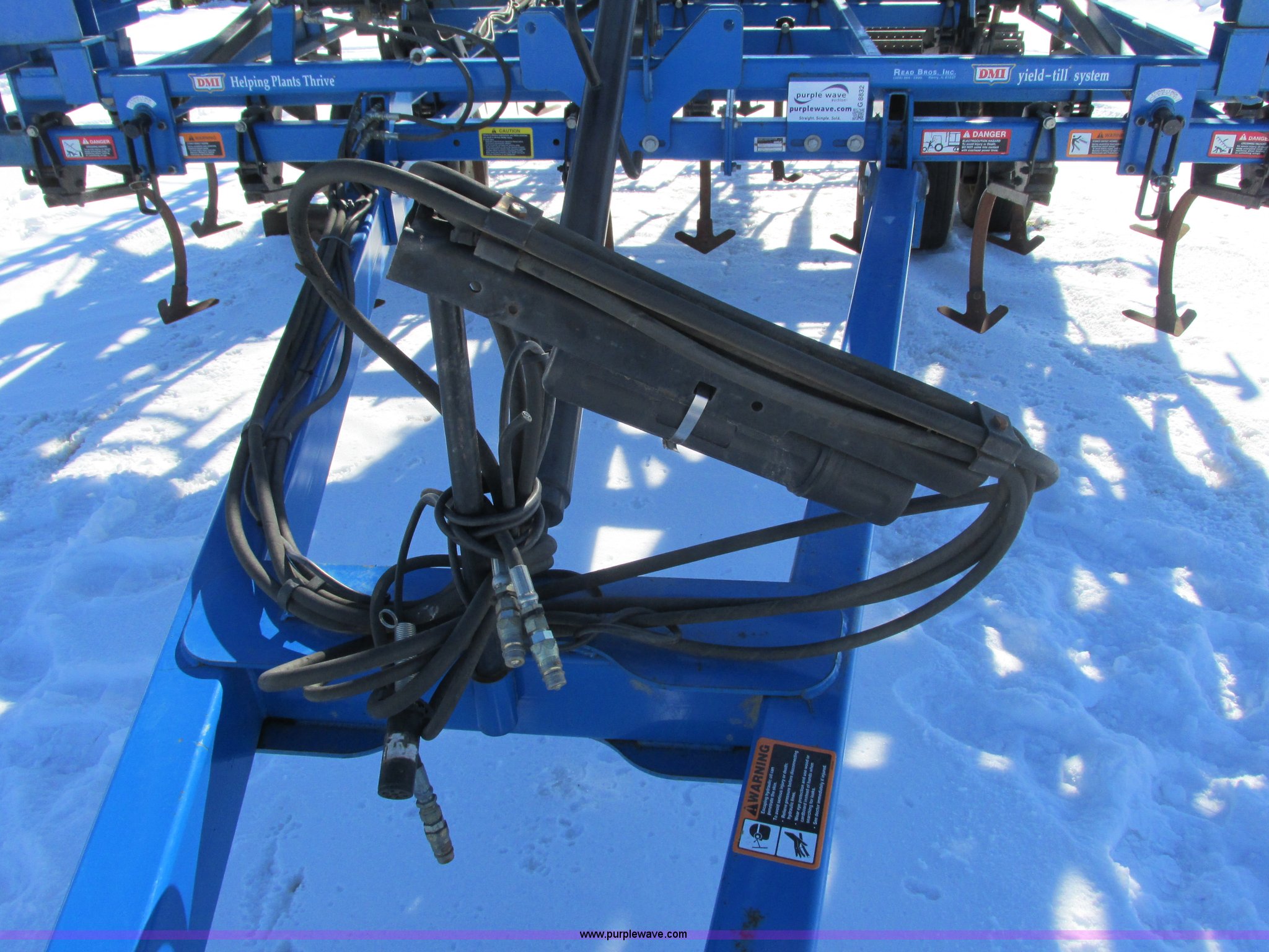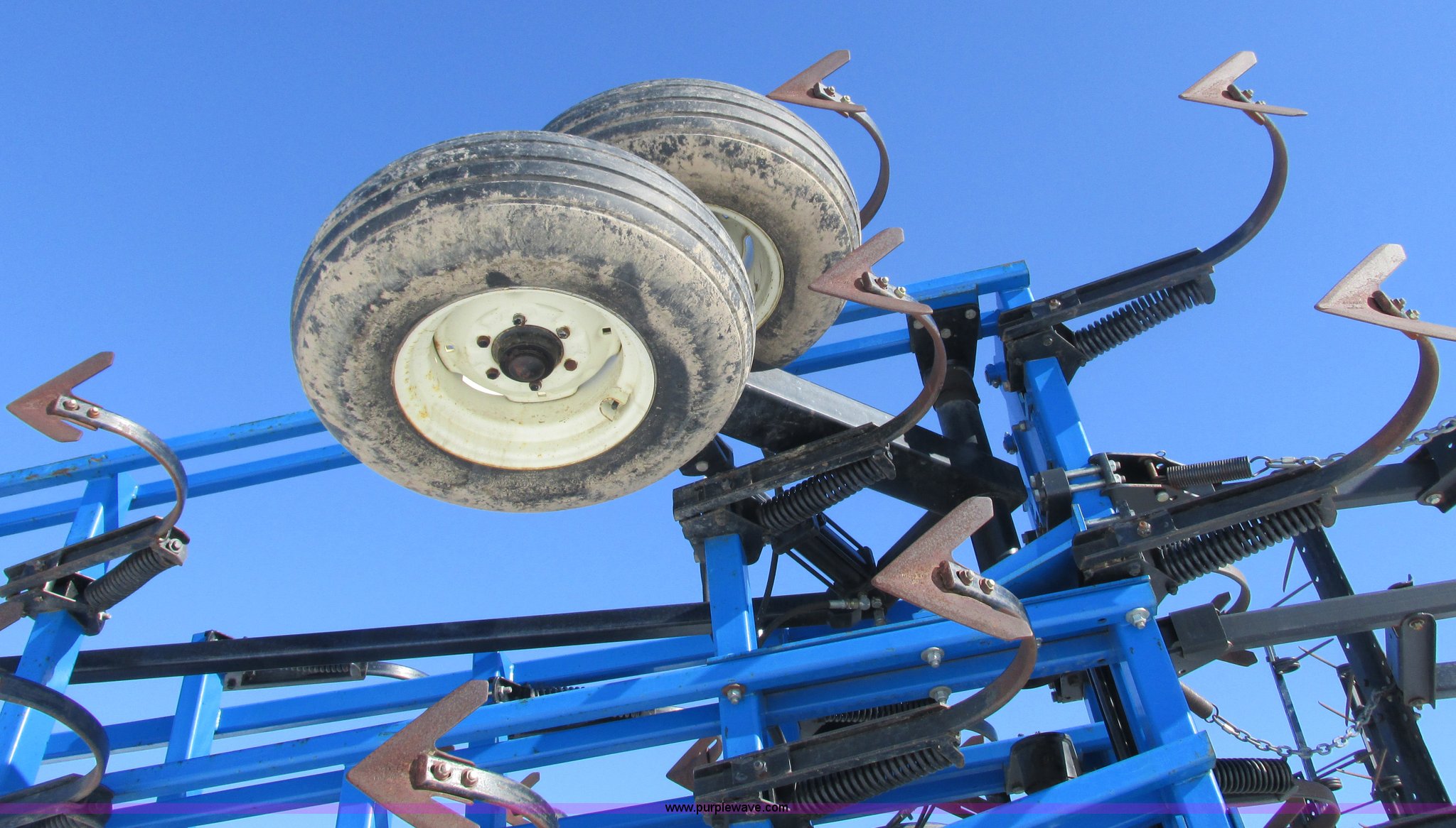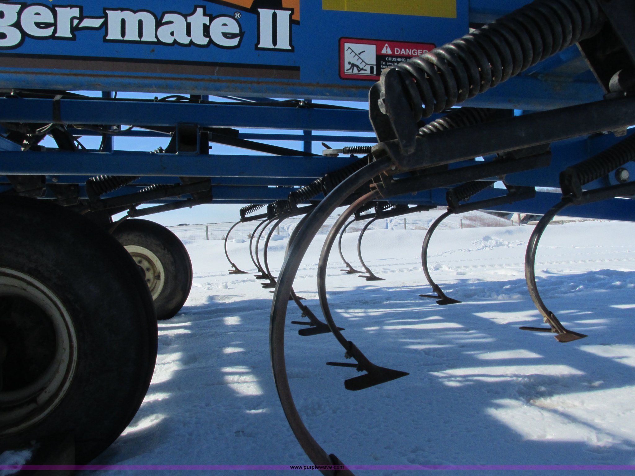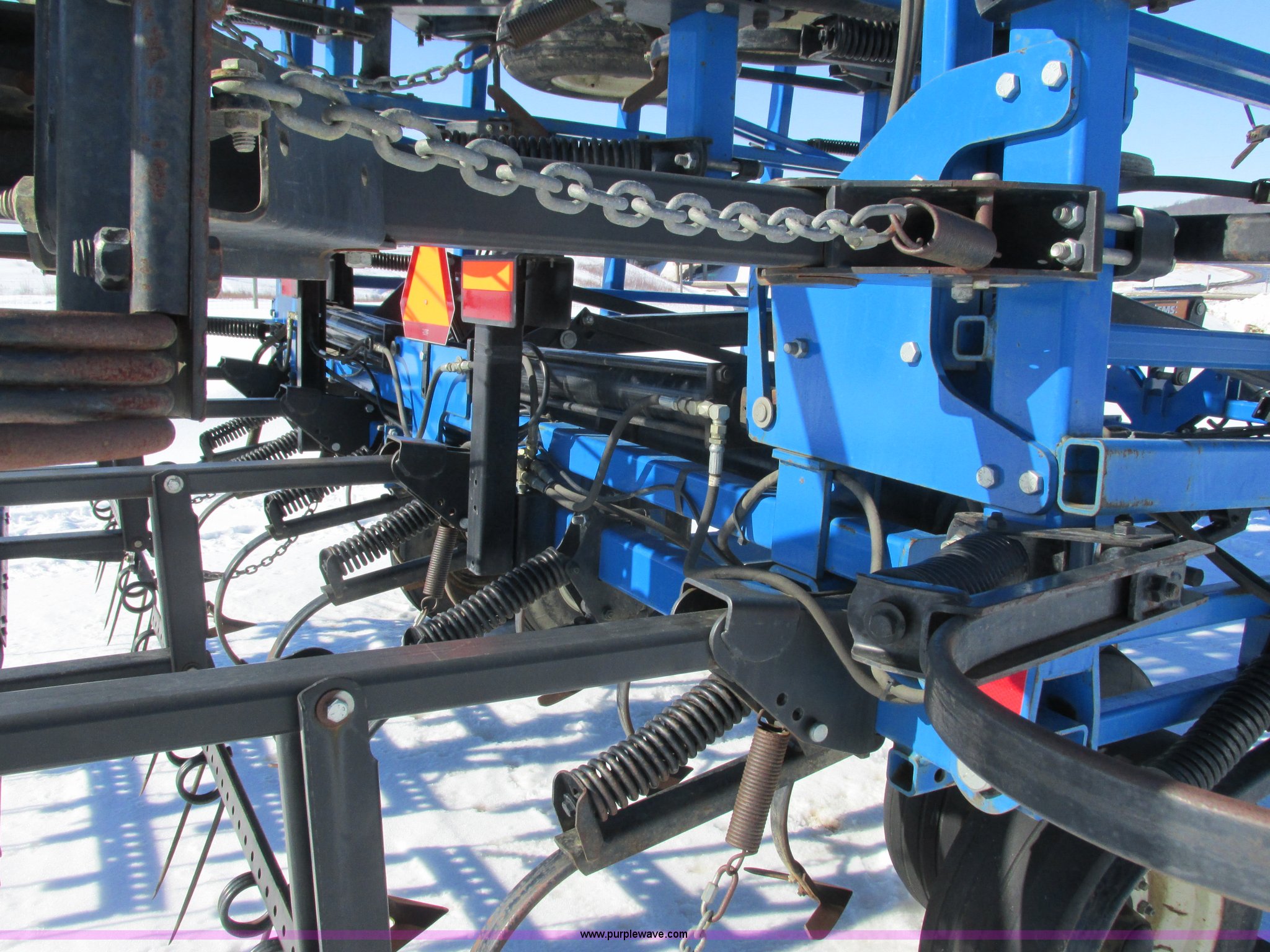 Purple Wave is selling a used Field Cultivator or Sweep Plow in Wisconsin. This item is a DMI Tigermate II field cultivator with the following: 45'W, Hydraulic raise and fold, (5) section bi-fold wings, Four bar coil toothed harrows with shovels, C-shank, (6) 6' sweeps, Road lights, Hydraulic lines, Pintle hitch, (4) 5.90-15SL guide wheels, (12) 11L-15 tires, Serial JFW0010124, Stock# 122422