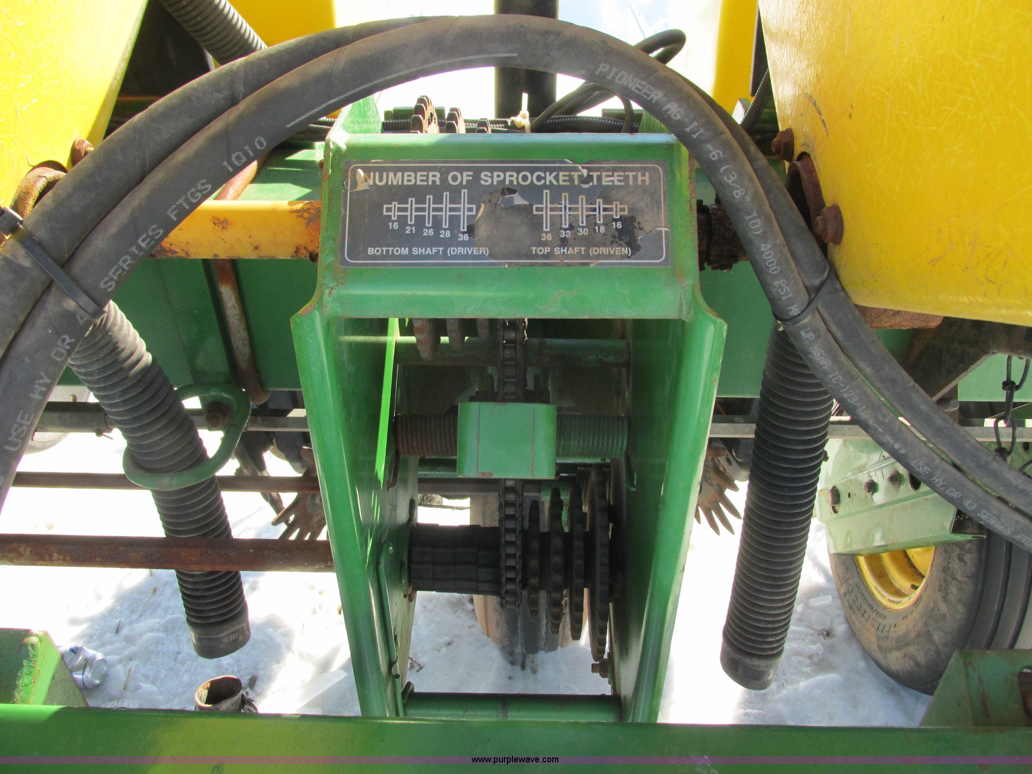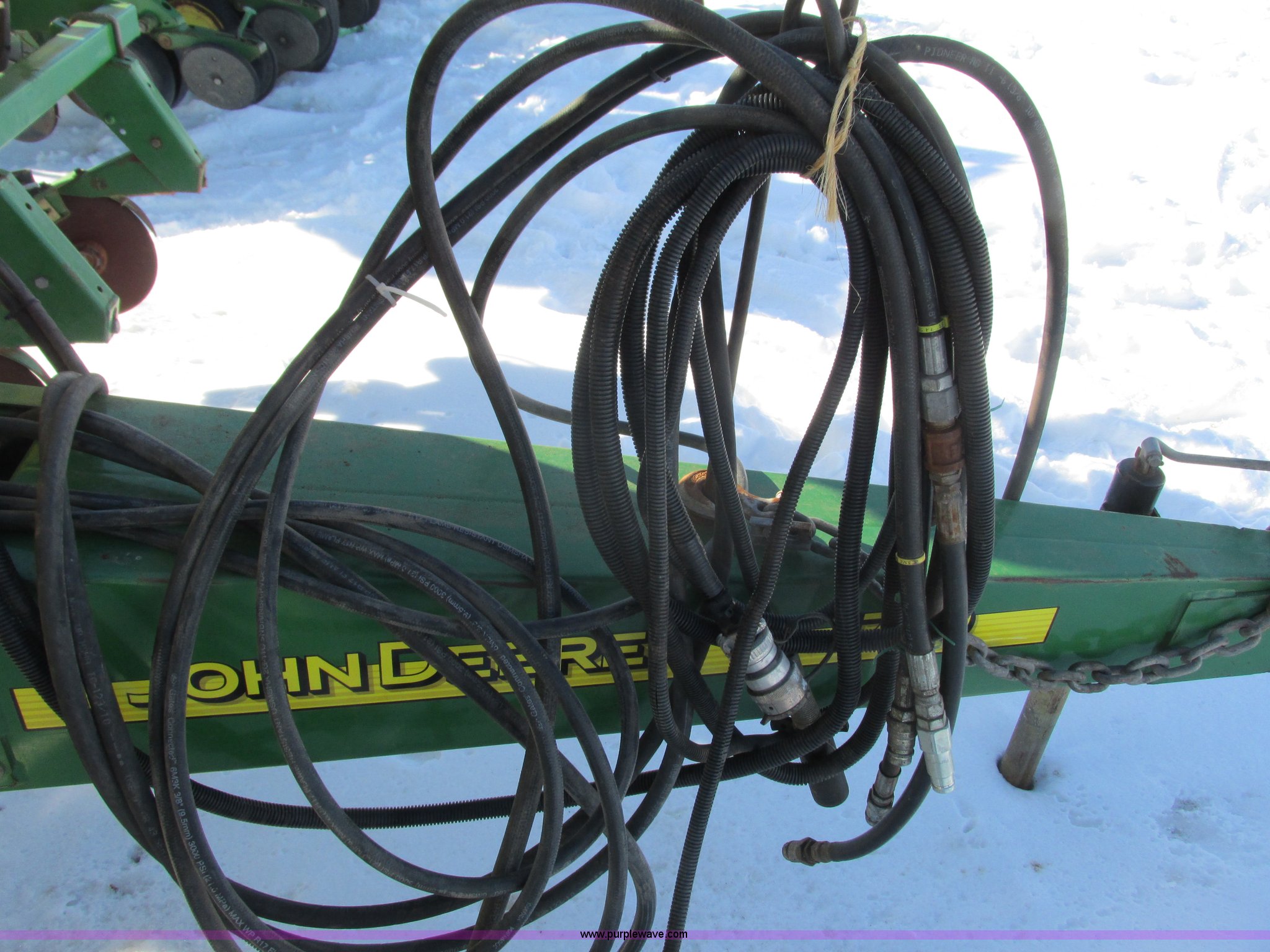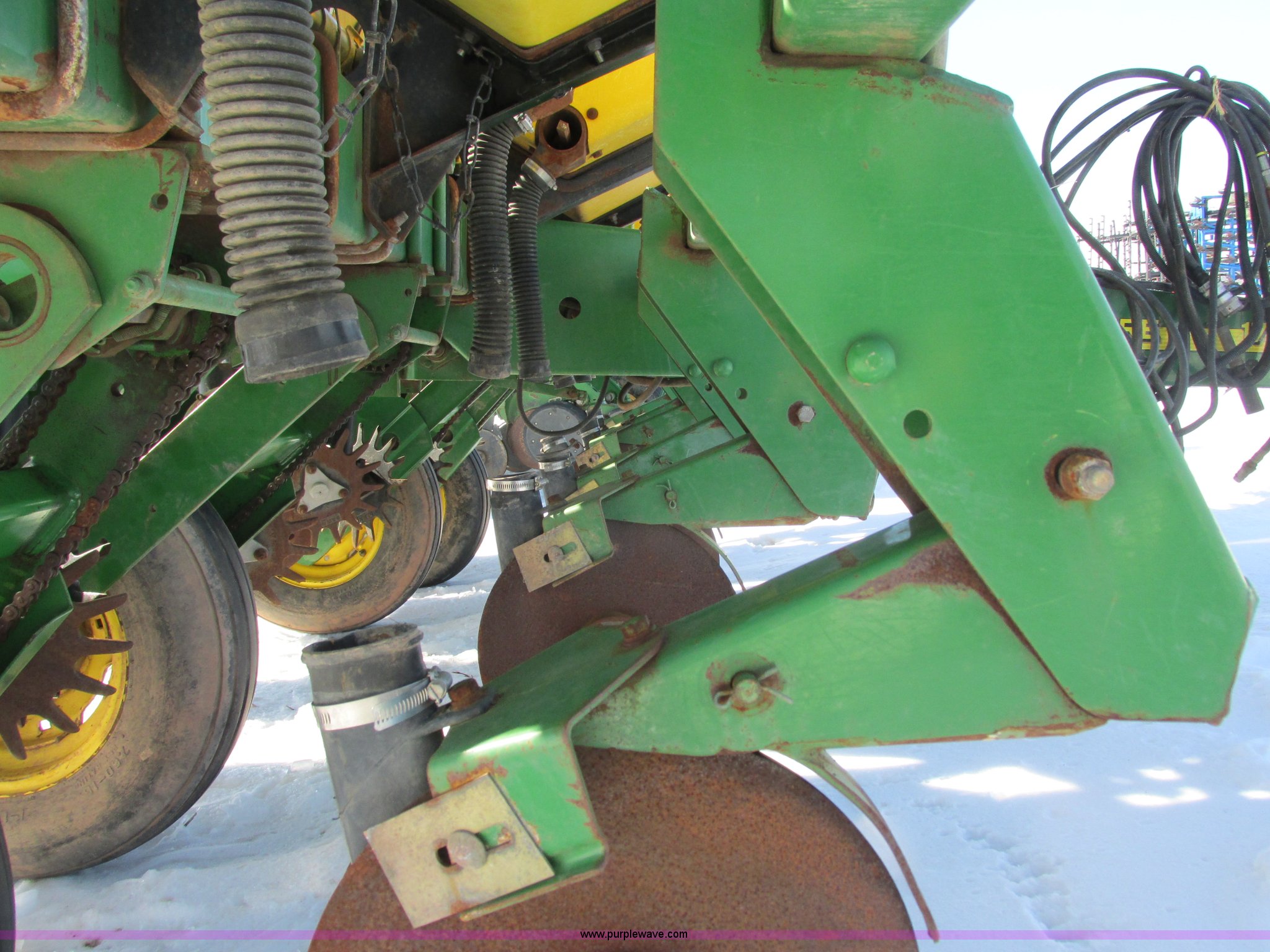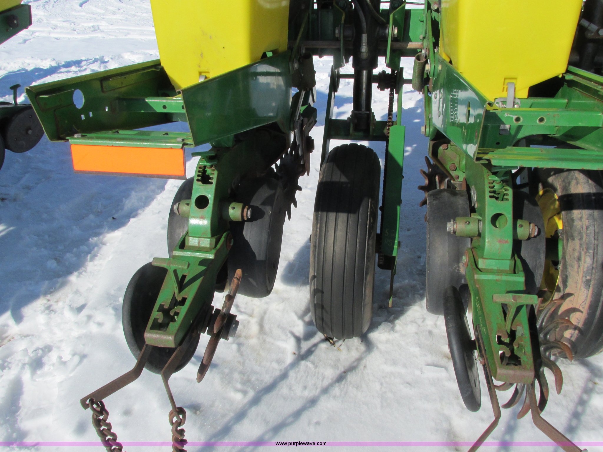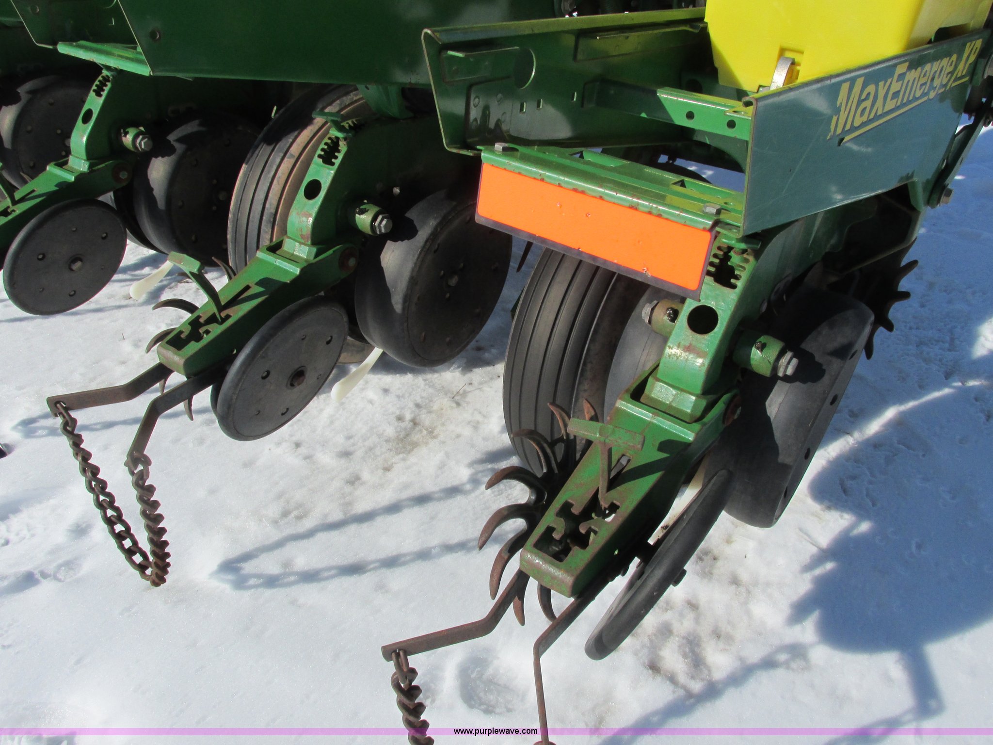 Purple Wave is selling a used Planter in Wisconsin. This item is a 2005 John Deere 1750 planter with the following: Six row, 30" spacing, Individual hoppers, Vacuum meters, Ground meter drive system, Corn disks, Yetter row cleaners, Dawn closing wheels, Dry liquid fertilizer, (3) hoppers, Unverfeath cross auger, Double disk fertilizer openers, Fertilizer hopper extensions, John Deere 150 monitor, Maxemerge XP row units, Serial A01750R710920, Stock# 119450