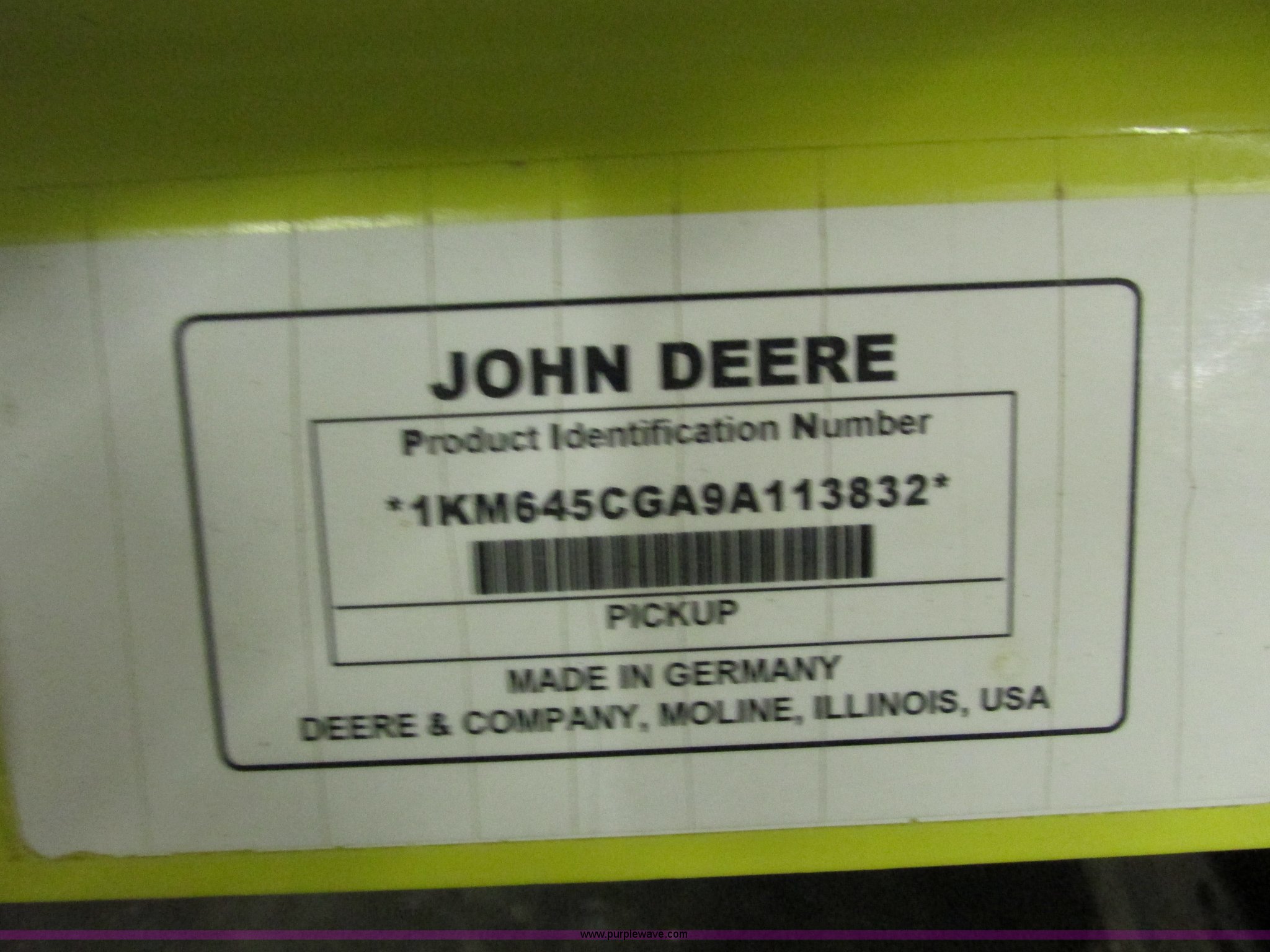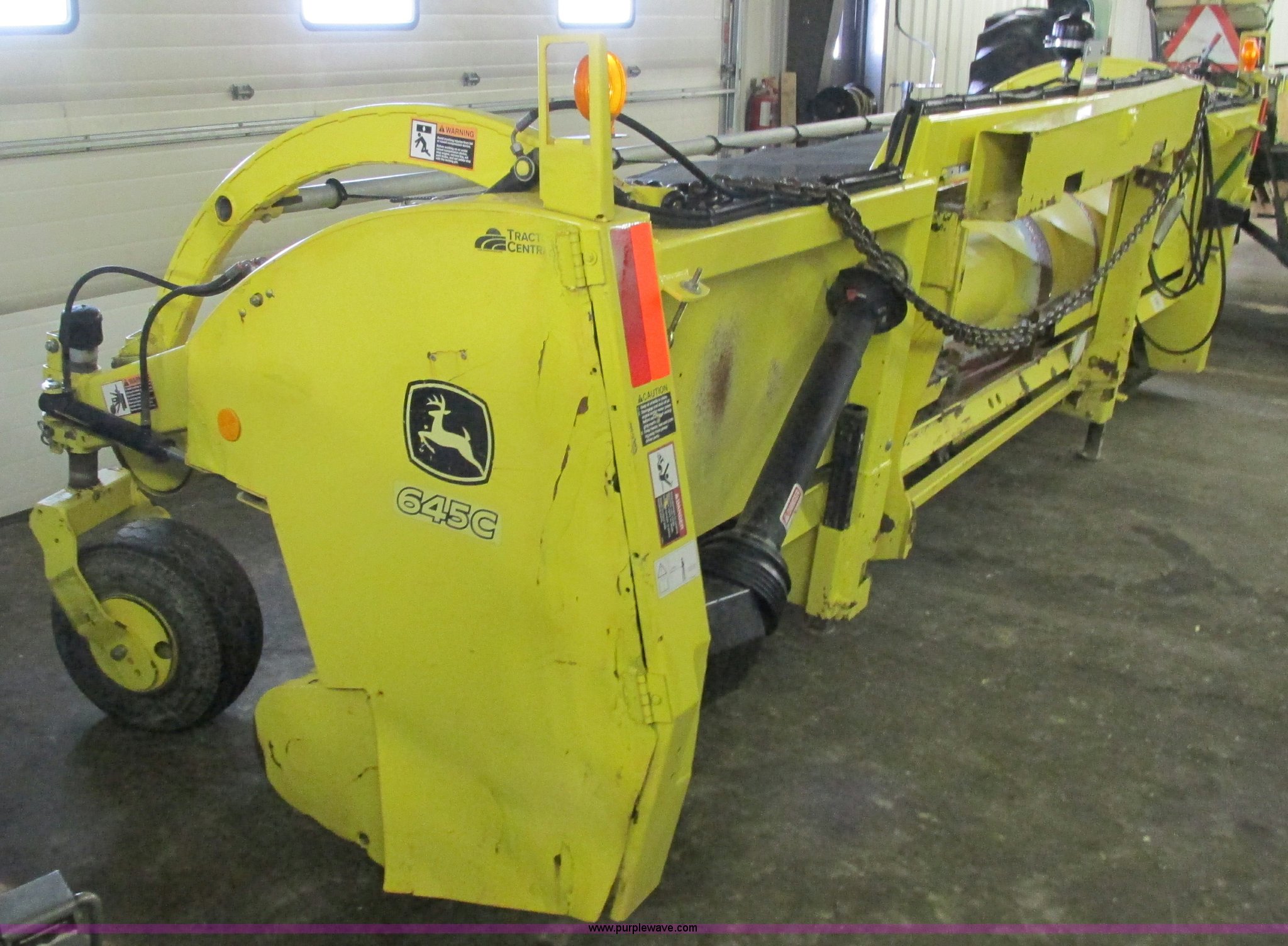 2010 John Deere 645C forage head. Paddle auger, 14'W, Hydraulic folding gauge wheels, Hydraulic roller compressor, Top net, Serial 1KM645CGA9A113832, Stock# 124104. Item specific inquires should be directed to Lee Gossen at 715.450.2633. Tractor Central - Westby. S 3050 Highway 14. Westby, WI 54667