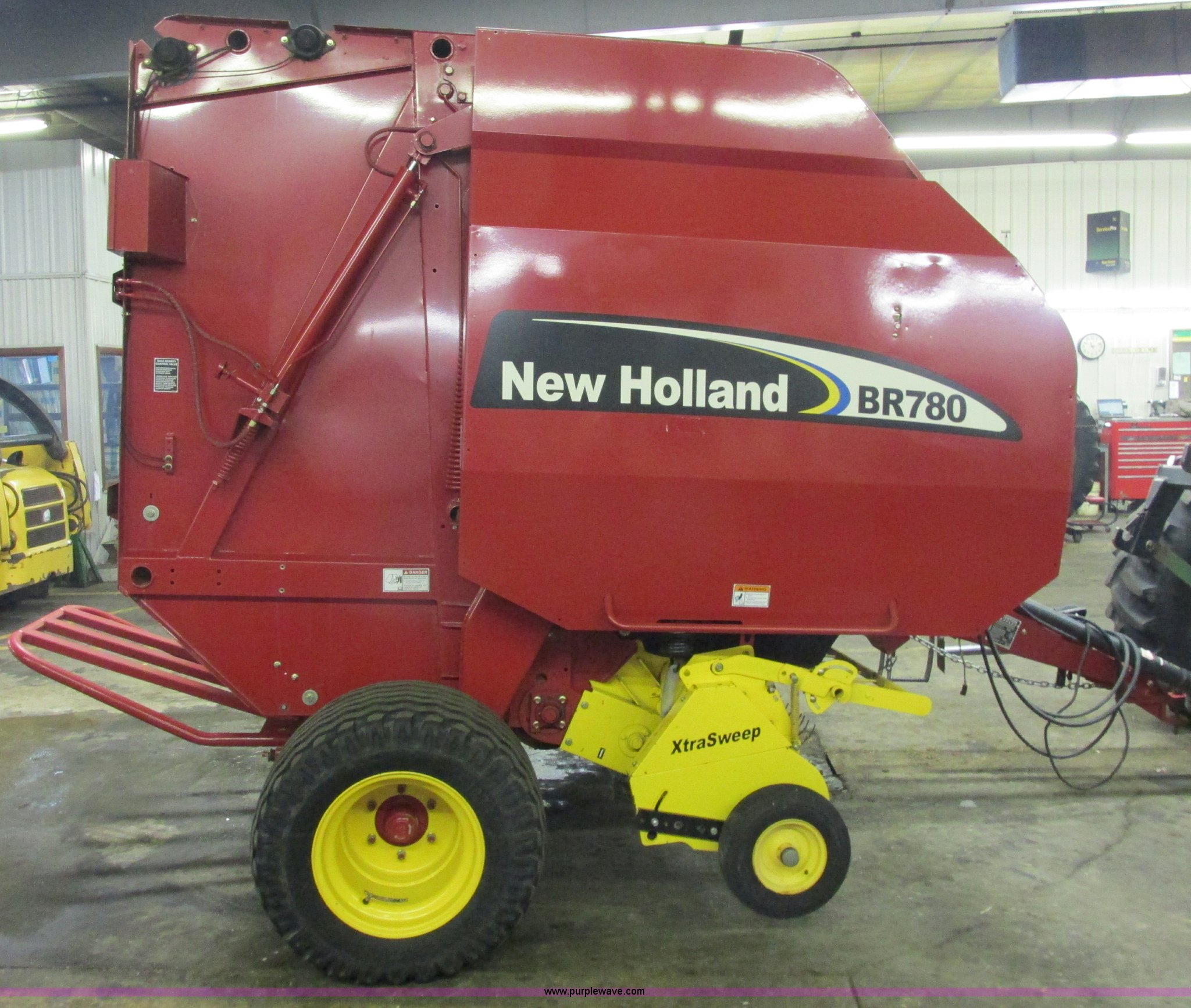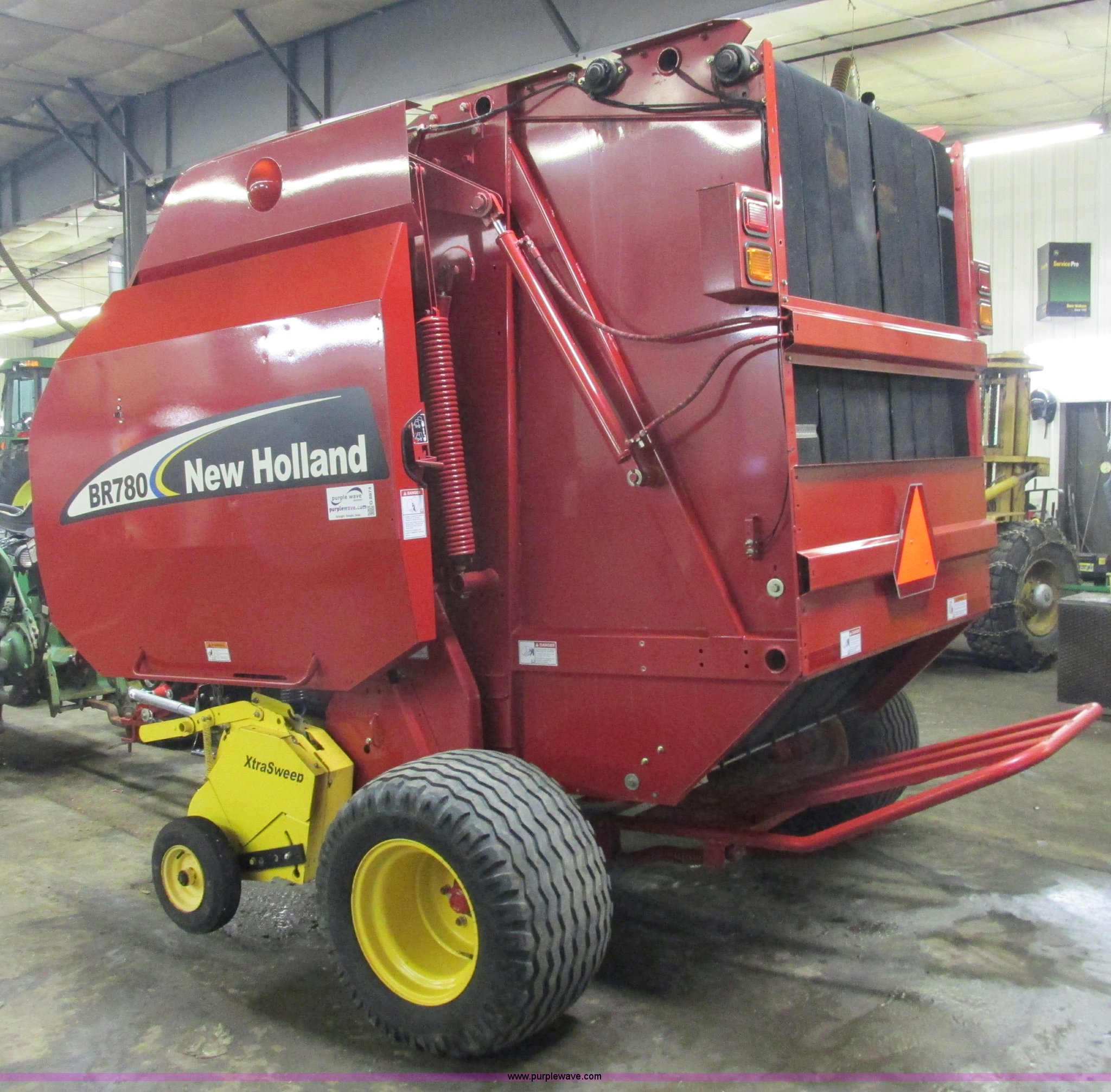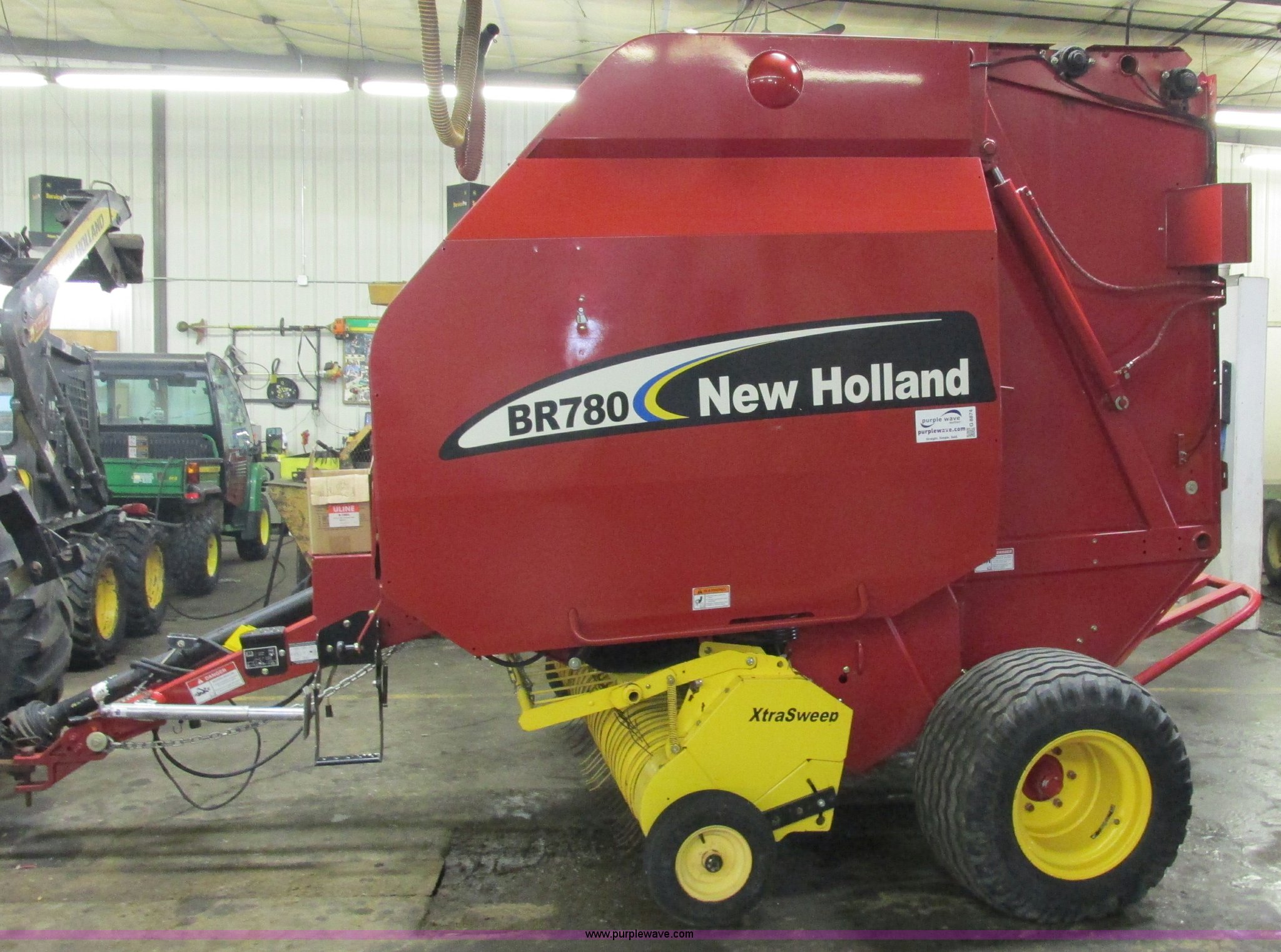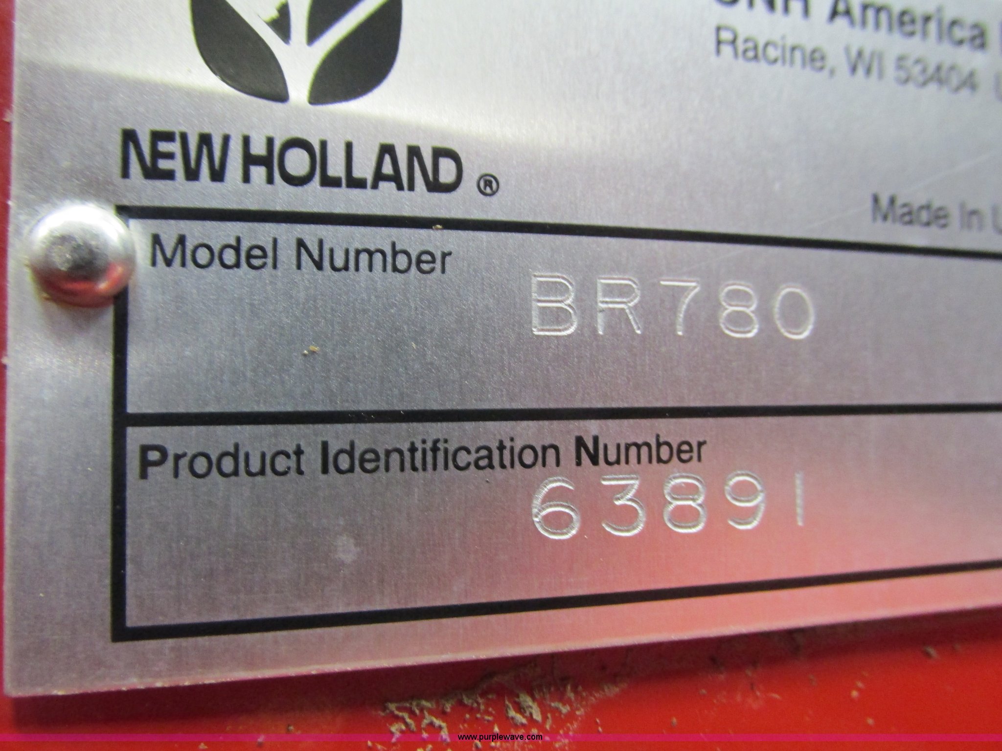 Purple Wave is selling a used Round Baler in Wisconsin. This item is a 2005 New Holland BR780 round baler with the following: 1000 PTO, Twine wrap, 5' bale capacity, 5,500 bales, Drop pin hitch, Additional sweep pickup, Side stand, Hydraulic hoses, Bale ramp, Remote grease, 480/45-17 tires, Serial 63891, Stock# 124860