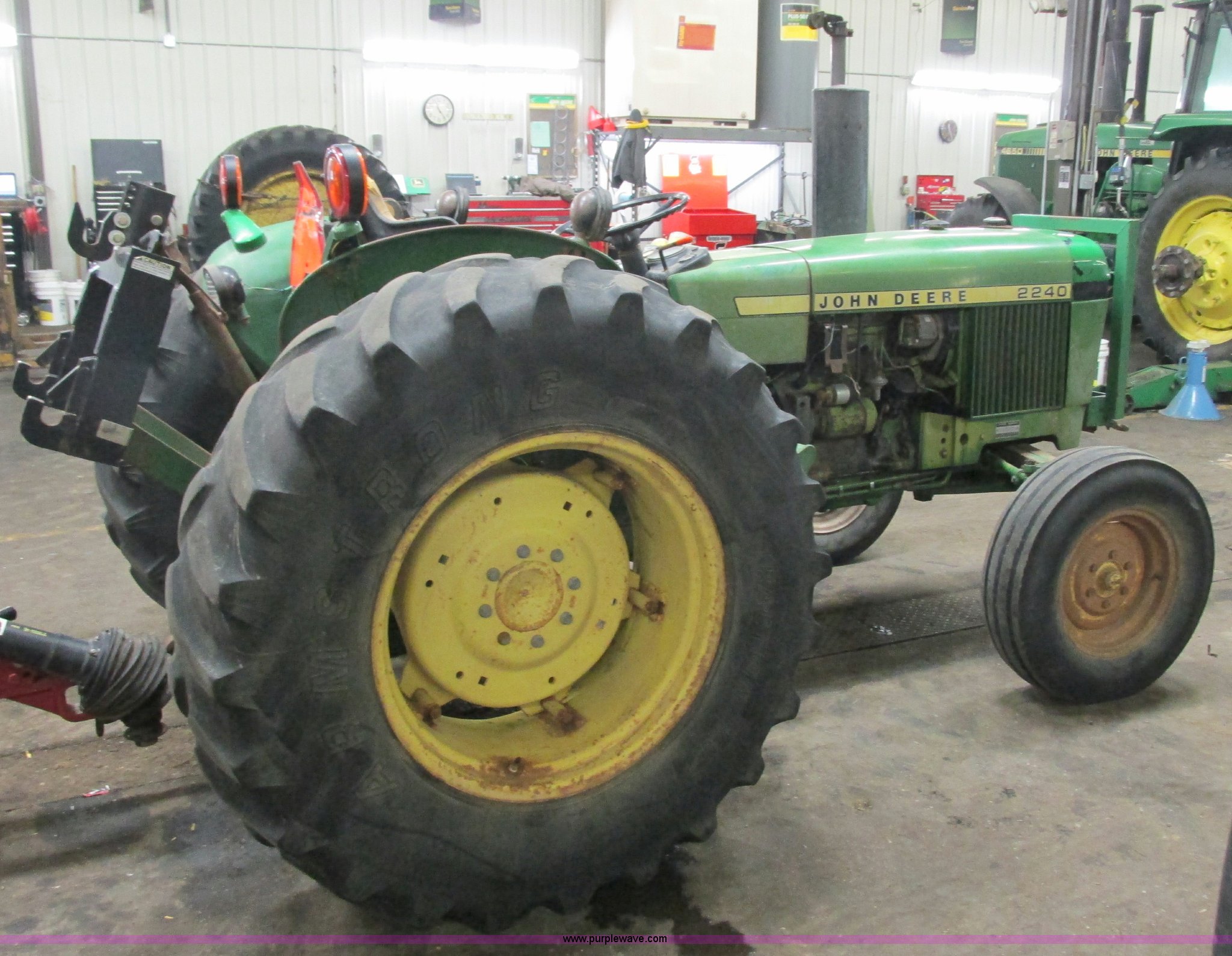 Purple Wave is selling a used Tractor in Wisconsin. This item is a 1978 John Deere 2240 tractor with the following: 4,881 hours on meter, Four cylinder diesel engine, 8F-3R gears, Spring suspension seat, Three point, Quick attach, 540 PTO, Hydraulic remote, Draw bar hitch, Work lights, Adjustable width front end, 7.5-16 front tires, 16.9-28 rear tires, Serial 267193, Stock# 126759