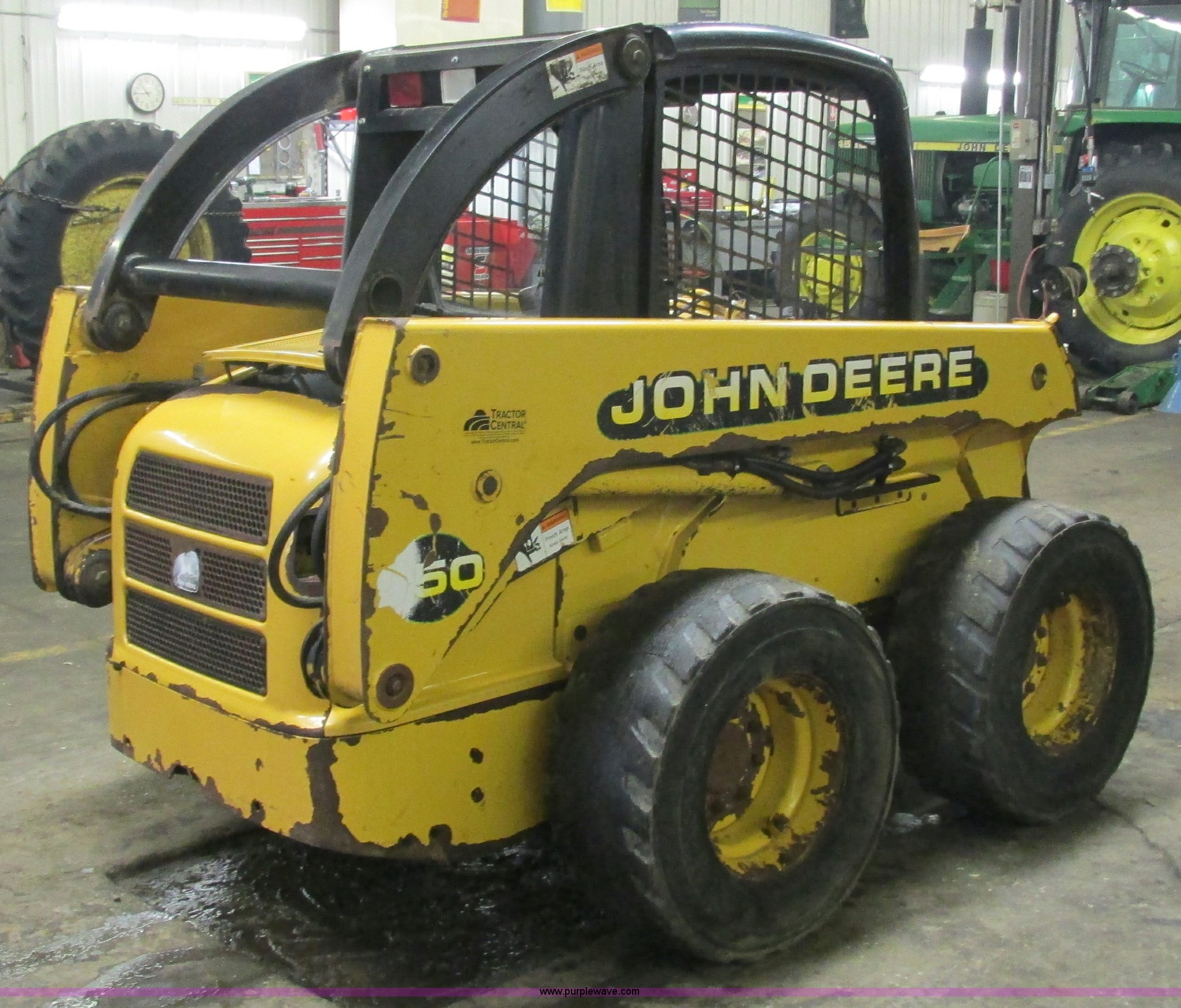 Purple Wave is selling a used Skid Steer Loader in Wisconsin. This item is a 2001 John Deere 250 skid steer with the following: 2,998 hours on meter, John Deere Power Tech 2.9L turbo diesel engine, Hydrostatic transmission, Block heater, Hand and foot controls, Spring suspension seat, Auxiliary hydraulics, Manual quick coupler, Titan 2000 12x16 tires, Serial KV0250A352021, Stock# 130311