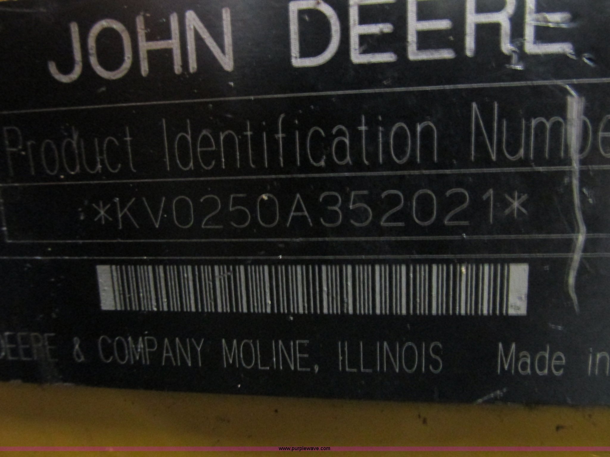 2001 John Deere 250 skid steer. 2,998 hours on meter, John Deere Power Tech 2.9L turbo diesel engine, Hydrostatic transmission, Block heater, Hand and foot controls , Spring suspension seat, Auxiliary hydraulics, Manual quick coupler, Titan 2000 12x16 tires, Serial KV0250A352021, Stock# 130311. Item specific inquires should be directed to Larry Bloom at 715.495.1021. View equipment video. Tractor Central - Westby. S 3050 Highway 14. Westby, WI 54667