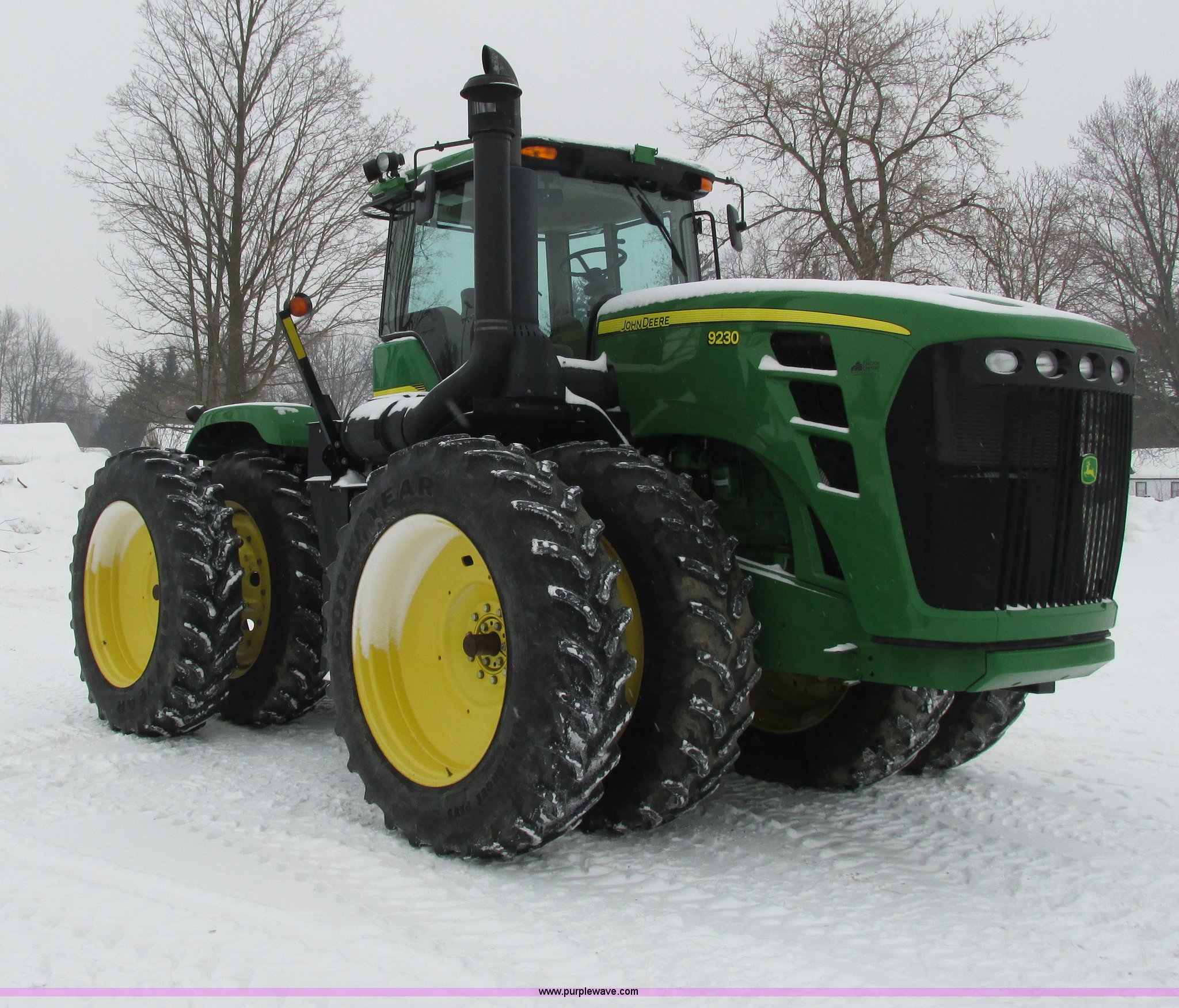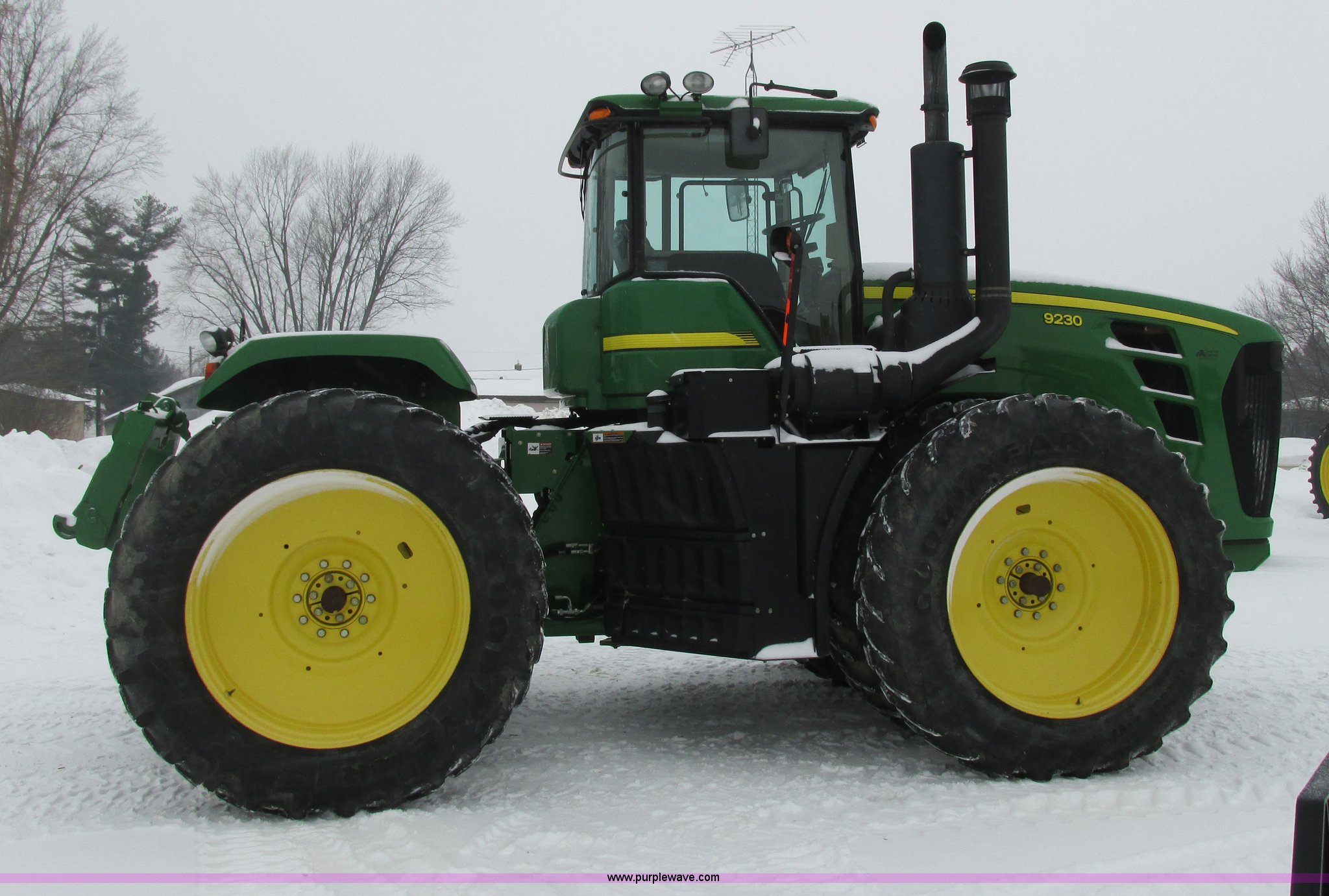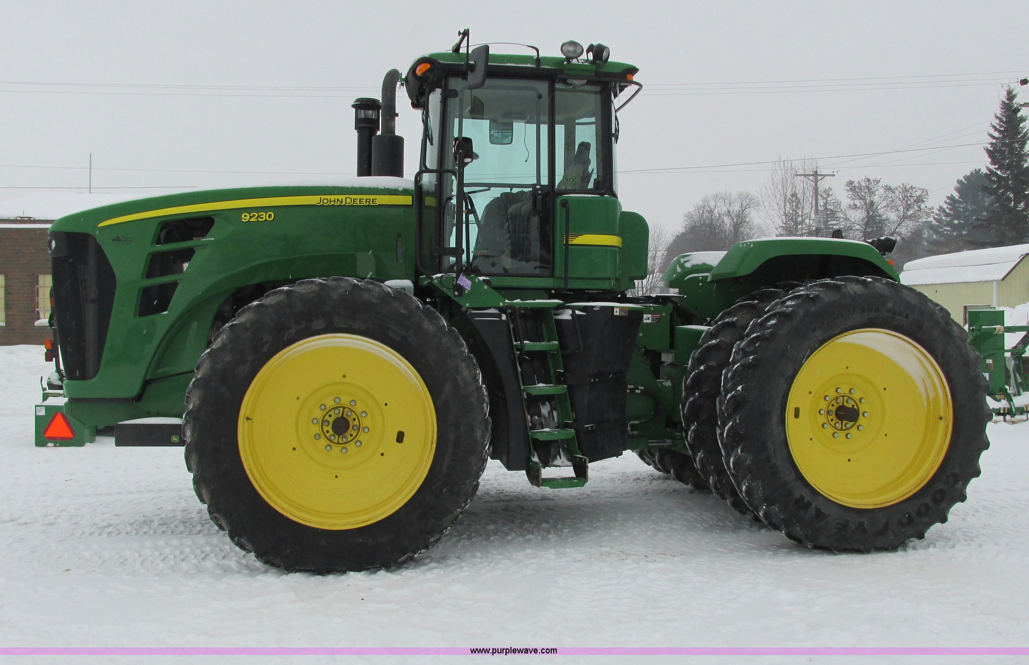 Purple Wave is selling a used Articulated 4-Wheel Drive Tractor in Wisconsin. This item is a 2009 John Deere 9230 4WD tractor with the following: 1,537 hours on meter, John Deere 9.0L diesel engine, 325 HP, Powershift transmission, 18F-6R gears, Differential lock, AC and heat, AM/FM, Air suspension seat, Active seat, Instructor's seat, Tilt steering wheel, Shades and visors, GPS ready, Guidance ready, Ground radar, 48 gpm hydraulic pump, Three point quick attach, Draw bar, 1000 PTO, (4) rear hydraulic remotes, 480/80R46 dual tires, Serial RW9230P013636, Stock# 121102