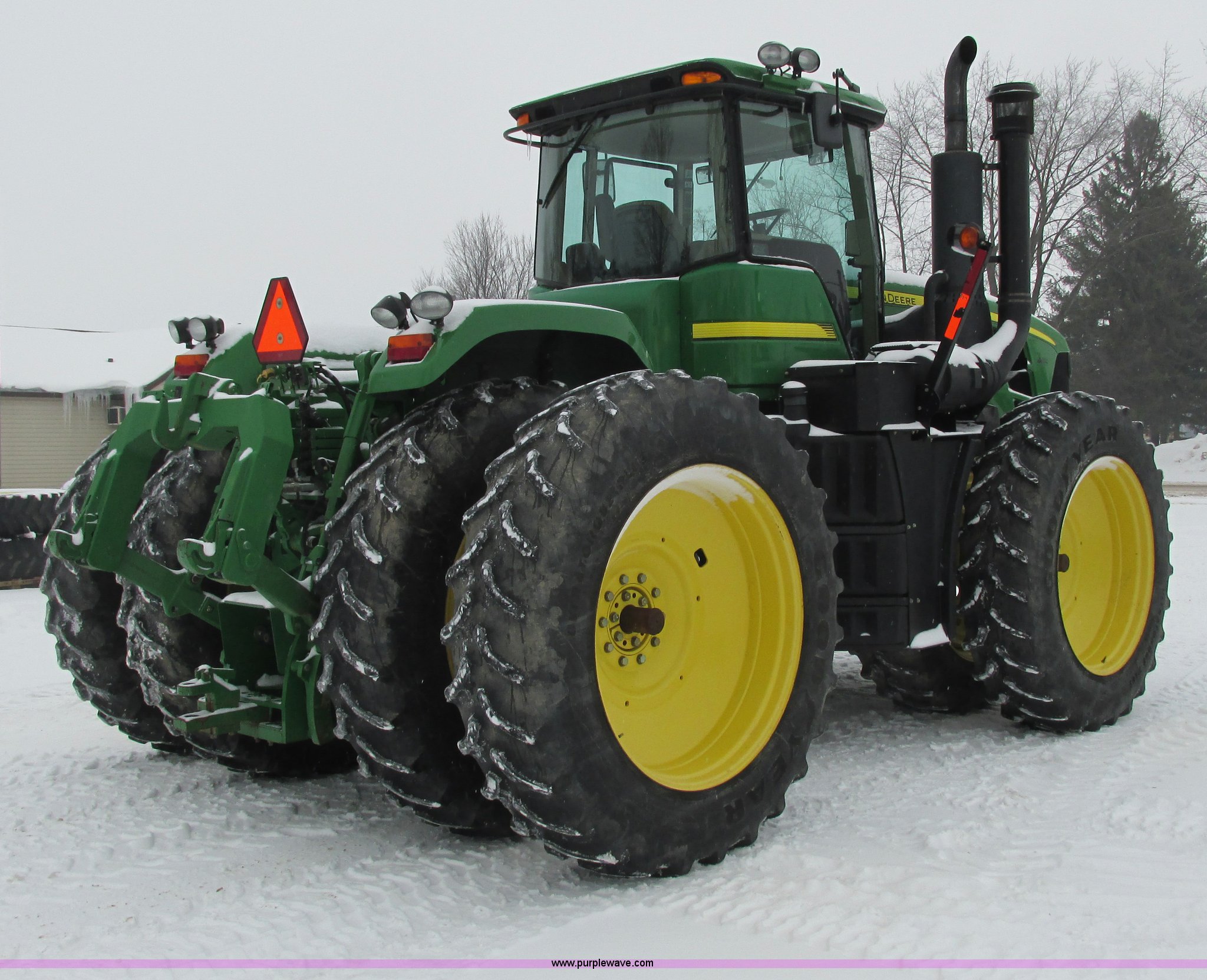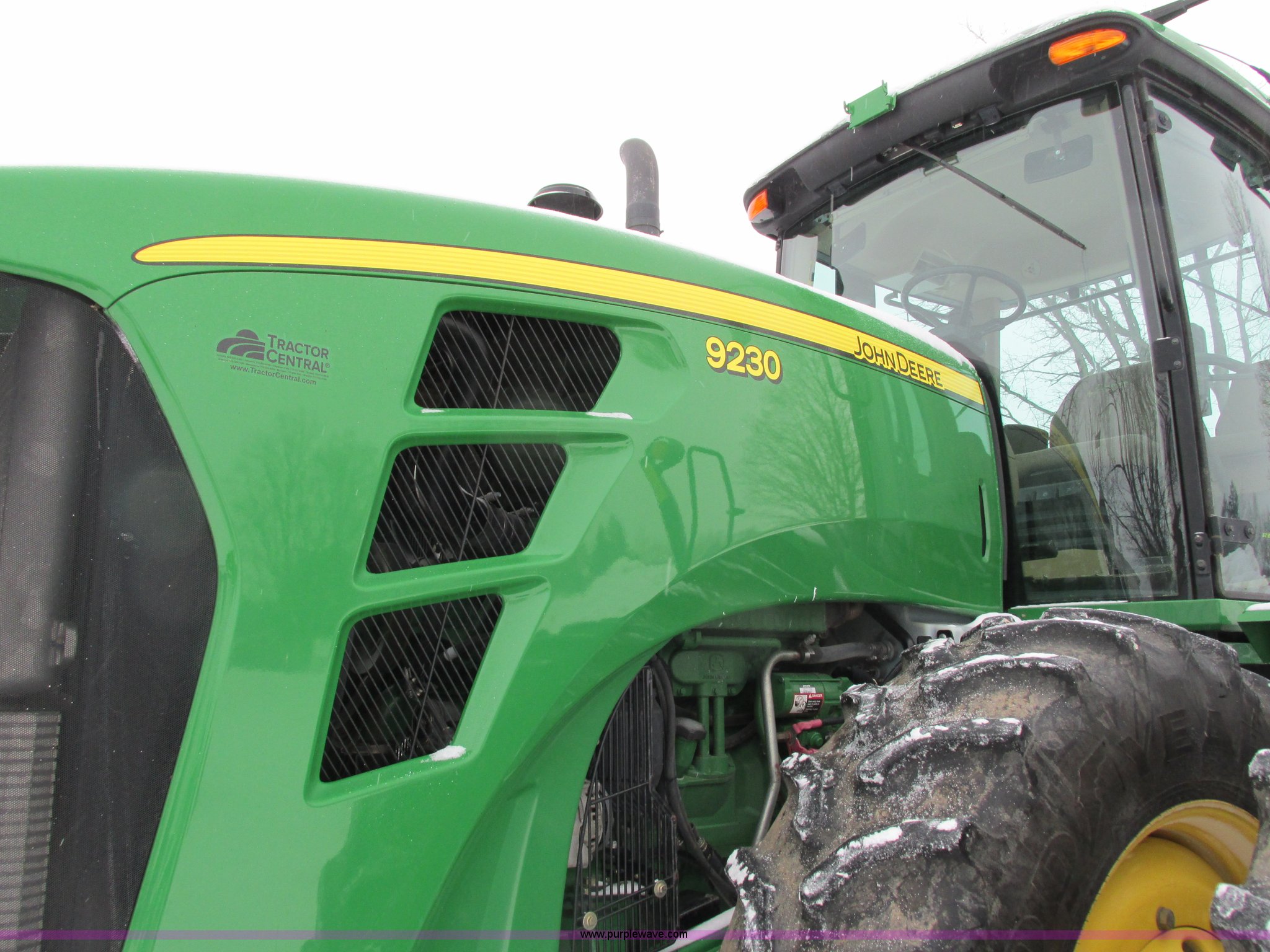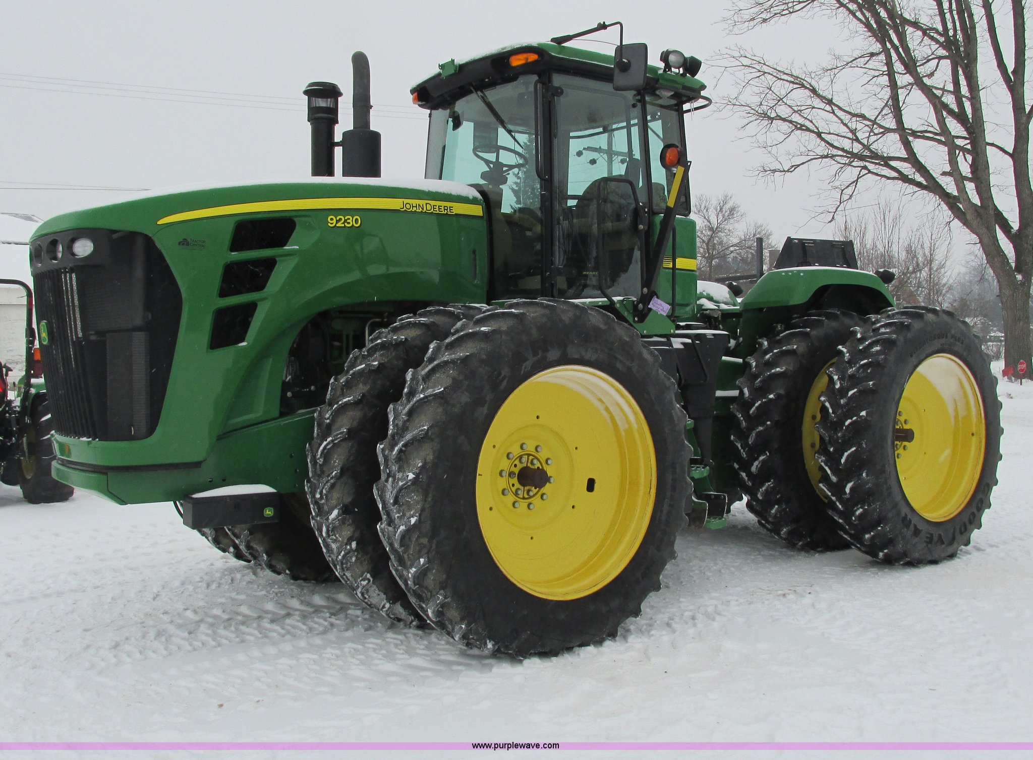 Purple Wave is selling a used Articulated 4-Wheel Drive Tractor in Wisconsin. This item is a 2009 John Deere 9230 4WD tractor with the following: 1,537 hours on meter, John Deere 9.0L diesel engine, 325 HP, Powershift transmission, 18F-6R gears, Differential lock, AC and heat, AM/FM, Air suspension seat, Active seat, Instructor's seat, Tilt steering wheel, Shades and visors, GPS ready, Guidance ready, Ground radar, 48 gpm hydraulic pump, Three point quick attach, Draw bar, 1000 PTO, (4) rear hydraulic remotes, 480/80R46 dual tires, Serial RW9230P013636, Stock# 121102