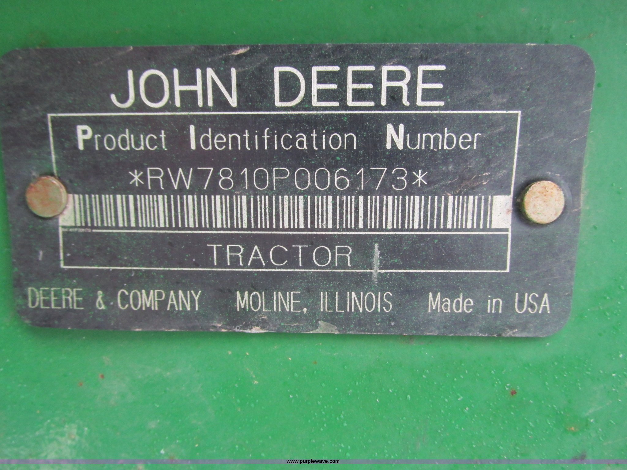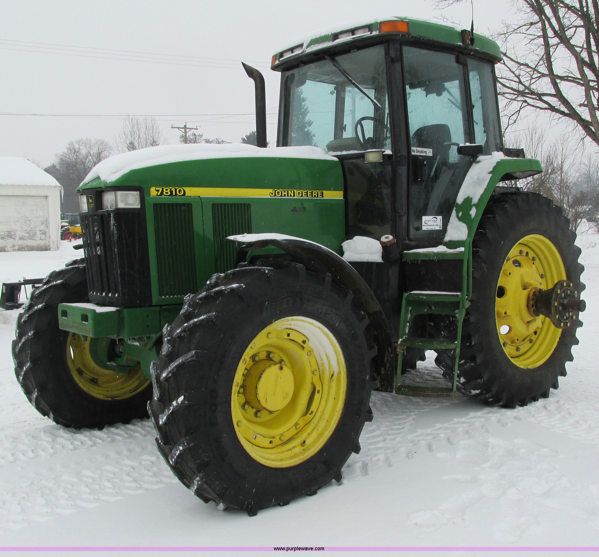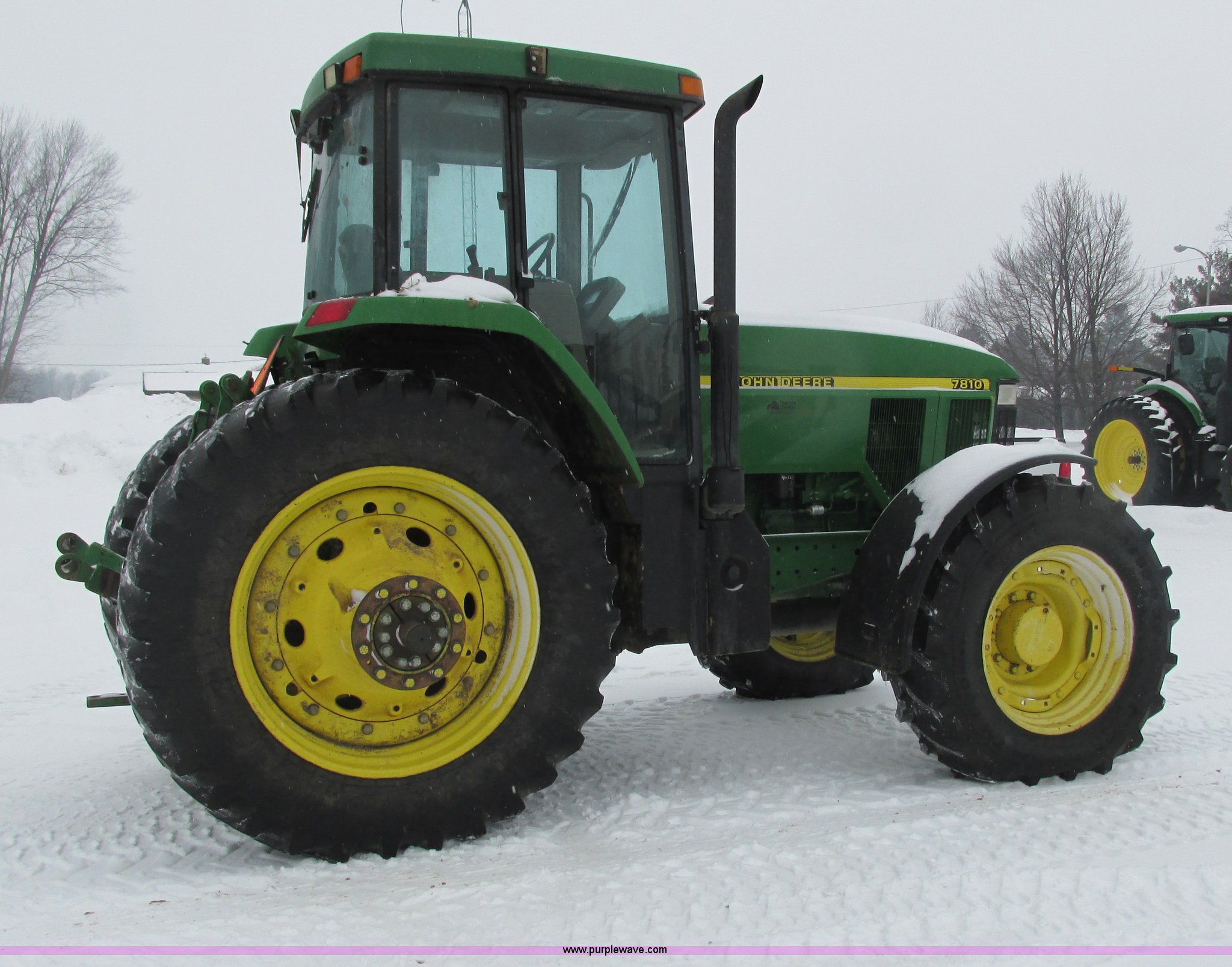 Purple Wave is selling a used Tractor in Wisconsin. This item is a 1997 John Deere 7810 MFWD tractor with the following: 8,080 hours on meter, John Deere 8.1L diesel engine, 175 HP, Powershift transmission, 19F-7R gears, AC and heat, AM/FM, Air suspension seat, Tilt steering wheel, Three point, Draw bar, 540/1000 PTO, (3) rear hydraulic remotes, 380/85R30 front tires, 18.4R42 dual rear tires, Serial RW7810P006173, Stock# 123048