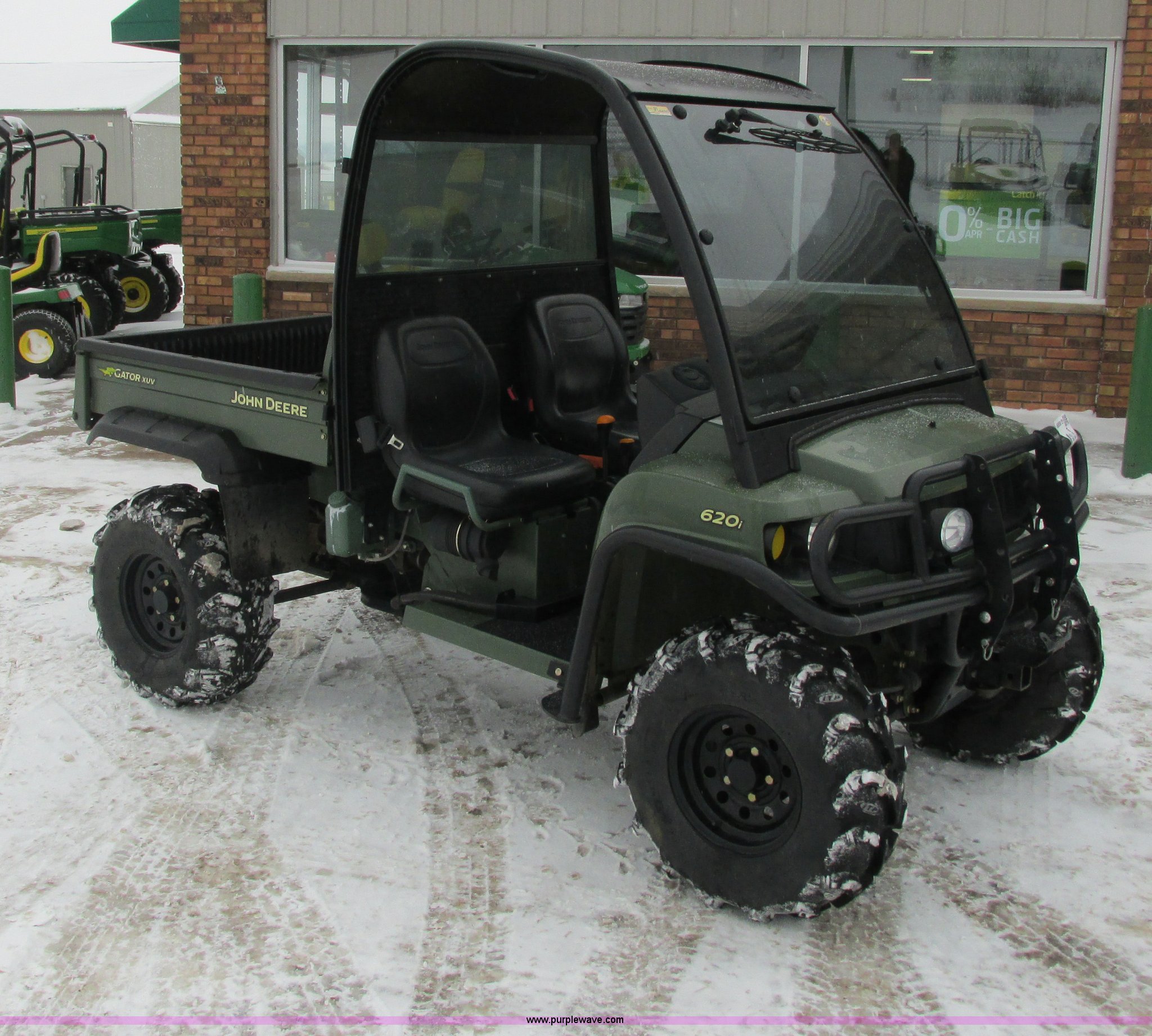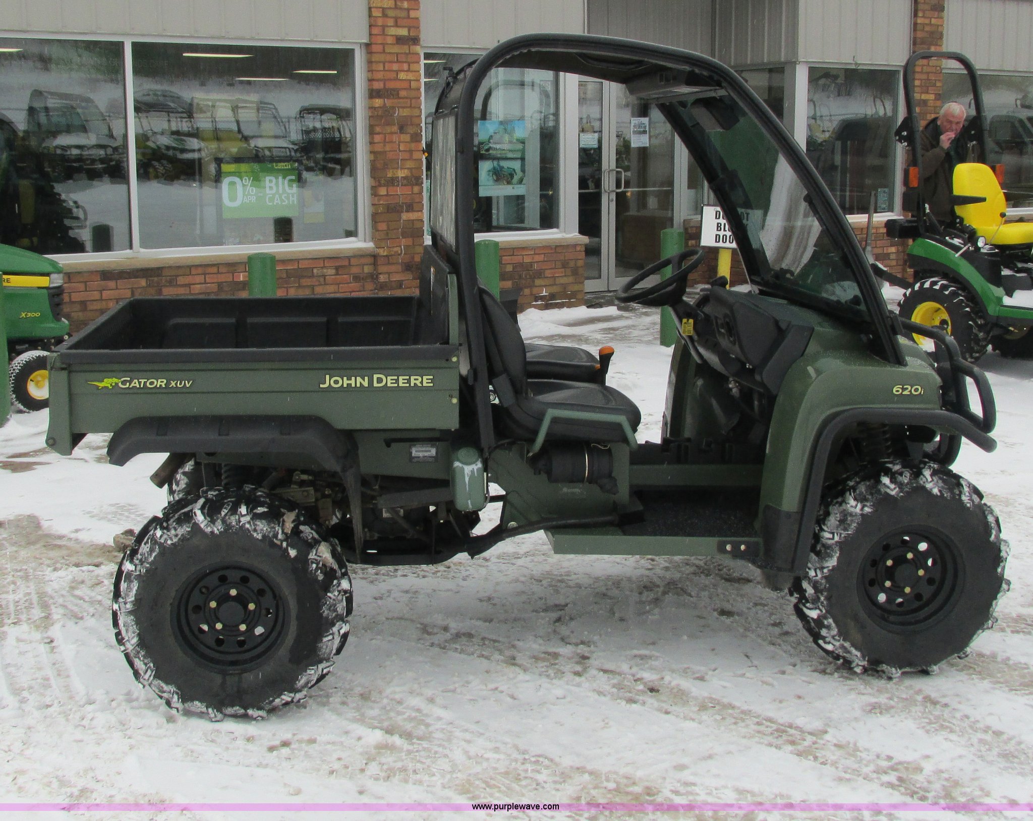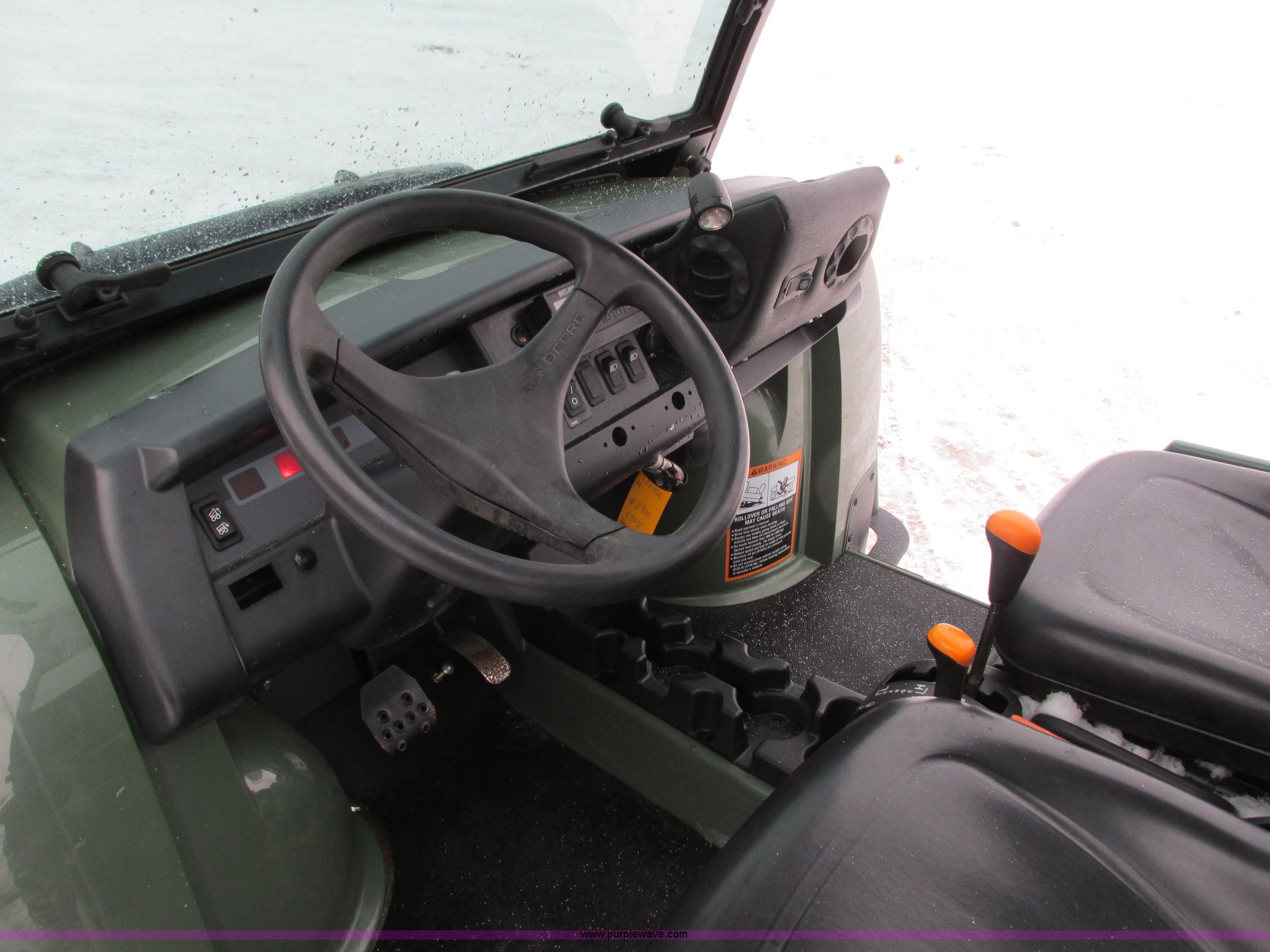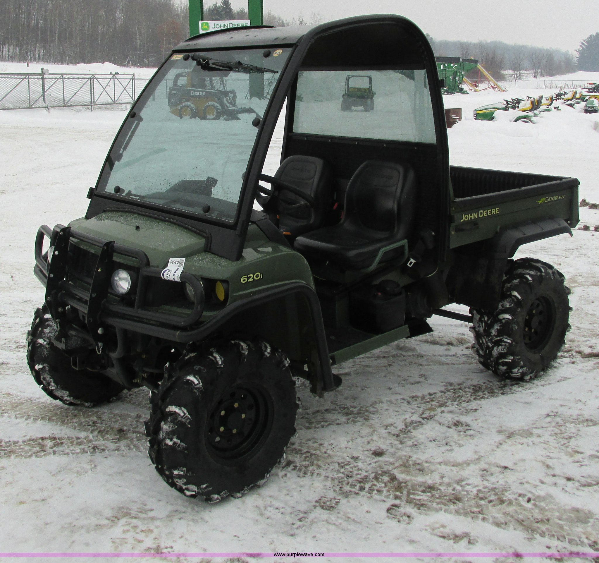 Purple Wave is selling a used Utility Vehicle in Wisconsin. This item is a 2007 John Deere 620i utility vehicle with the following: 307 hours on meter, Deluxe cab, Heat, AM/FM, Windshield wipers and washers, No doors, Power dump box, Bed liner, Front bumper, Fender guards, Front and rear 2" receiver hitch, High performance exhaust, Additional front running lights, 27x10-12 extreme terrain tires, 27x12-12 extreme terrain tires, Stock# 123508