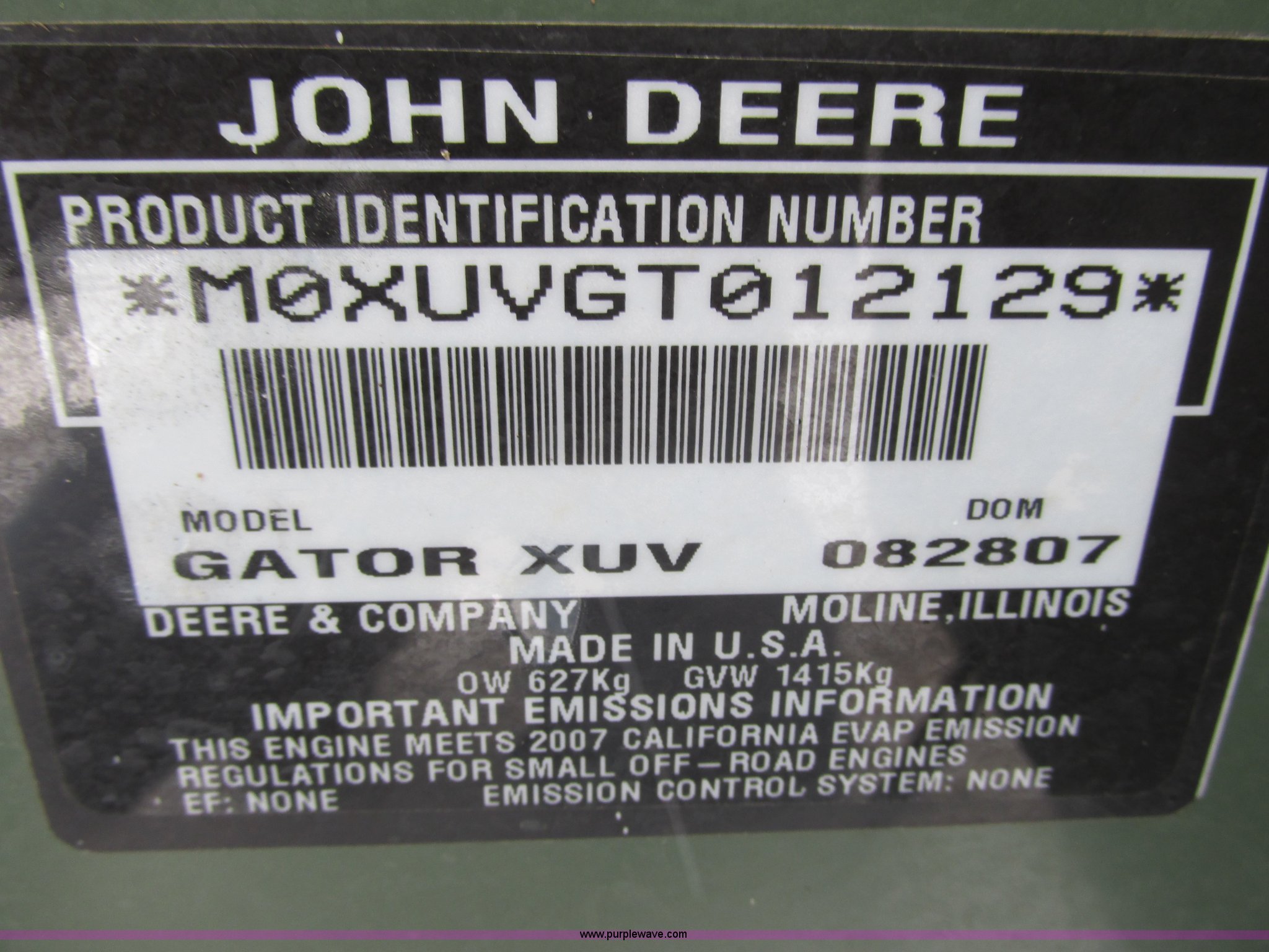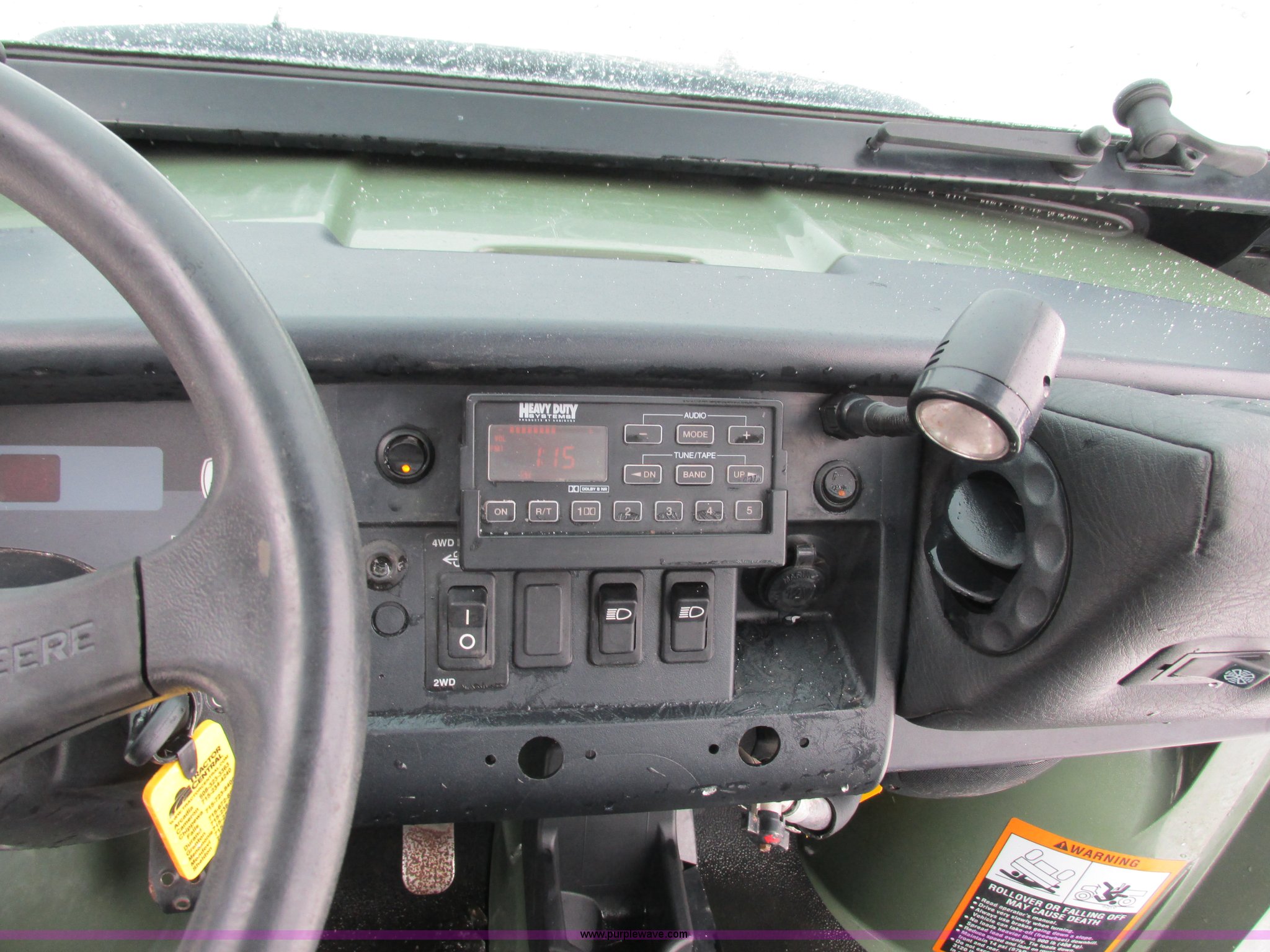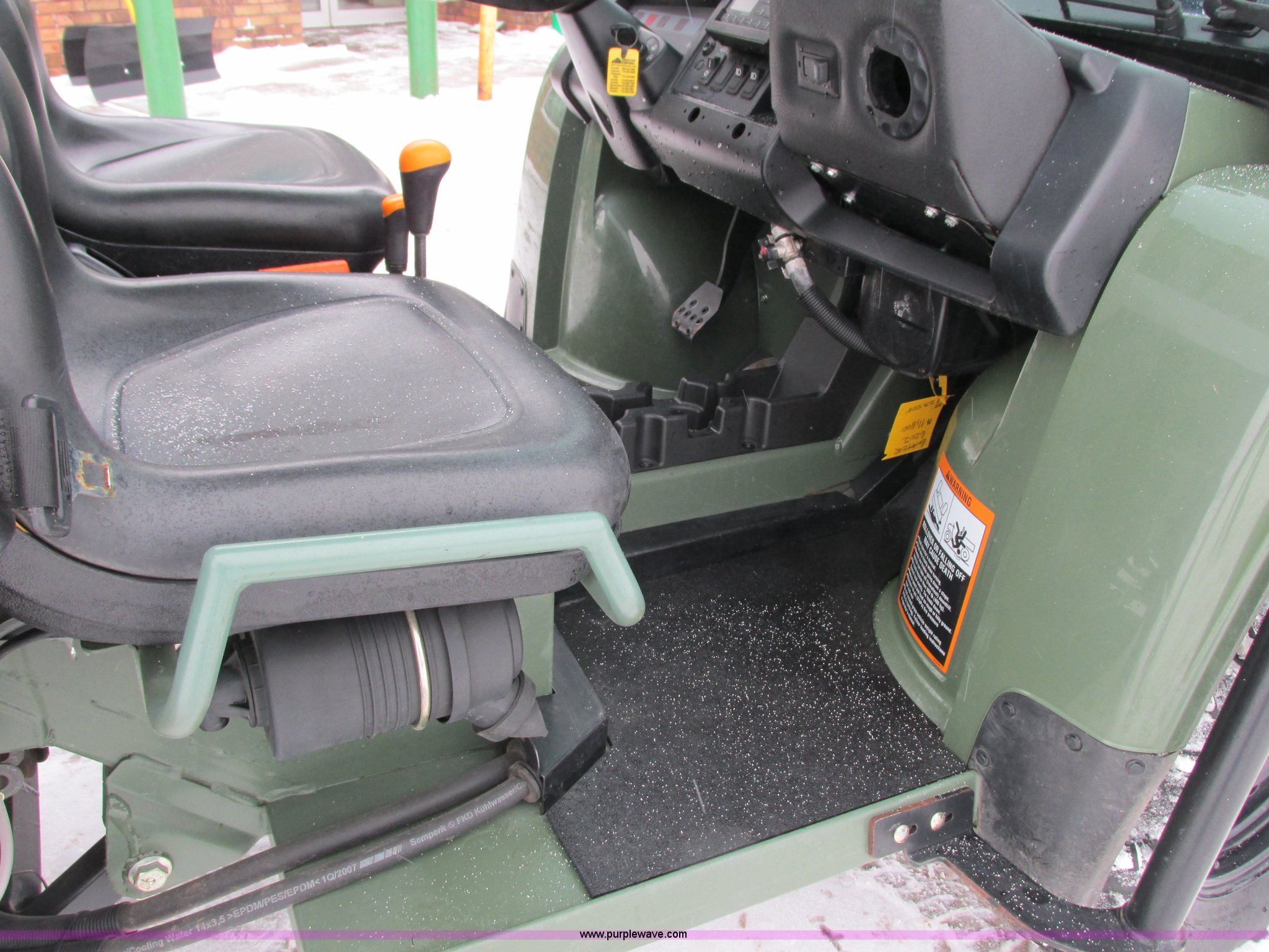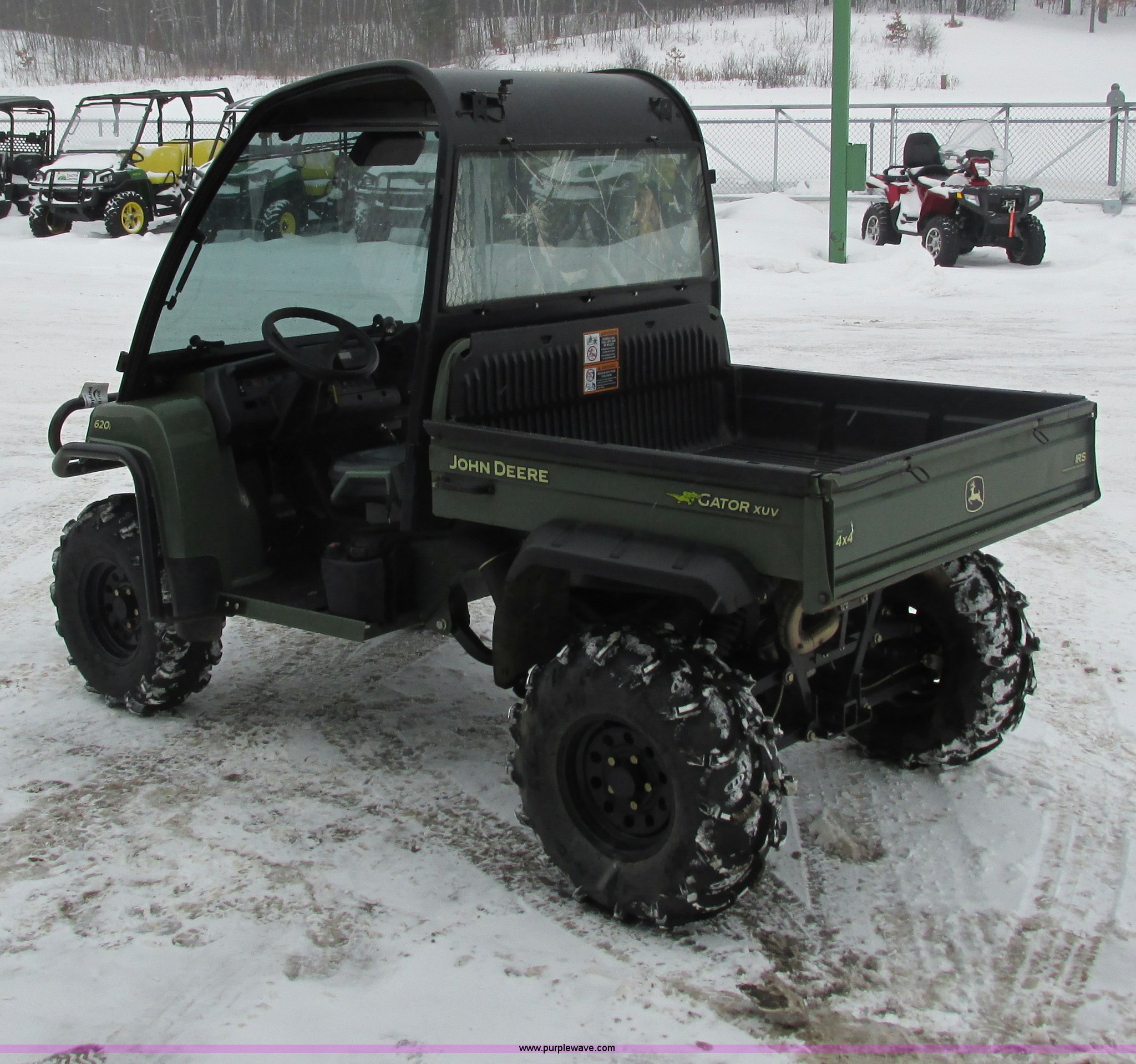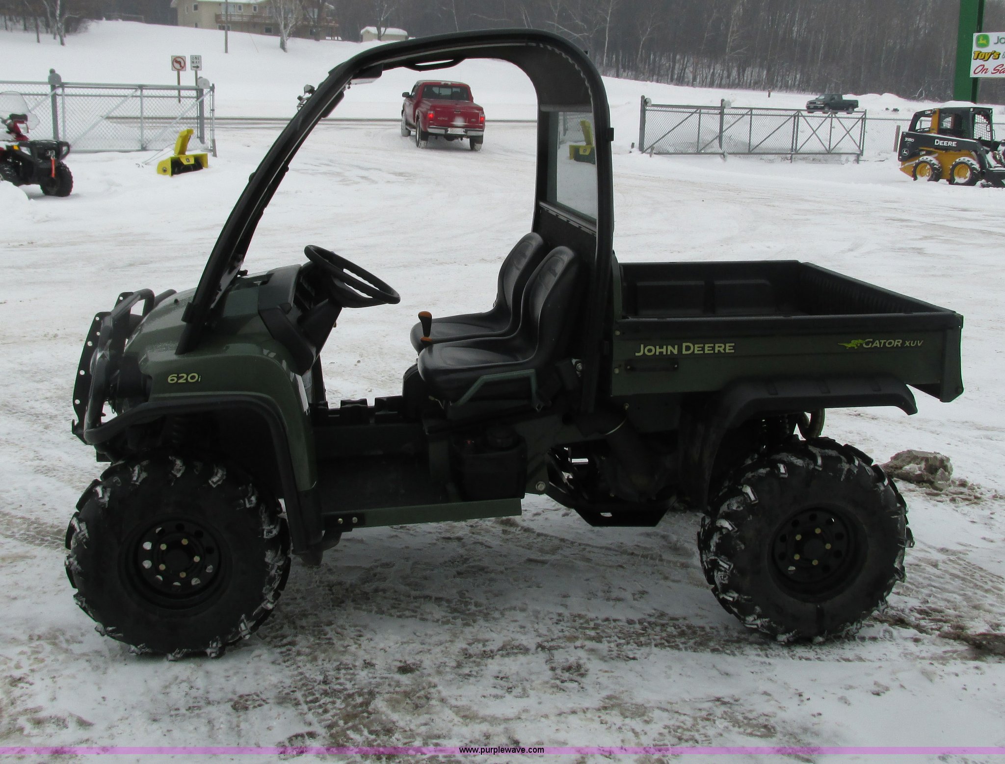 Purple Wave is selling a used Utility Vehicle in Wisconsin. This item is a 2007 John Deere 620i utility vehicle with the following: 307 hours on meter, Deluxe cab, Heat, AM/FM, Windshield wipers and washers, No doors, Power dump box, Bed liner, Front bumper, Fender guards, Front and rear 2" receiver hitch, High performance exhaust, Additional front running lights, 27x10-12 extreme terrain tires, 27x12-12 extreme terrain tires, Stock# 123508