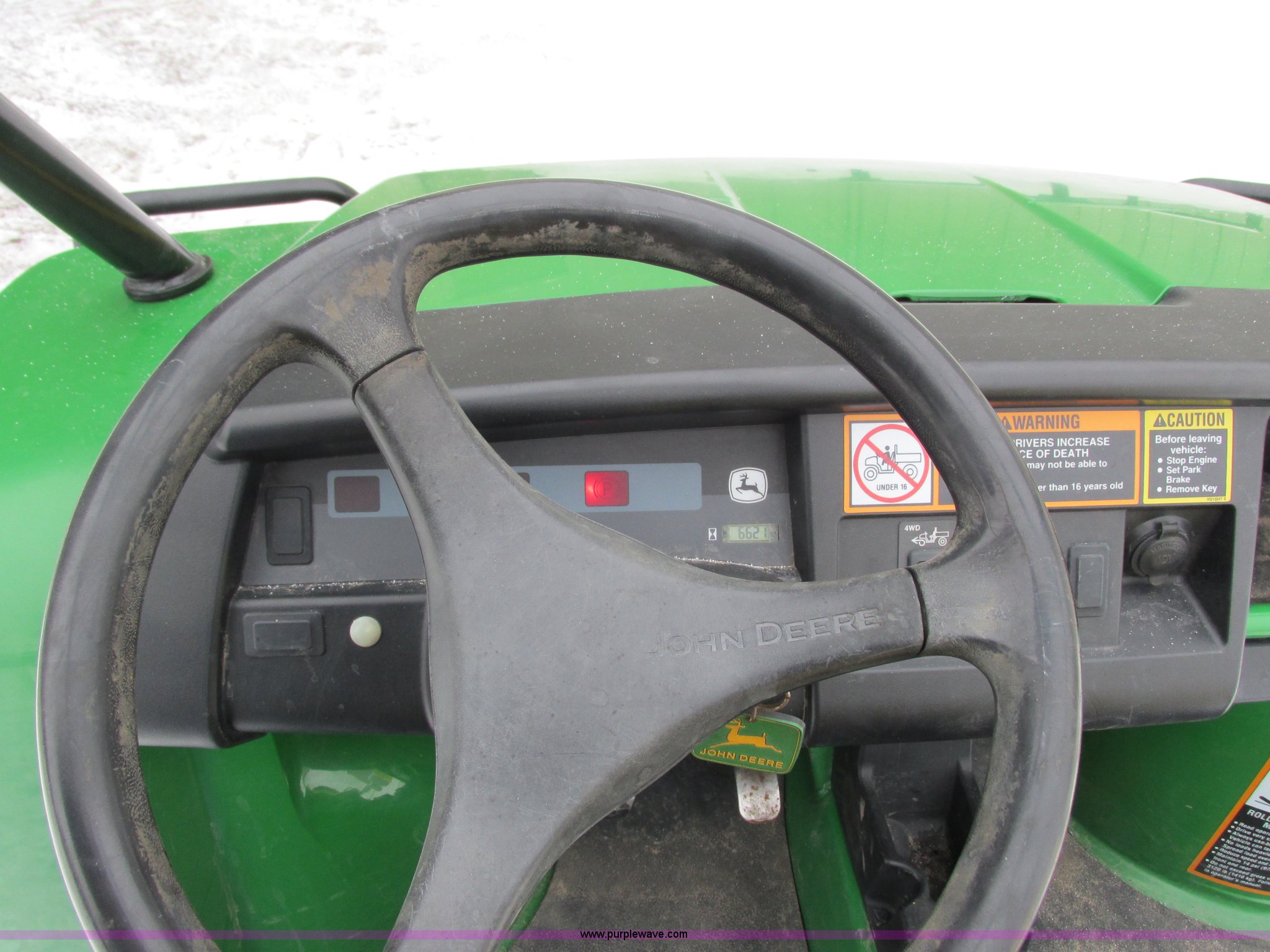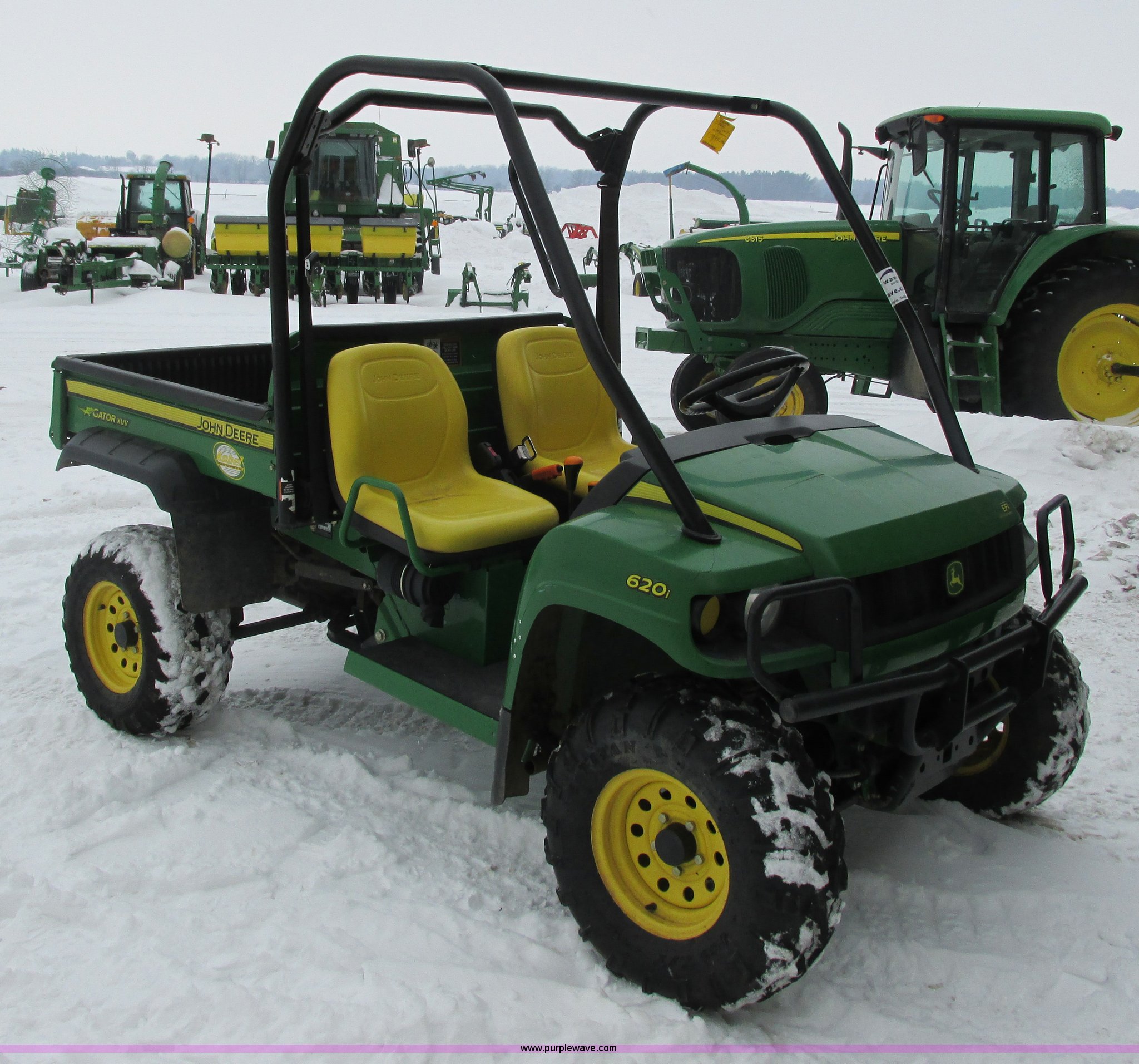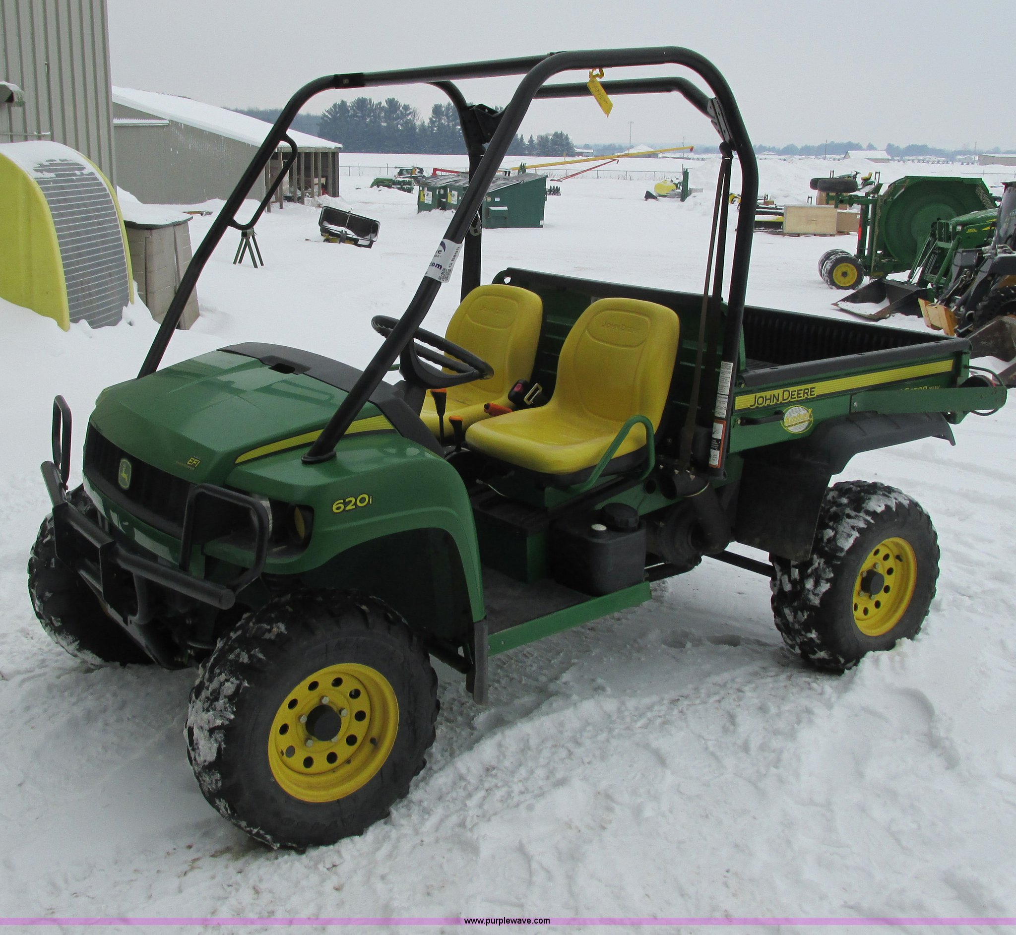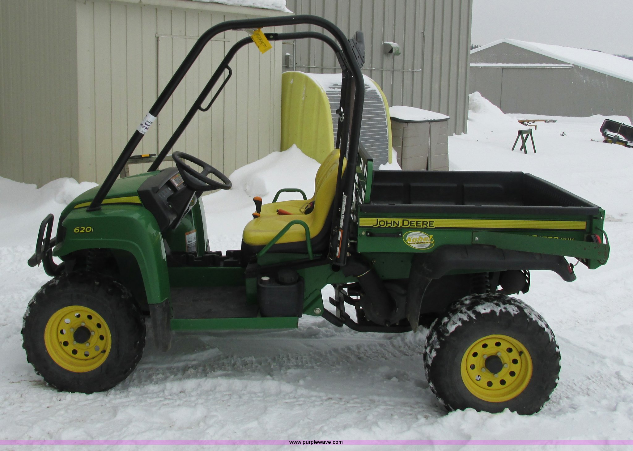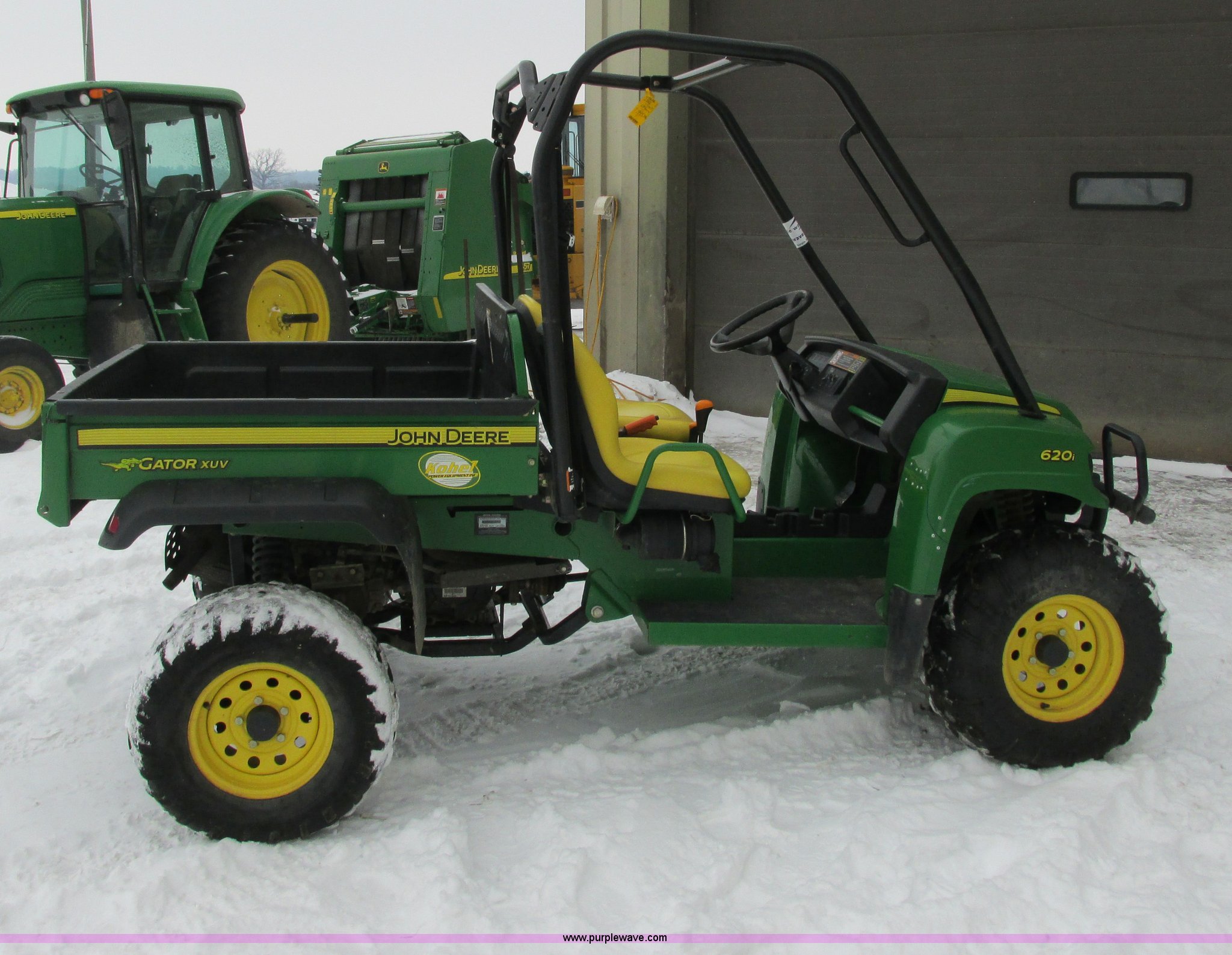 Purple Wave is selling a used Utility Vehicle in Wisconsin. This item is a 2007 John Deere 620i Gator utility vehicle with the following: 662 hours on meter, Kawasaki EFI gas engine, Hi/Low forward gears plus reverse, Four wheel drive, OROPS, Manual lift bed, Lights, Receiver hitch, 25x11.00-12 tires, Cracked right front fender, Stock# 129499
