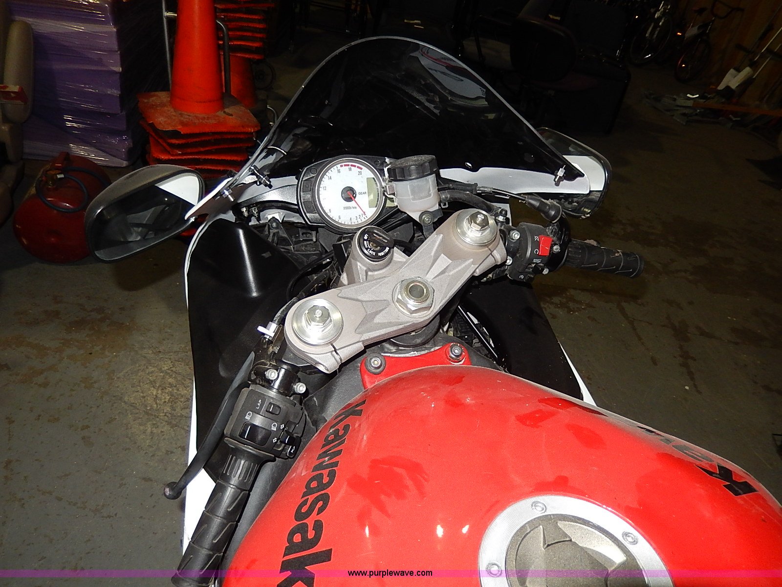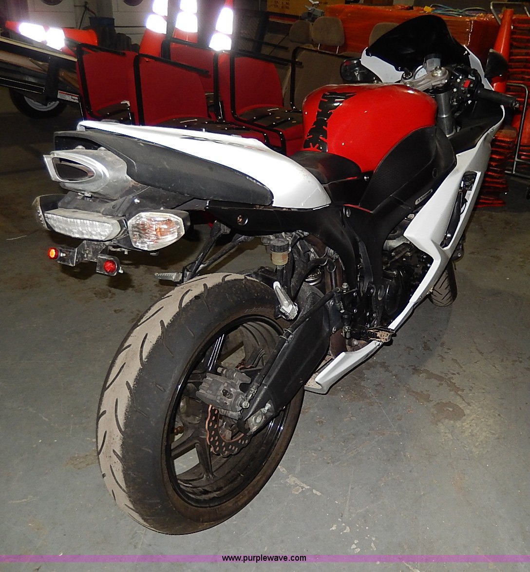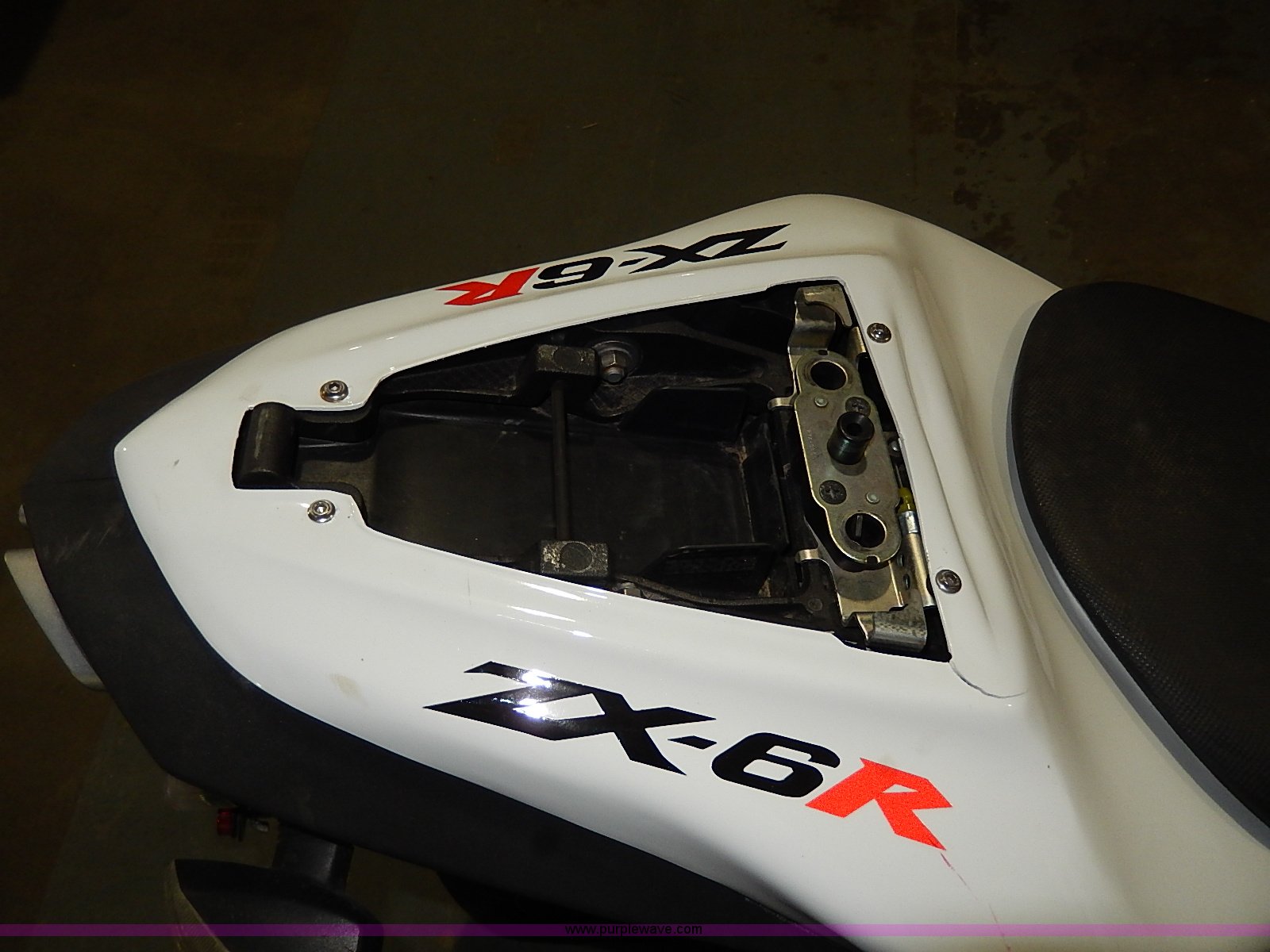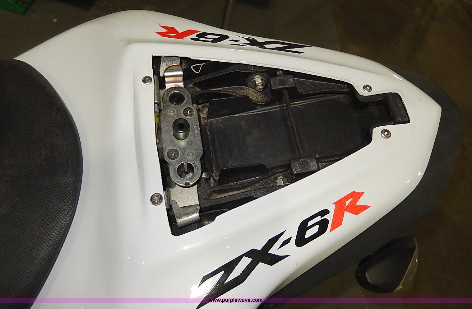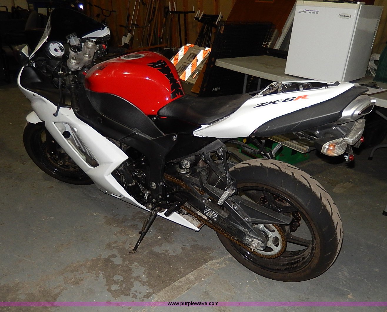 Purple Wave is selling a used Motorcycle in Kansas. This item is a 2007 Kawasaki ZX-6R motorcycle with the following: 19,252 miles on odometer, 600cc gas engine, Chain drive, Disc brakes, 120/70ZR17 front tire, 180/55ZR17 rear tire, Rear cover missing, Battery dead, Unknown running condition