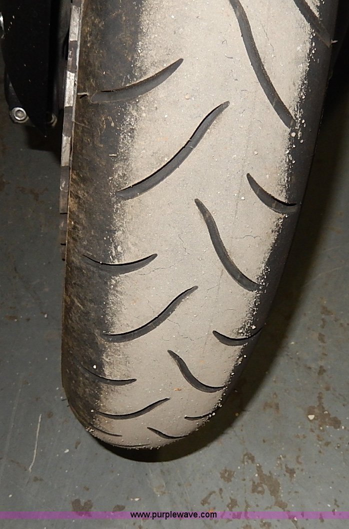 2007 Kawasaki ZX-6R motorcycle. 19,252 miles on odometer, 600cc gas engine, Chain drive, Disc brakes, 120/70ZR17 front tire, 180/55ZR17 rear tire, Rear cover missing, Battery dead, Unknown running condition. JKAZX4P147A002826. Junction City Police Department. 210 E 9th Street. Junction City, KS 66441