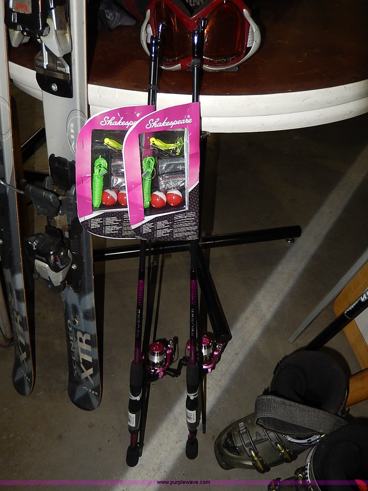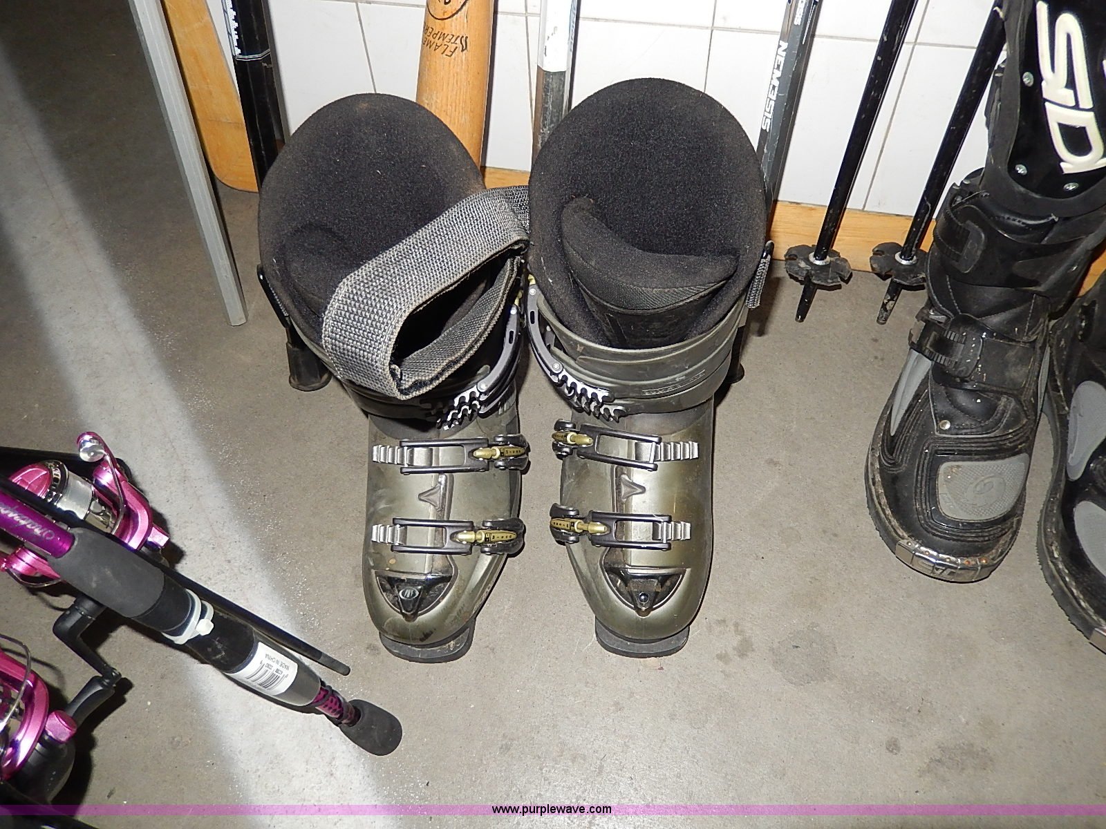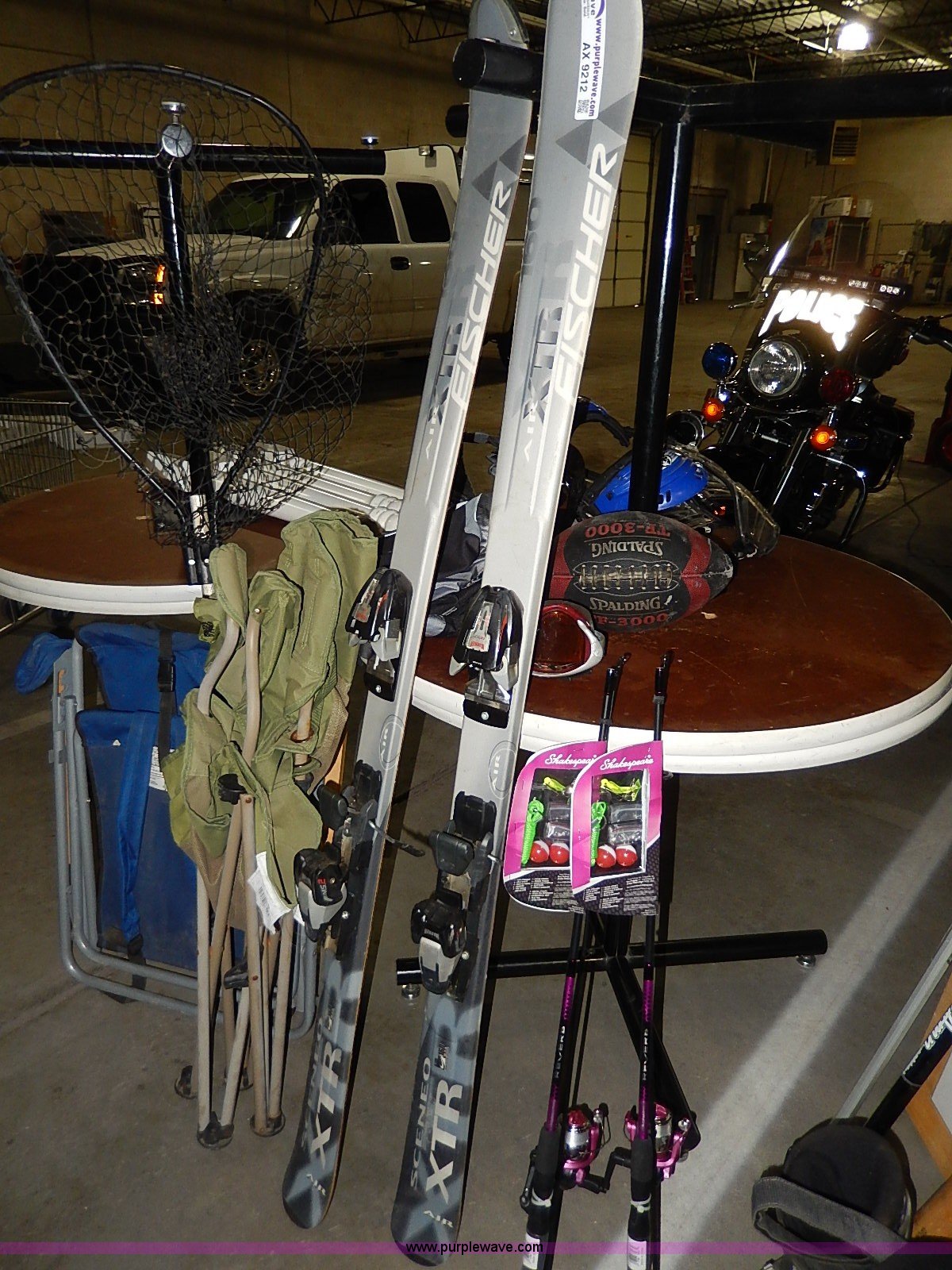 Purple Wave is selling a used Sporting Goods in Kansas. This item is a Assorted sporting goods with the following: Snow skis, Ski boots, Ski poles, Baseball bat, Lawn chairs, Fishing net, Fishing poles, Football, Racing gear and more