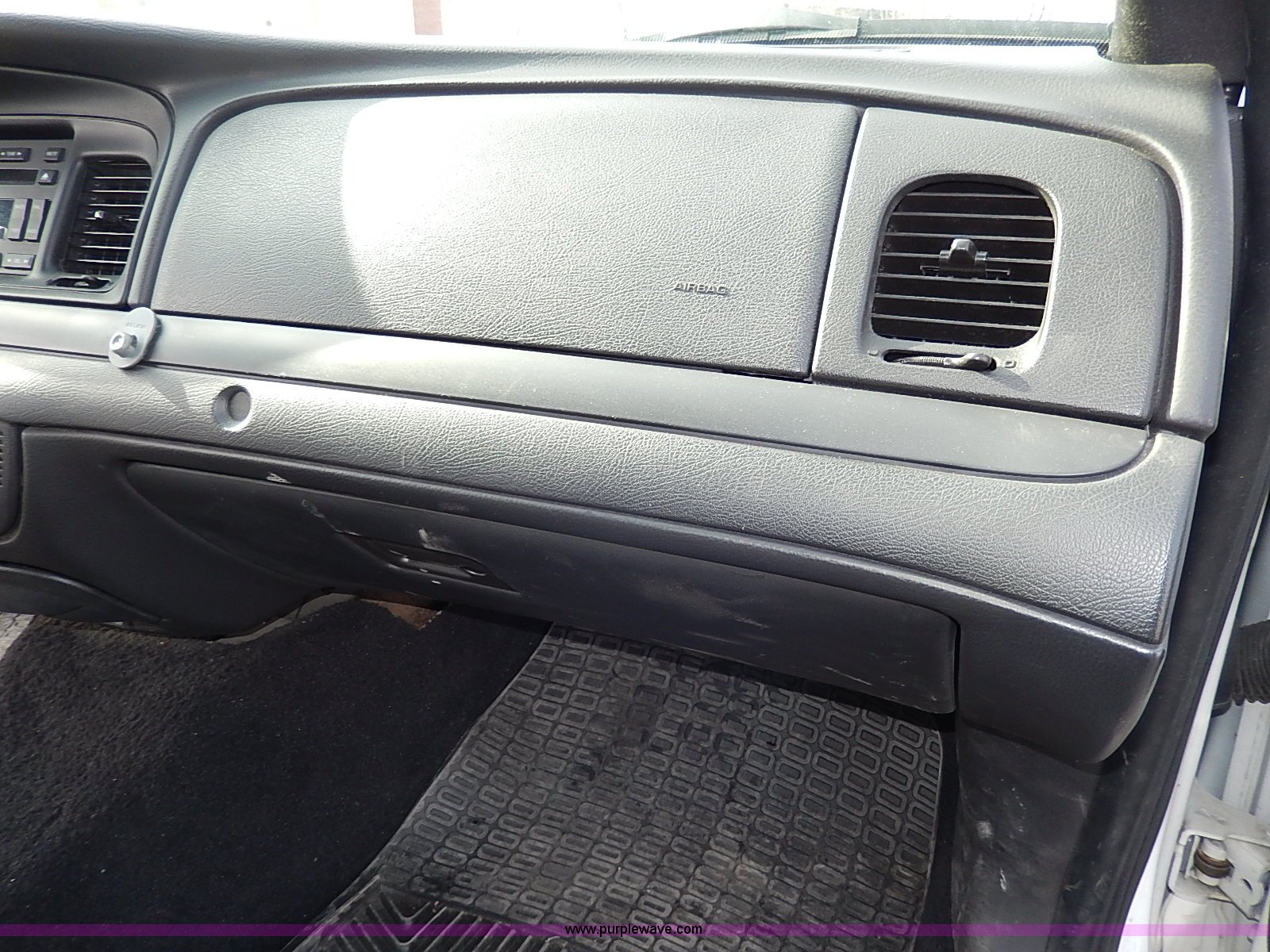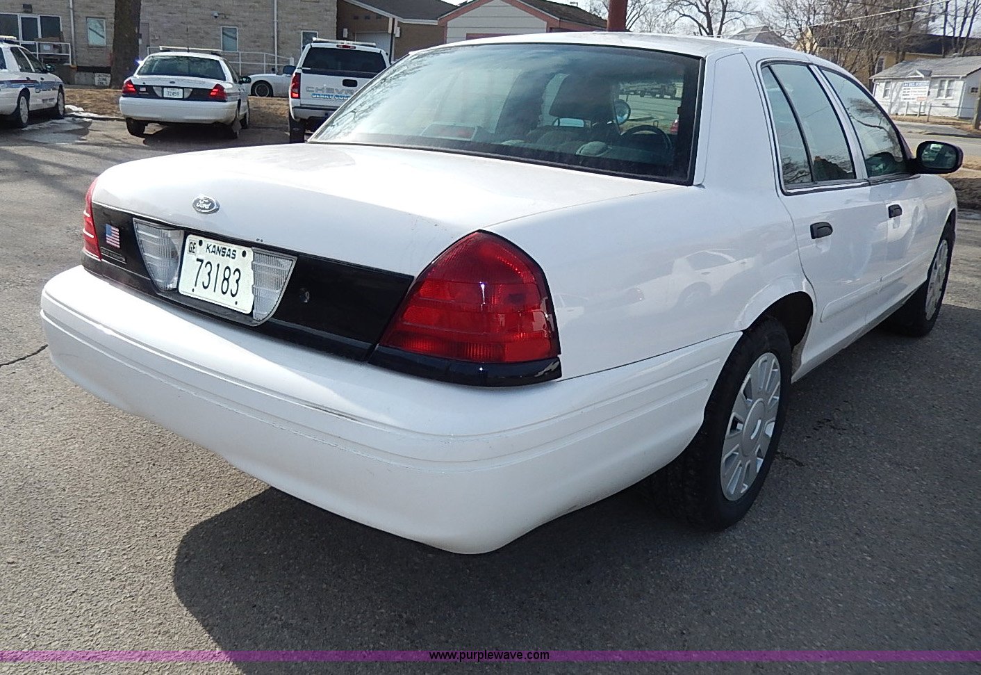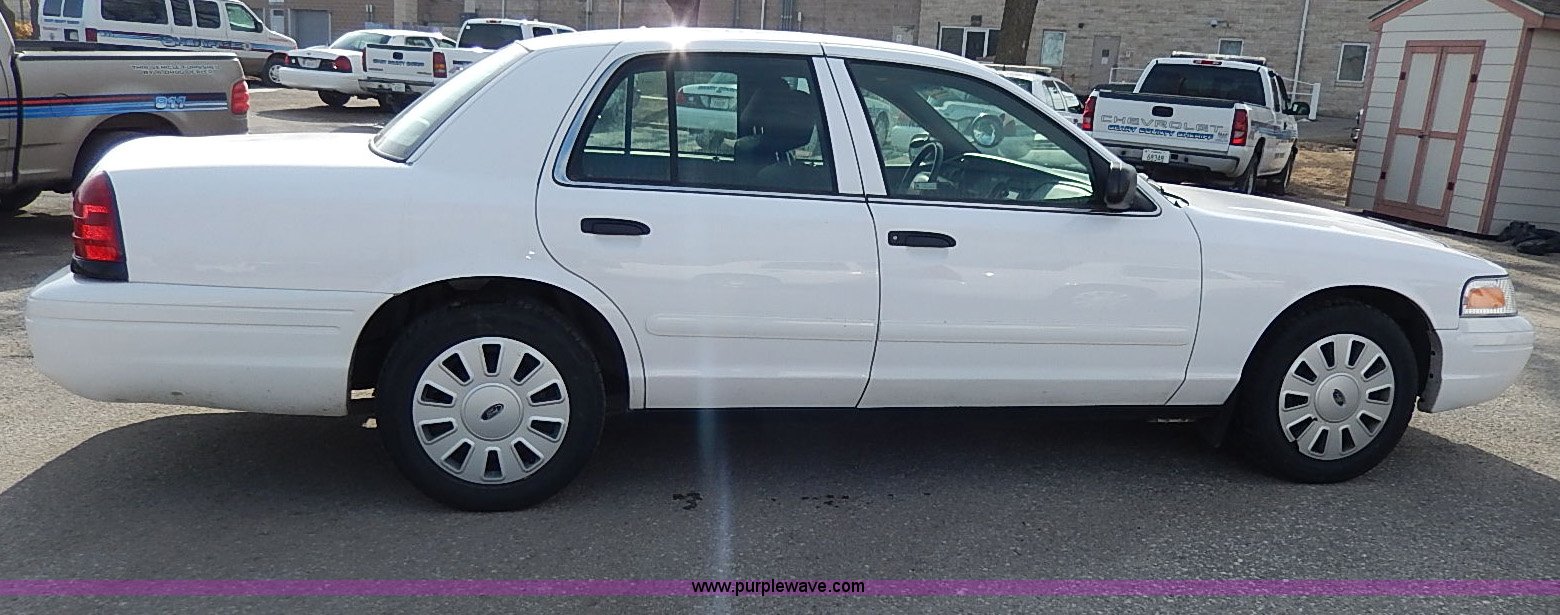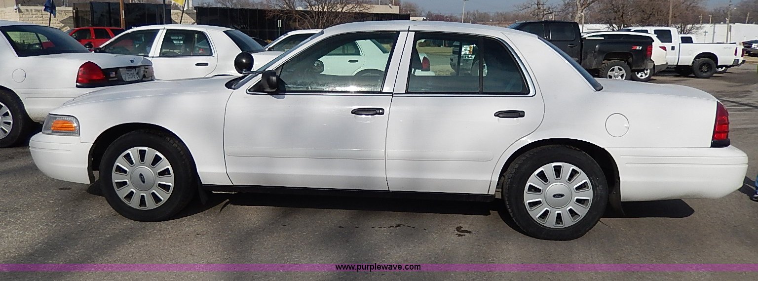 Purple Wave is selling a used Passenger Vehicle in Kansas. This item is a 2006 Ford Crown Victoria Police Interceptor with the following: 181,724 miles on odometer, 4.6L V8 SOHC 16V gas engine, Automatic transmission, AC and heat, Tilt, Cruise, AM/FM/CD, Power windows, locks, mirrors, and seats, Cloth interior, Heated mirrors, Spotlight, 235/55R17 tires, Paint peeling, Rear view mirror missing