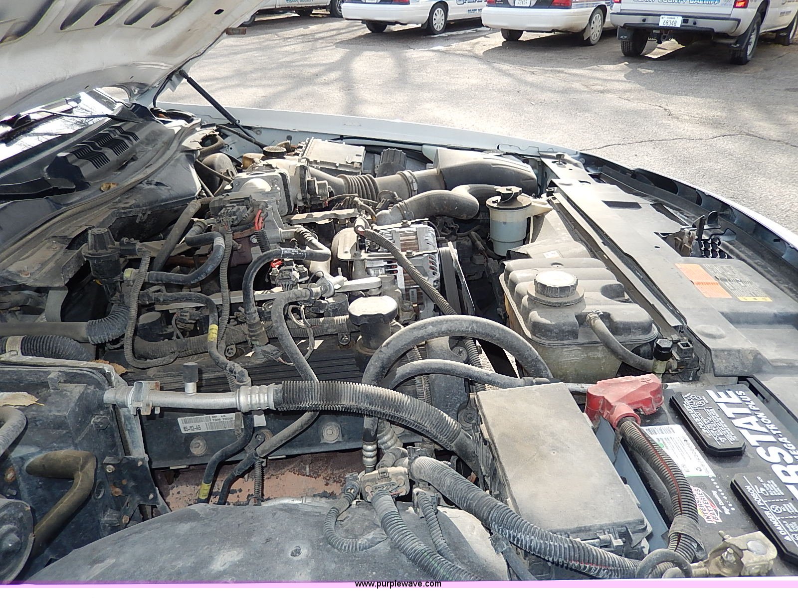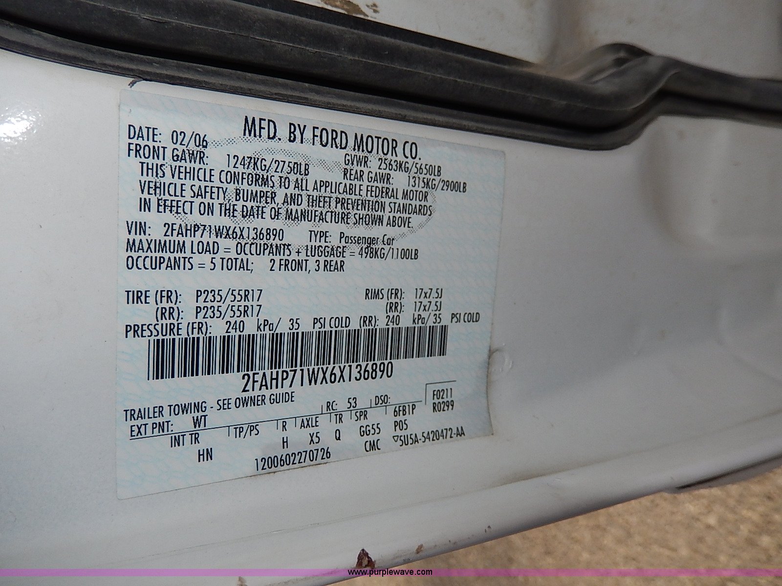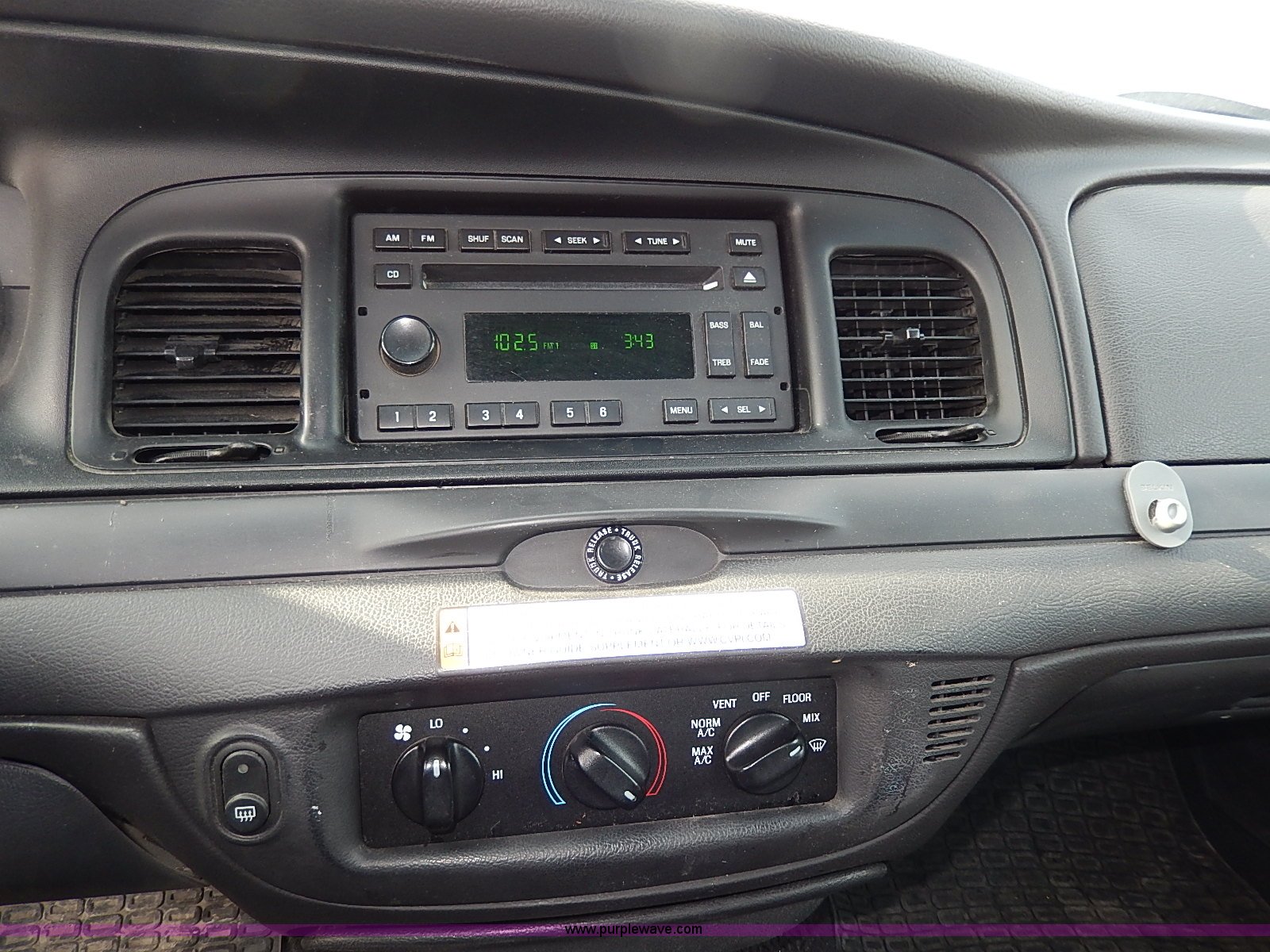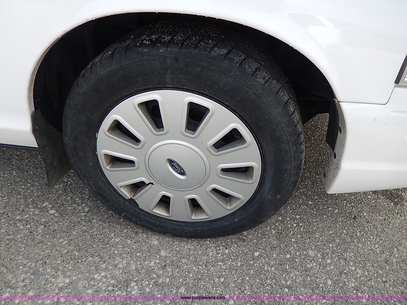 Purple Wave is selling a used Passenger Vehicle in Kansas. This item is a 2006 Ford Crown Victoria Police Interceptor with the following: 181,724 miles on odometer, 4.6L V8 SOHC 16V gas engine, Automatic transmission, AC and heat, Tilt, Cruise, AM/FM/CD, Power windows, locks, mirrors, and seats, Cloth interior, Heated mirrors, Spotlight, 235/55R17 tires, Paint peeling, Rear view mirror missing