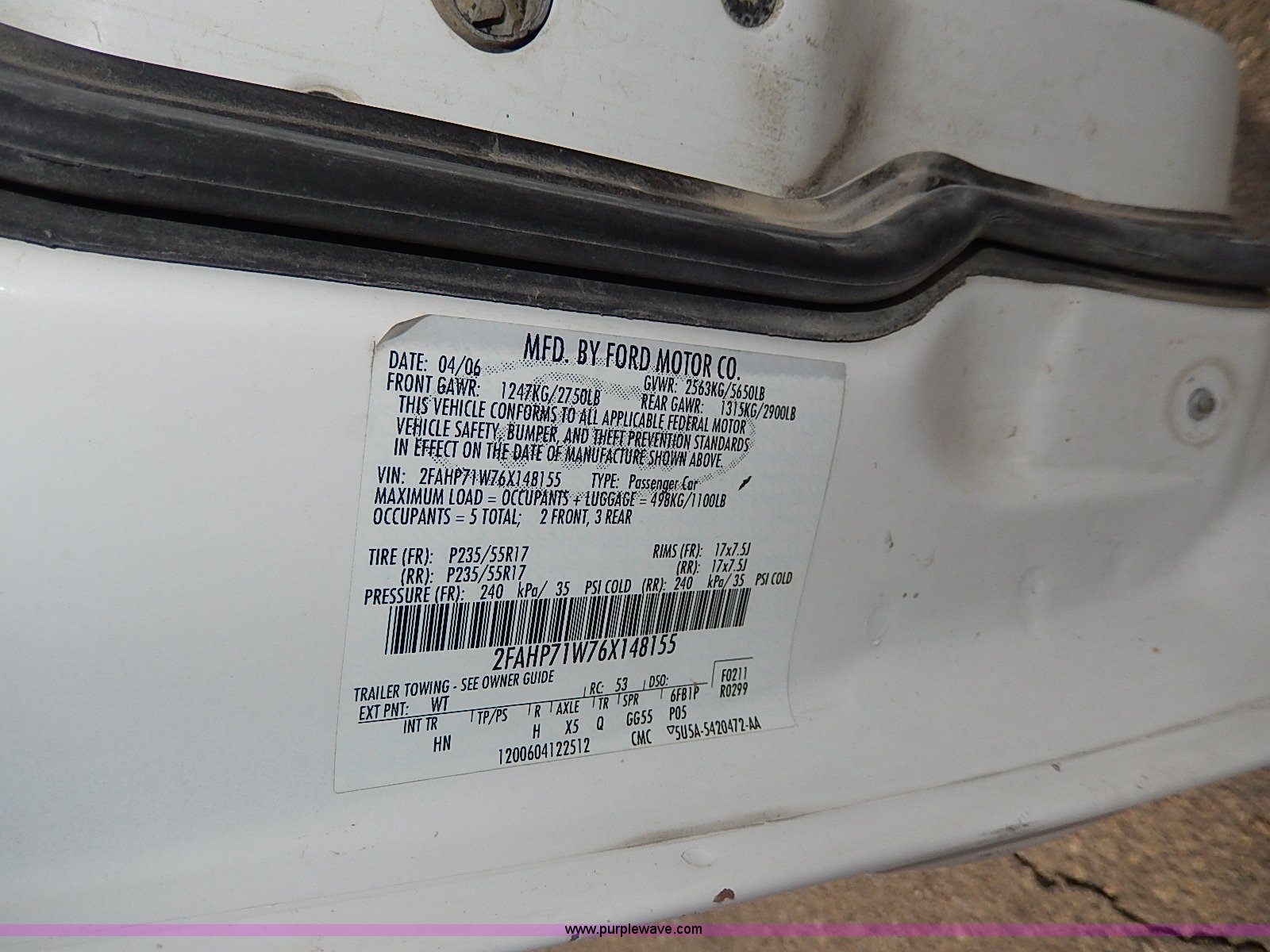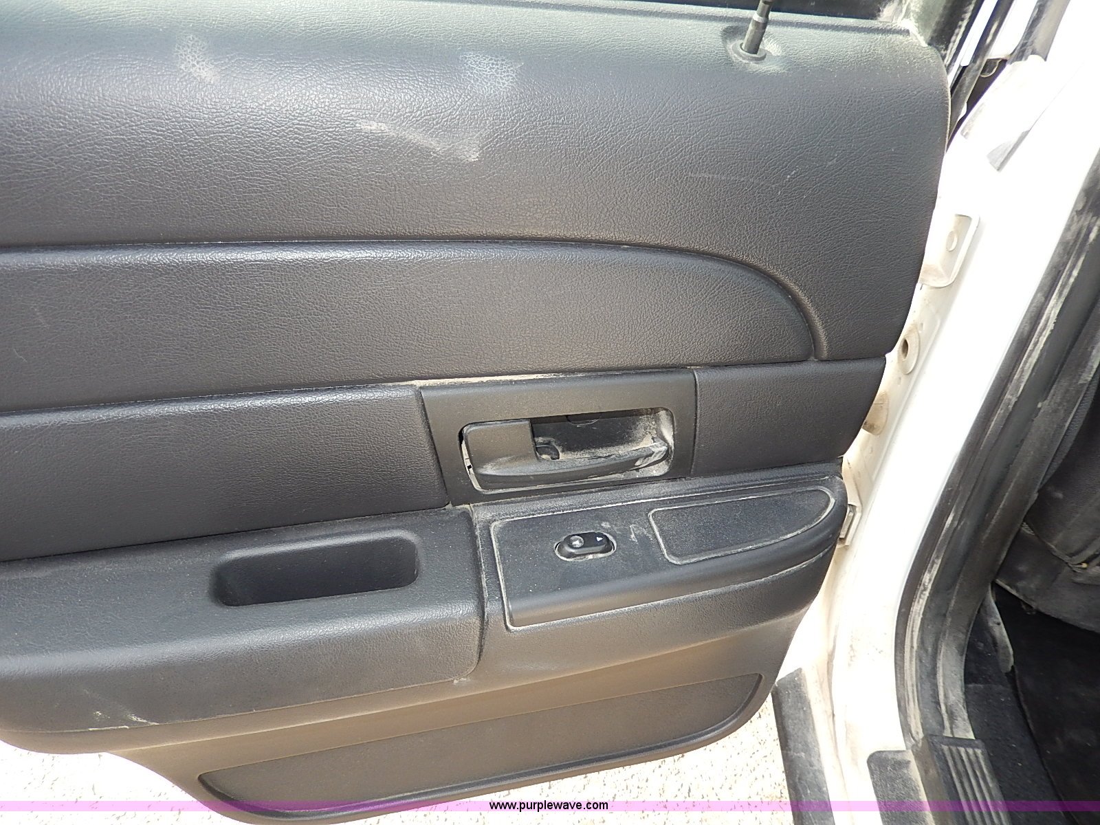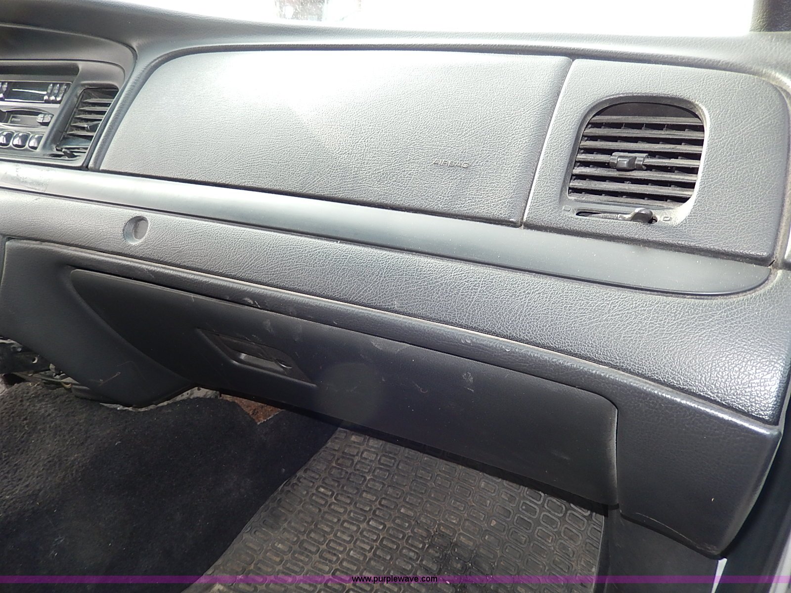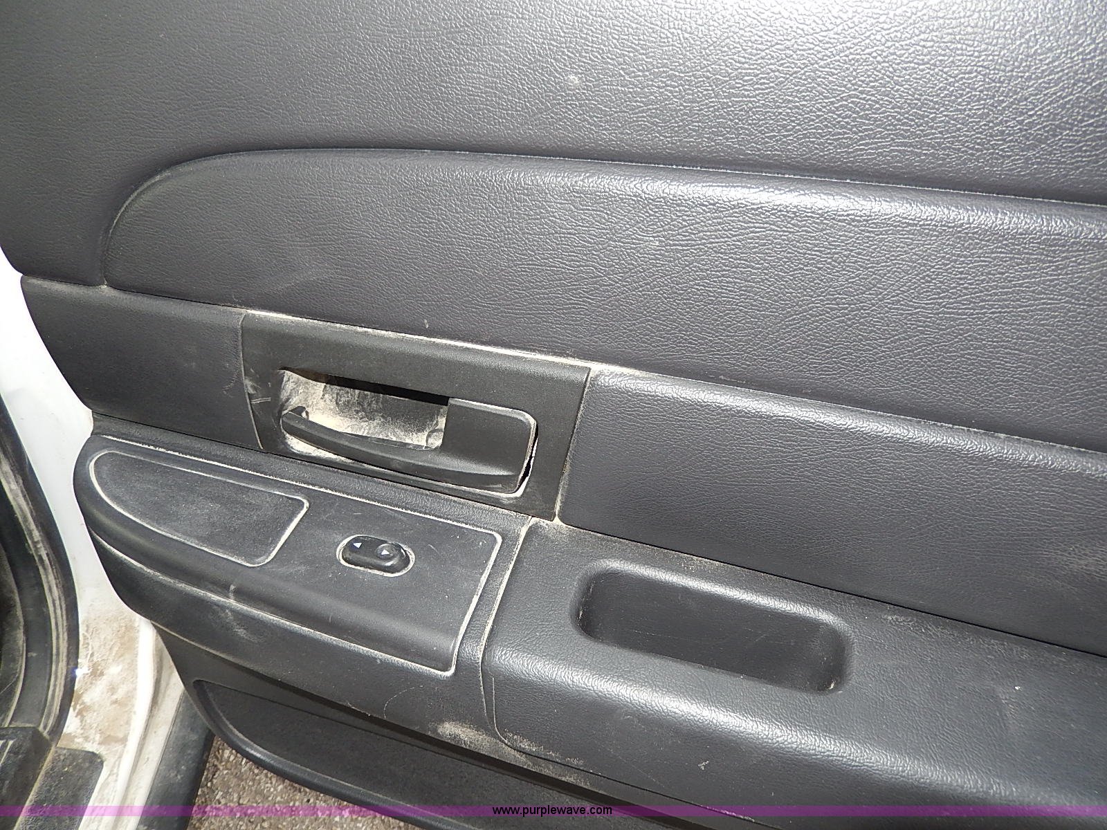Purple Wave is selling a used Passenger Vehicle in Kansas. This item is a 2006 Ford Crown Victoria Police Interceptor with the following: 169,941 miles on odometer, 4.6L V8 SOHC 16V gas engine, Automatic transmission, AC and heat, Tilt, Cruise, AM/FM/cassette, Power windows, locks, mirrors, and seats, Cloth interior, Heated mirrors, Spotlight, 235/55R17 tires, Scratches and dents, Cosmetic damage to rear bumper