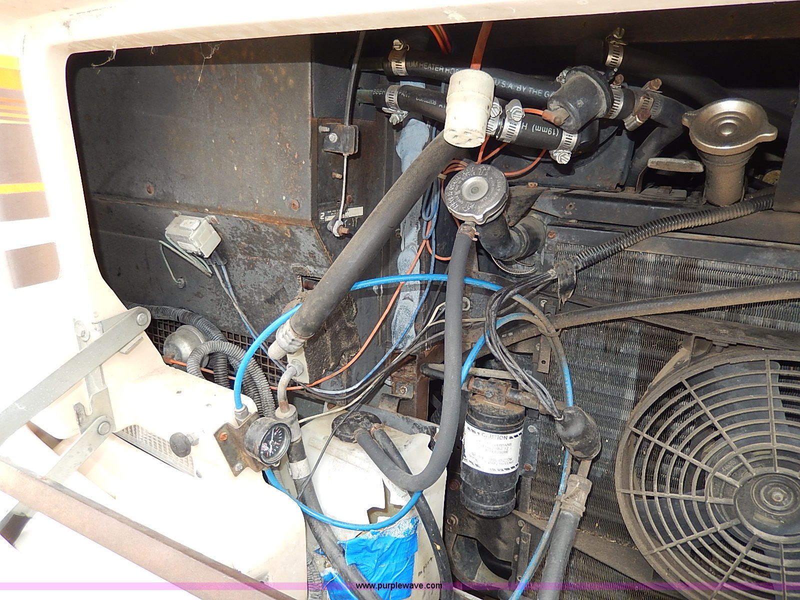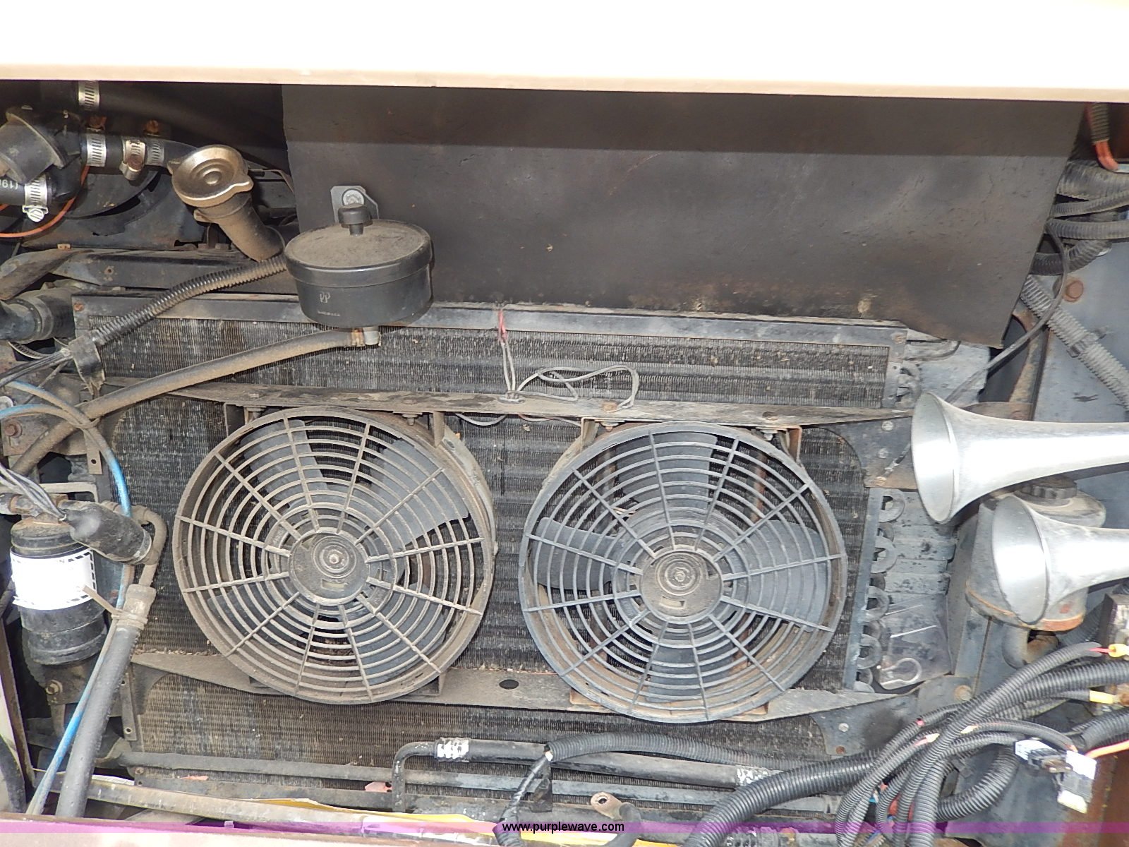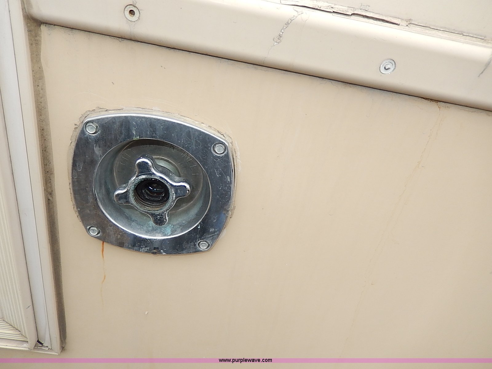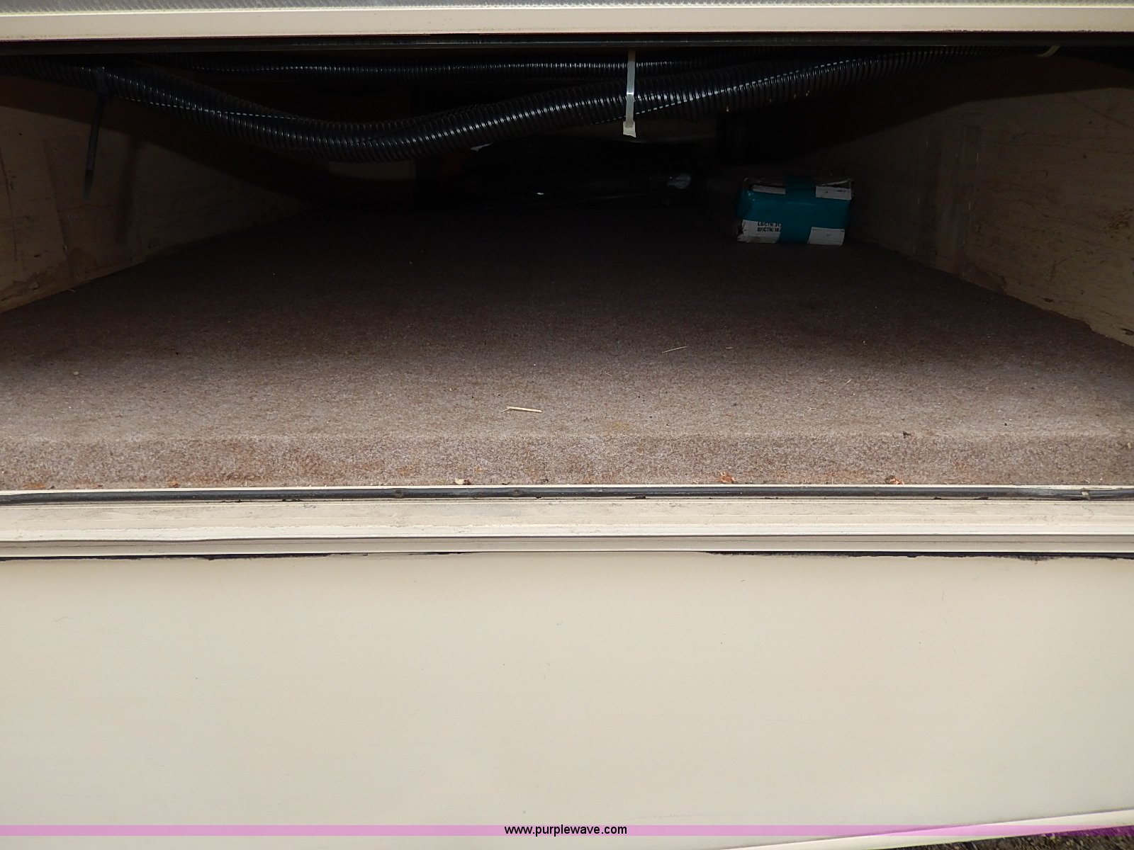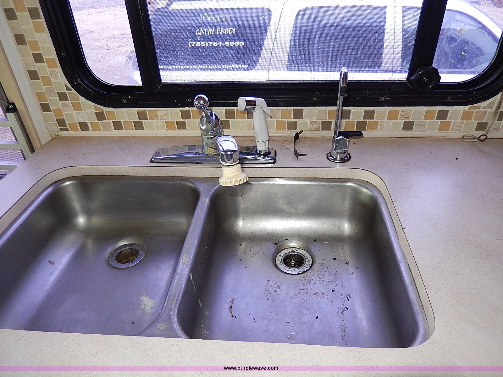 Purple Wave is selling a used RV in Kansas. This item is a 1989 Chevrolet Fleetwood P30 Bounder RV with the following: 51,427 miles on odometer, 7.4L V8 OHV 16V gas engine, Automatic transmission, AC and heat, Tilt, Cruise, AM/FM/CD, Manual windows and locks, Cloth interior, Model 80 electrical control center, Serial 733SL4708105, Rear bedroom, No mattress, Storage, Sink, Coleman AC system, Emerald III generator, VCR, (2) side entry doors, Rear platform, 110/125V AC, Fold out couch, Chair, LP hook-up, Wood flooring, Closet storage, Bathroom, Sink, Shower, Toilet, Kitchen, Dometic refrigerator/freezer, Magic Chef stove, Magic Chef microwave, Sink, Storage, Table with bench seats, Receiver hitch, 8R19.5 tires, Dead battery