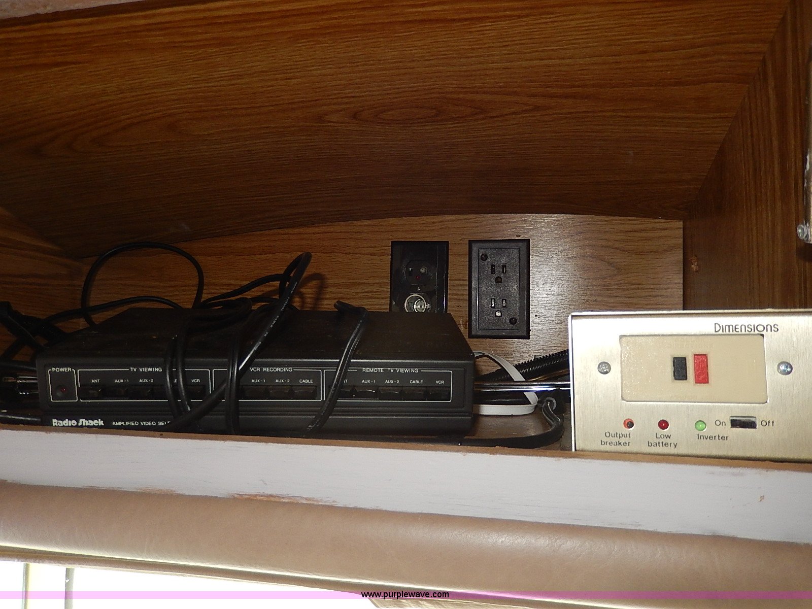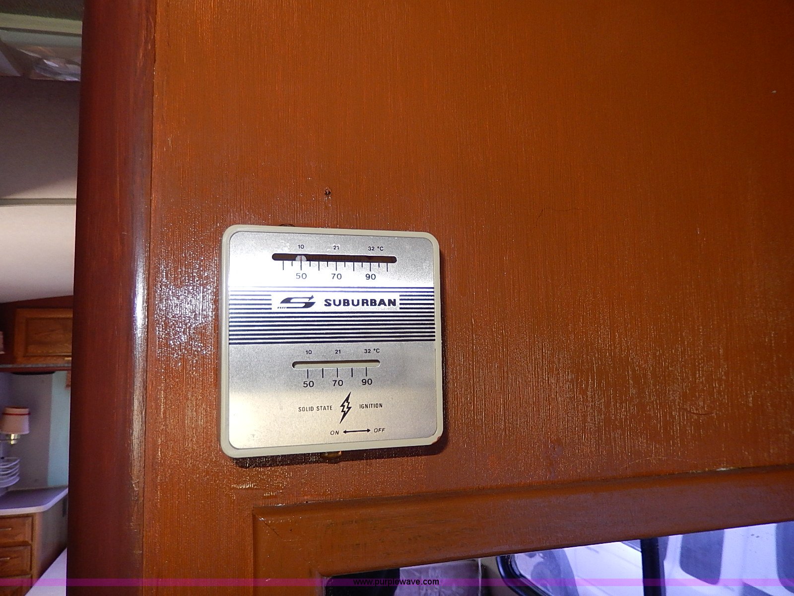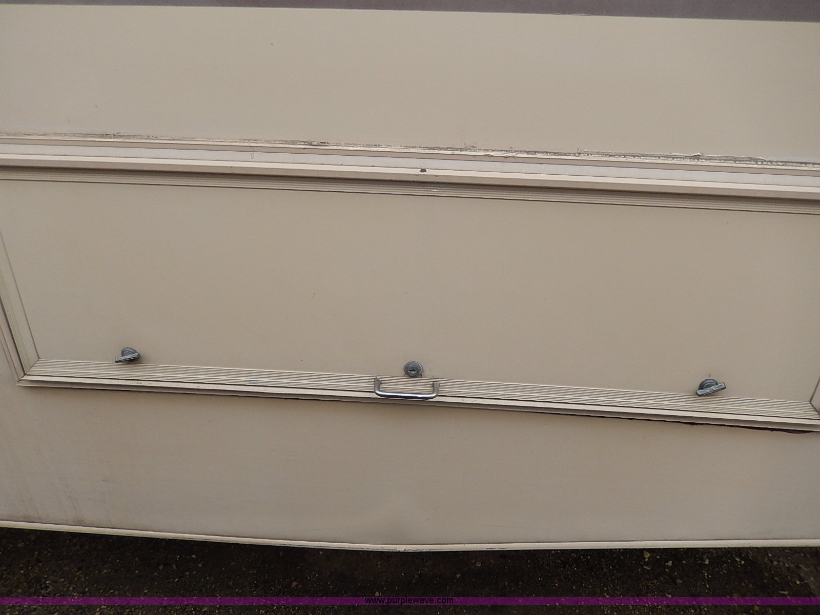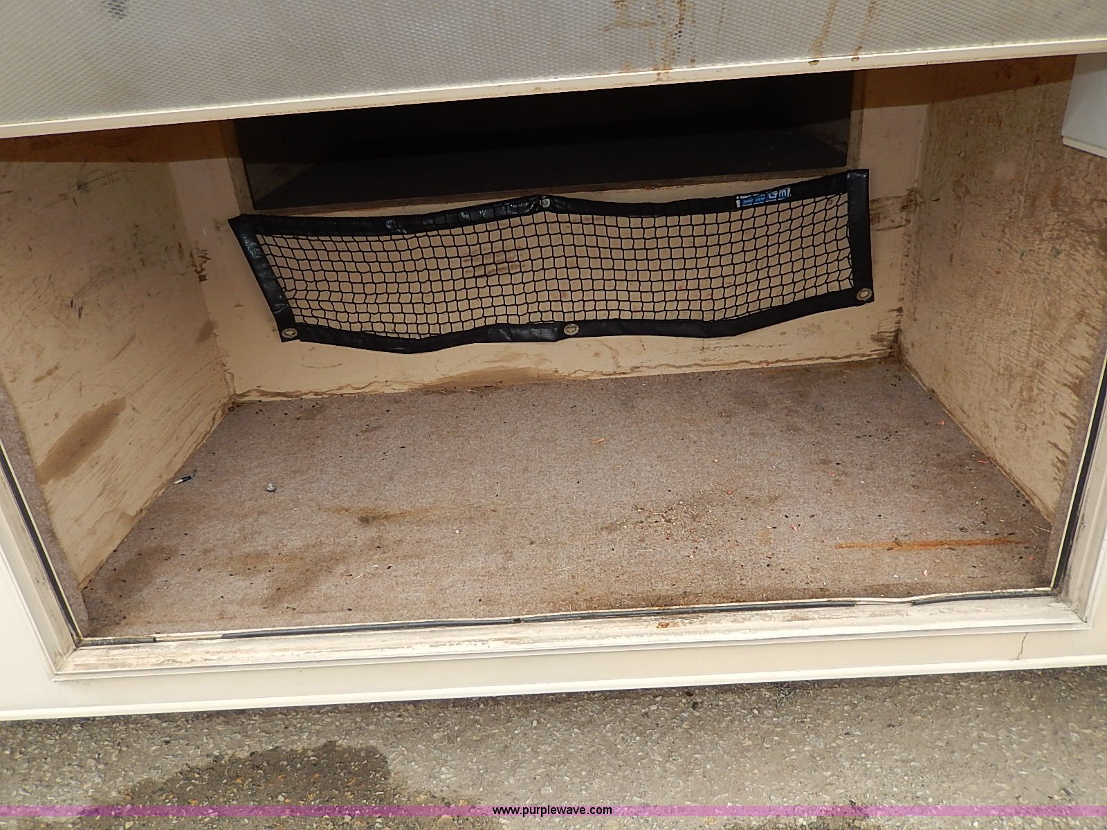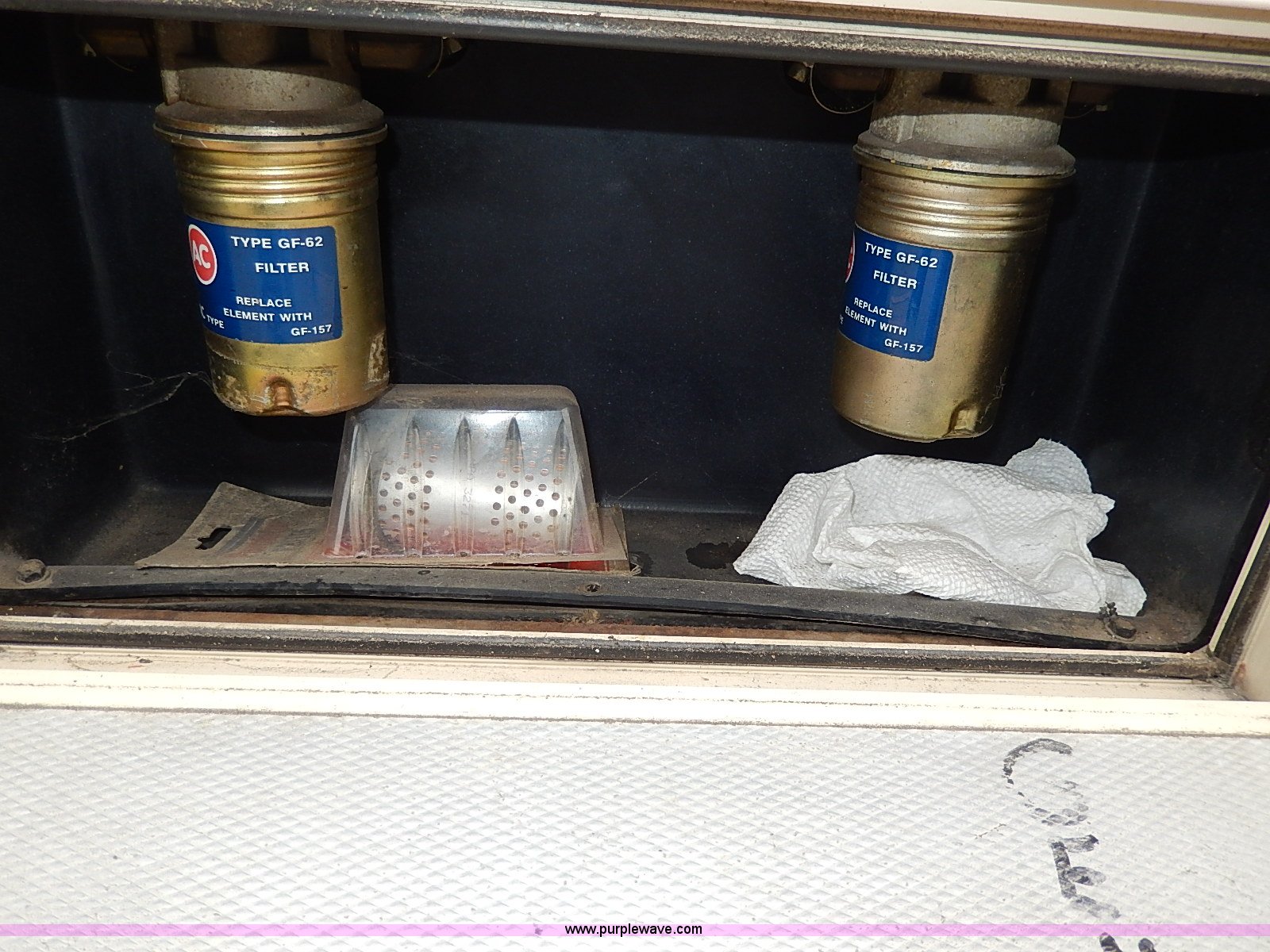 Purple Wave is selling a used RV in Kansas. This item is a 1989 Chevrolet Fleetwood P30 Bounder RV with the following: 51,427 miles on odometer, 7.4L V8 OHV 16V gas engine, Automatic transmission, AC and heat, Tilt, Cruise, AM/FM/CD, Manual windows and locks, Cloth interior, Model 80 electrical control center, Serial 733SL4708105, Rear bedroom, No mattress, Storage, Sink, Coleman AC system, Emerald III generator, VCR, (2) side entry doors, Rear platform, 110/125V AC, Fold out couch, Chair, LP hook-up, Wood flooring, Closet storage, Bathroom, Sink, Shower, Toilet, Kitchen, Dometic refrigerator/freezer, Magic Chef stove, Magic Chef microwave, Sink, Storage, Table with bench seats, Receiver hitch, 8R19.5 tires, Dead battery