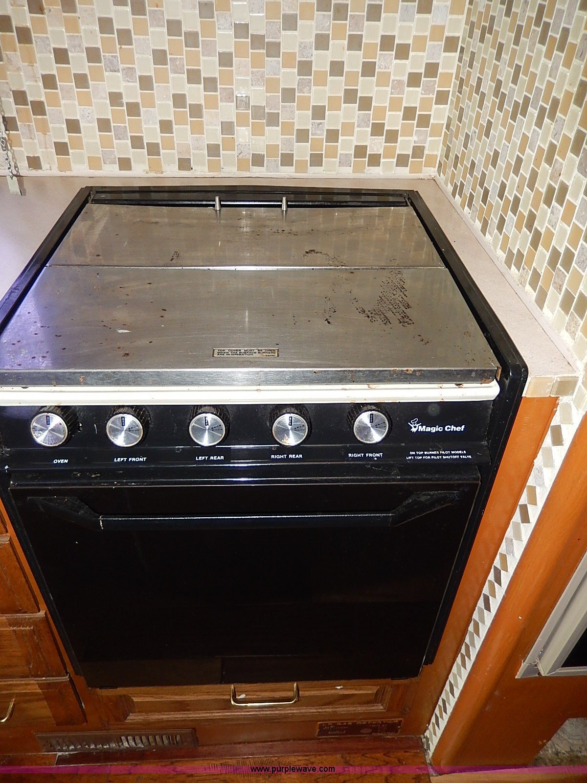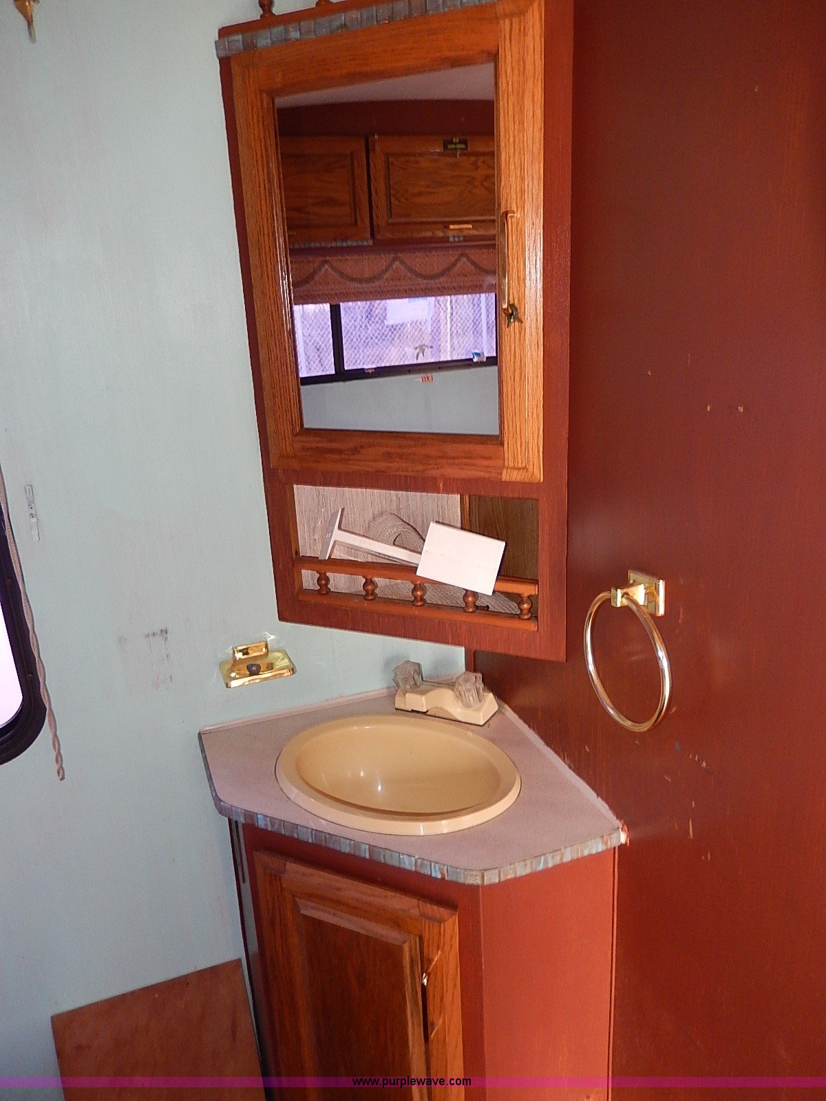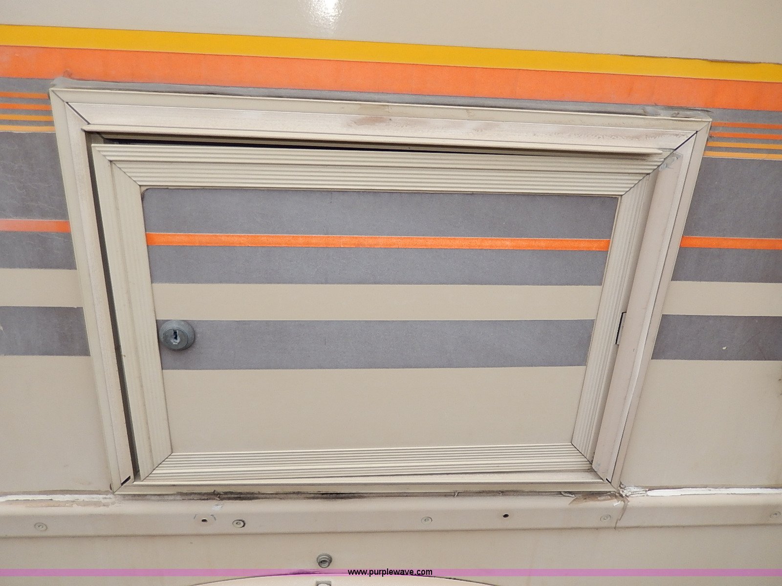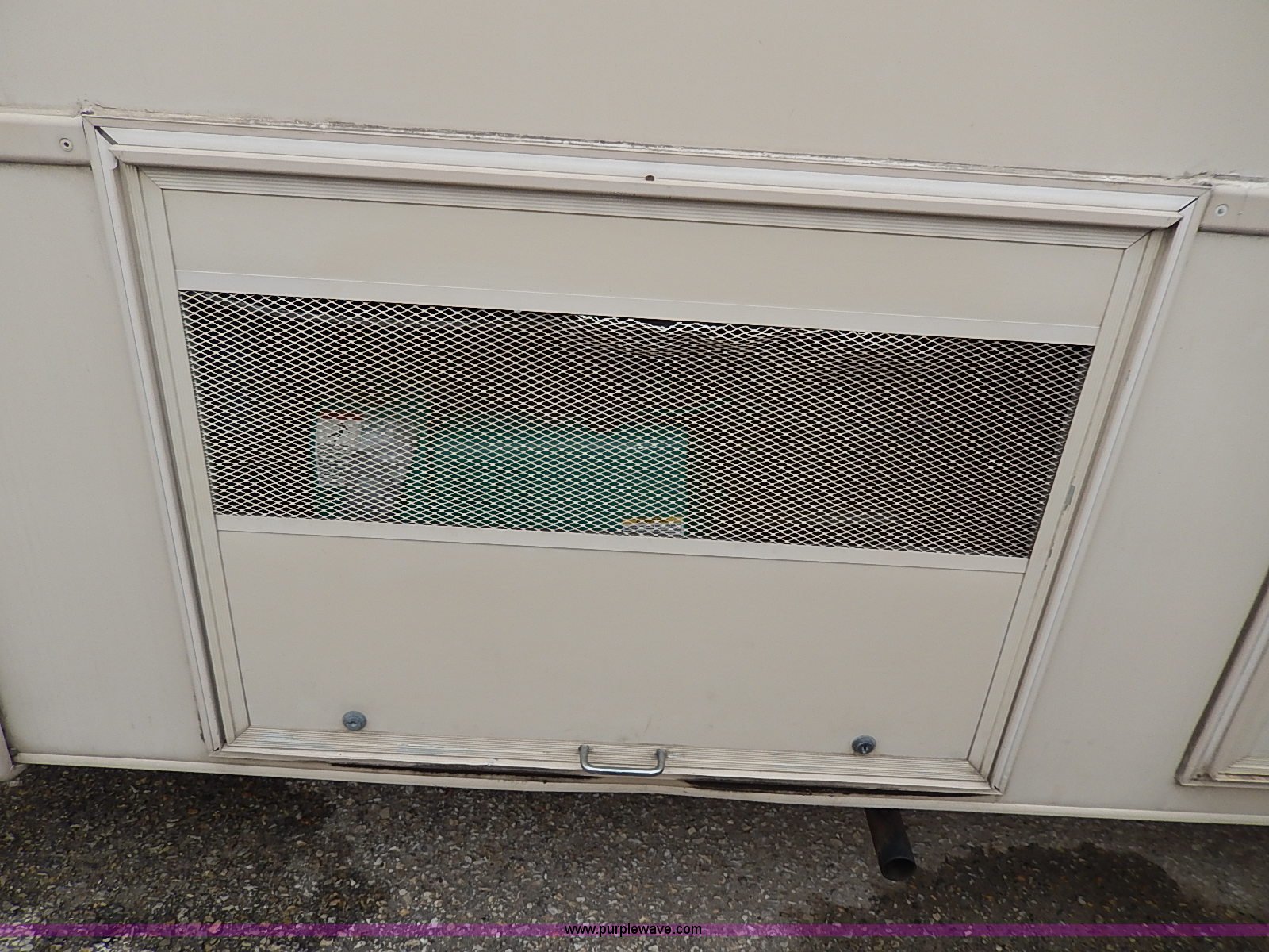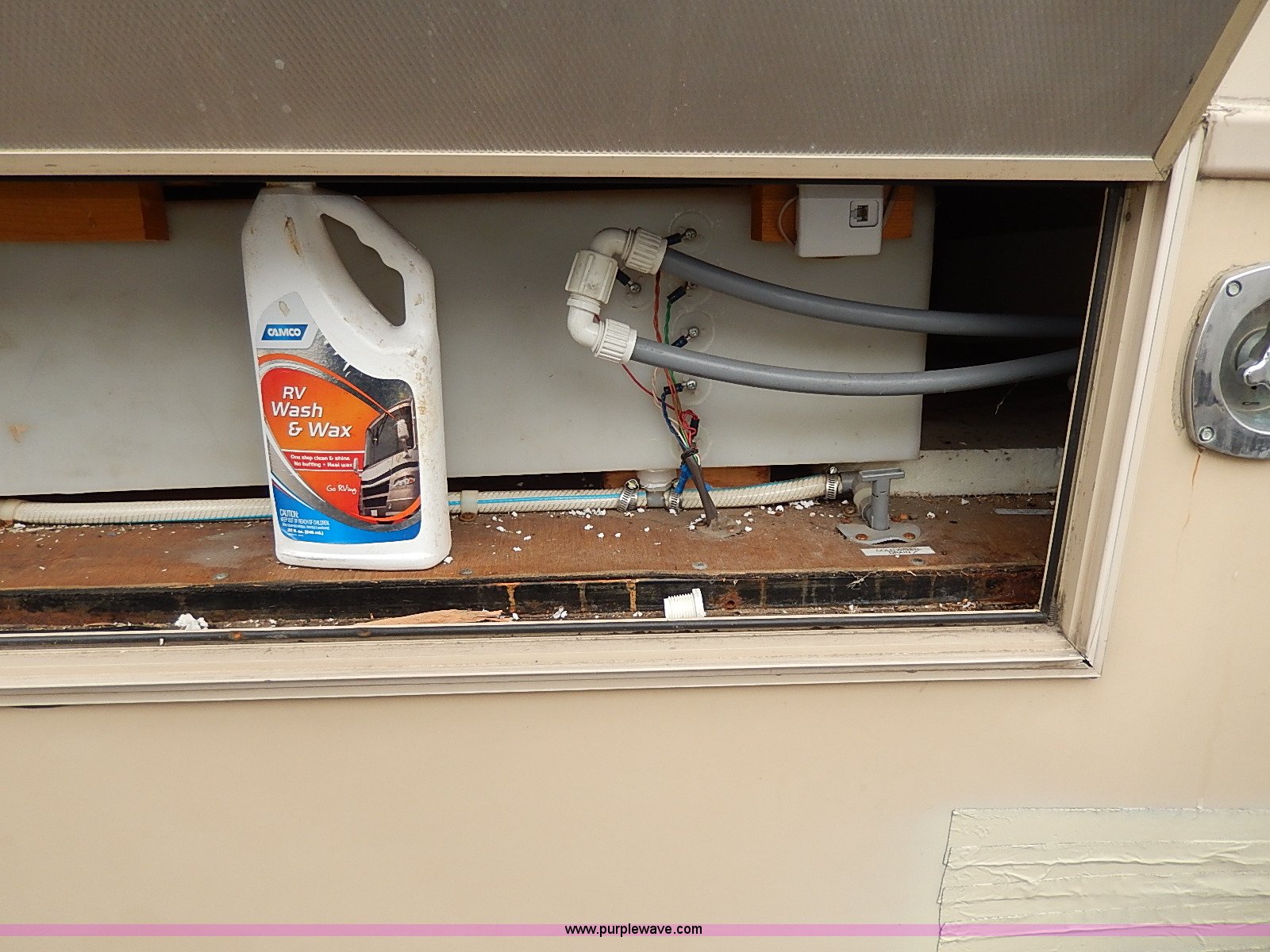Purple Wave is selling a used RV in Kansas. This item is a 1989 Chevrolet Fleetwood P30 Bounder RV with the following: 51,427 miles on odometer, 7.4L V8 OHV 16V gas engine, Automatic transmission, AC and heat, Tilt, Cruise, AM/FM/CD, Manual windows and locks, Cloth interior, Model 80 electrical control center, Serial 733SL4708105, Rear bedroom, No mattress, Storage, Sink, Coleman AC system, Emerald III generator, VCR, (2) side entry doors, Rear platform, 110/125V AC, Fold out couch, Chair, LP hook-up, Wood flooring, Closet storage, Bathroom, Sink, Shower, Toilet, Kitchen, Dometic refrigerator/freezer, Magic Chef stove, Magic Chef microwave, Sink, Storage, Table with bench seats, Receiver hitch, 8R19.5 tires, Dead battery