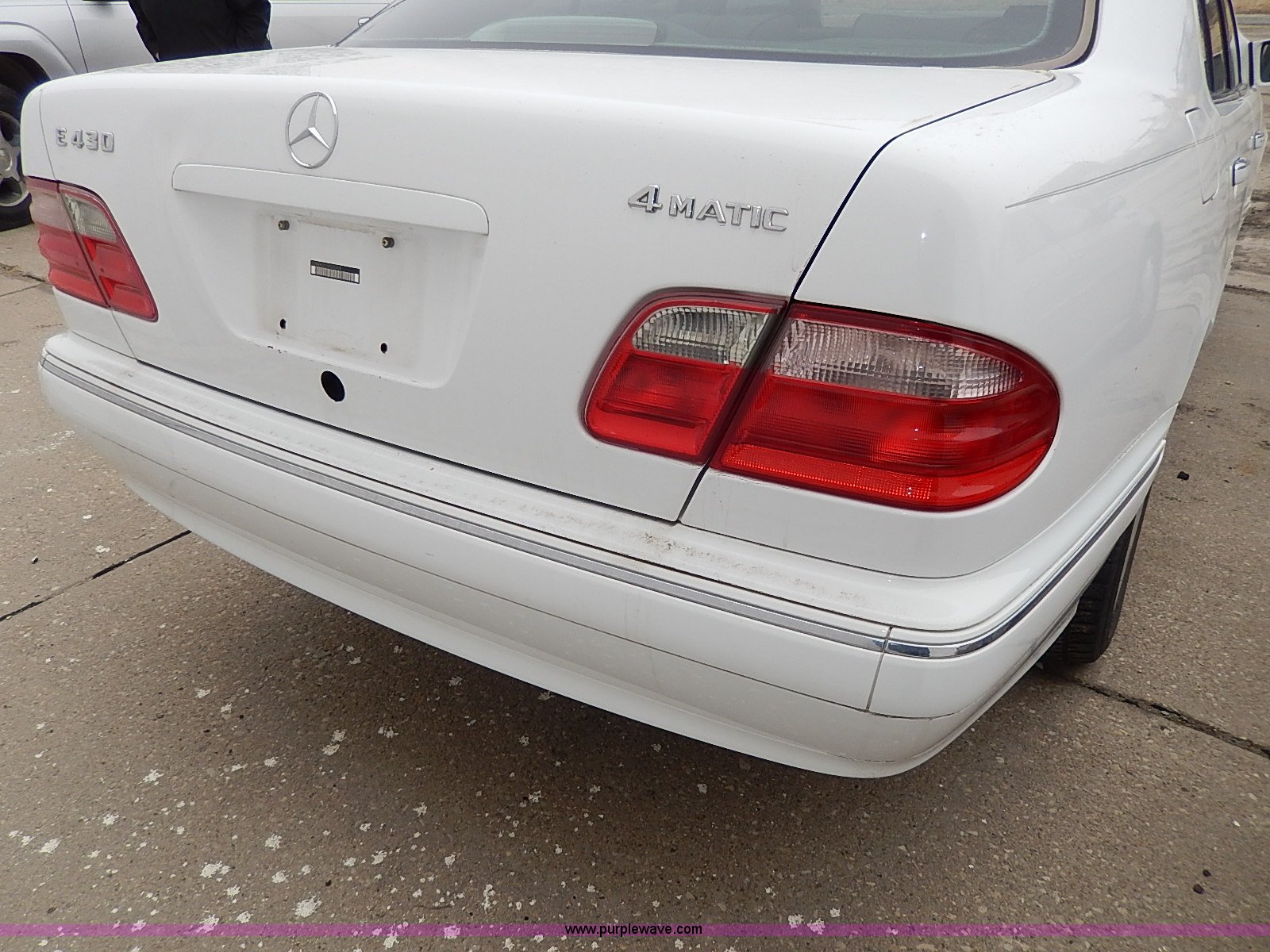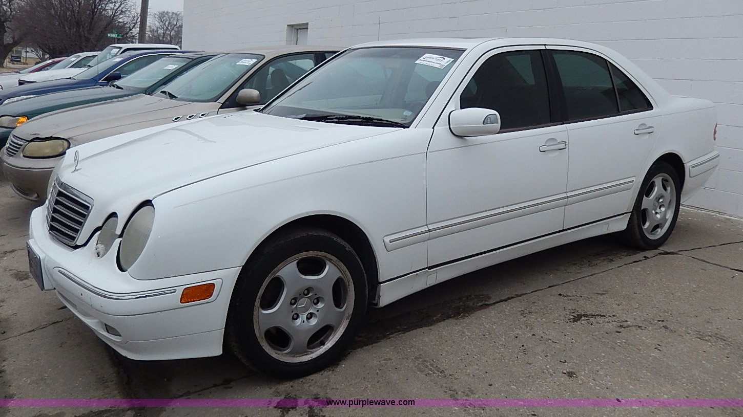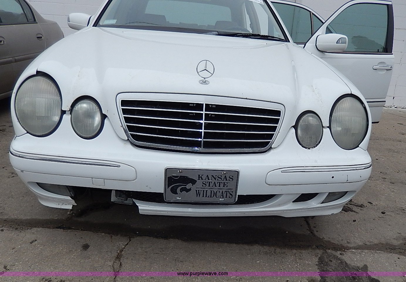 Purple Wave is selling a used Passenger Vehicle in Kansas. This item is a 2000 Mercedes Benz E430 with the following: Unknown miles on odometer, 4.3L V8 SOHC 24V gas engine, Automatic transmission, AC and Heat, Cruise, AM/FM/CD/cassette, Power window locks, mirrors, and seats, Heated seats, Leather interior, Moonroof, 235/45ZR17 tires, Battery dead, Dashboard will not light up, Paint peeling, Rear window defrost, Driver's side mirror cracked, Cosmetic damage to front fender