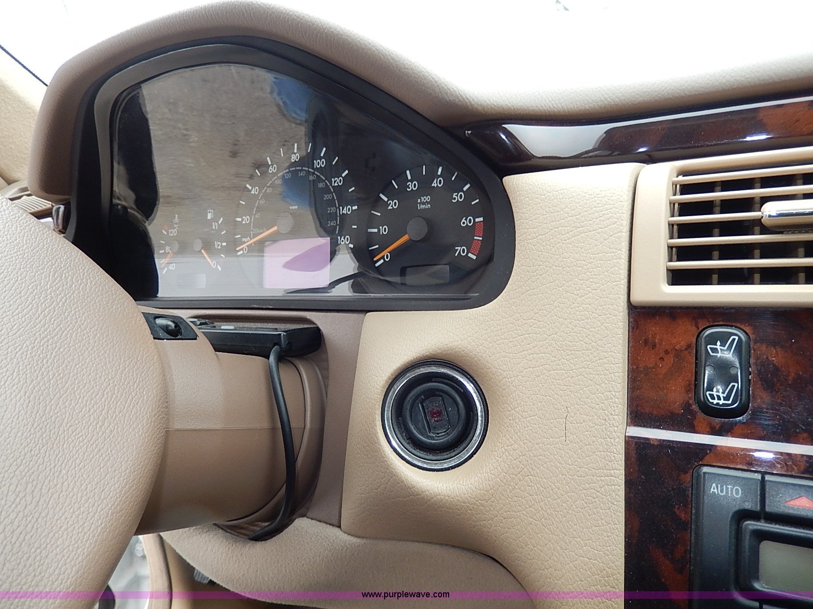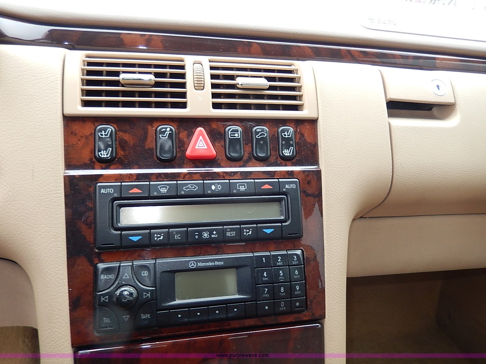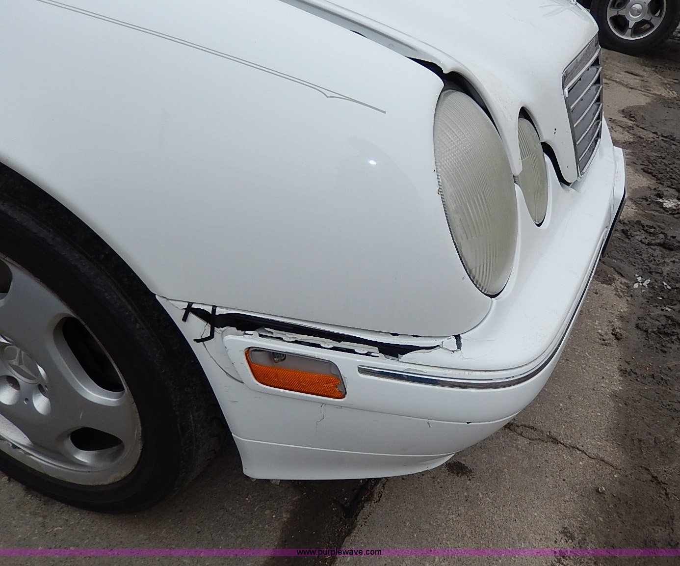 Purple Wave is selling a used Passenger Vehicle in Kansas. This item is a 2000 Mercedes Benz E430 with the following: Unknown miles on odometer, 4.3L V8 SOHC 24V gas engine, Automatic transmission, AC and Heat, Cruise, AM/FM/CD/cassette, Power window locks, mirrors, and seats, Heated seats, Leather interior, Moonroof, 235/45ZR17 tires, Battery dead, Dashboard will not light up, Paint peeling, Rear window defrost, Driver's side mirror cracked, Cosmetic damage to front fender