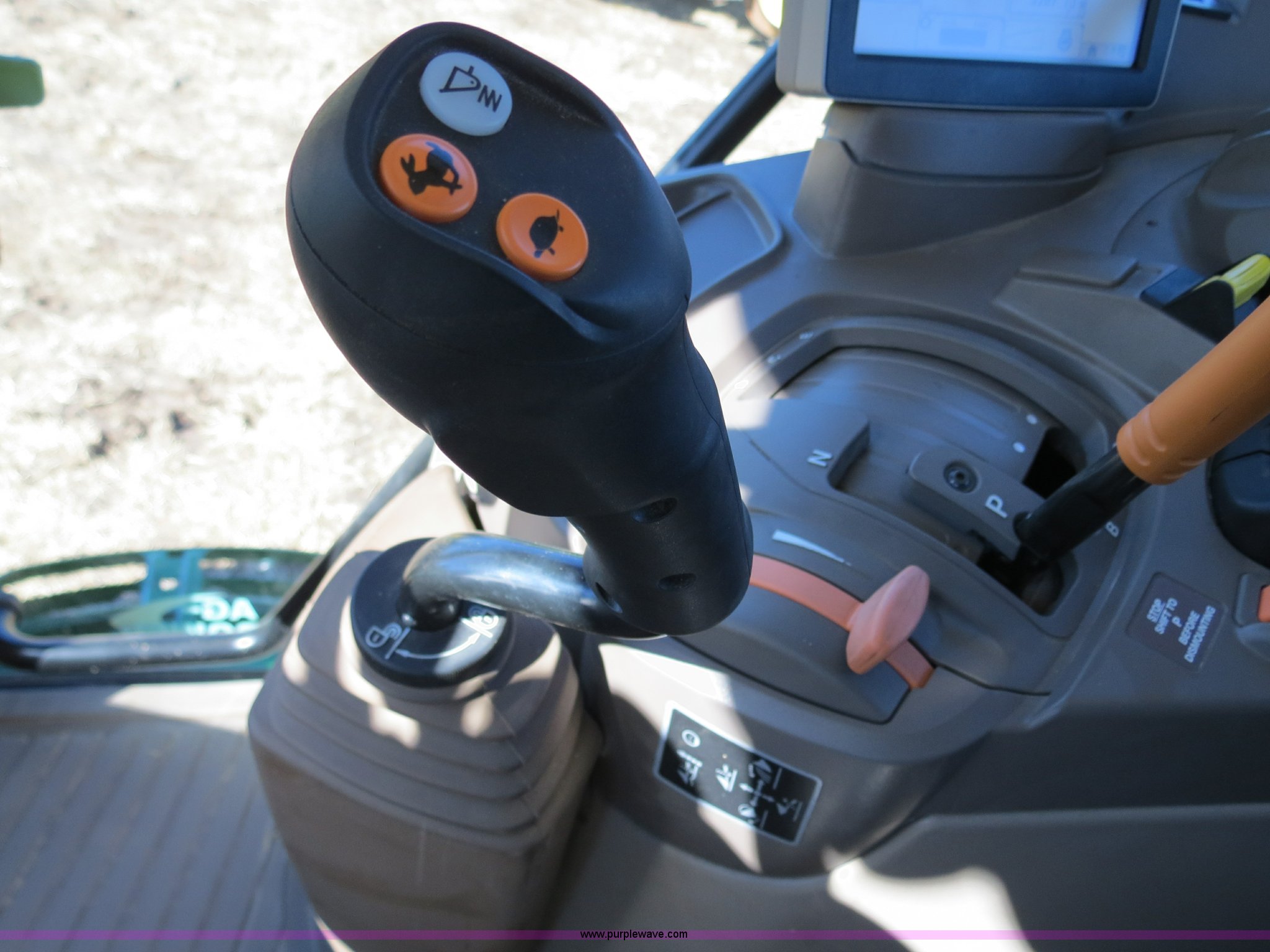 Purple Wave is selling a used Tractor in Missouri. This item is a 2012 John Deere 6125R MFWD tractor with the following: 285 hours on meter, John Deere 4045HL495 four cylinder turbo diesel engine, 125 HP, Block heater, AutoQuad PLUS transmission, 24F-24R gears, Left hand reverser, Differential lock, AC and heat, AM/FM/CD/XM/bluetooth, Air suspension seat, Instructor's seat, Tilt steering wheel, Foot throttle, Sun visor, GreenStar 3 Command Center, 2012 John Deere H340 loader, 87"W bucket, Grapple, Euro-style quick attach, Joystick controls, Serial 1P0H340XPCD001749, Three point, Draw bar, Auxiliary outlet, 540E/1000 PTO, Loader quick attach, (3) rear hydraulic remotes, Front grill guard, Beacon light, Can bus electrical outlet, Rear three point and PTO control, Front fenders, Triple link suspension, Michelin AgriRib Radial X 16.9R24 front tires, Michelin AgriRib Radial X 18.4R38 rear tires, Operators manual, GreenStar 2, starfire, and harness selling separate, Moisture monitor and CB will be removed, Bale monitor will be removed, Stored inside, Warranty good till June 2015, Serial 1L06125RCCK725370