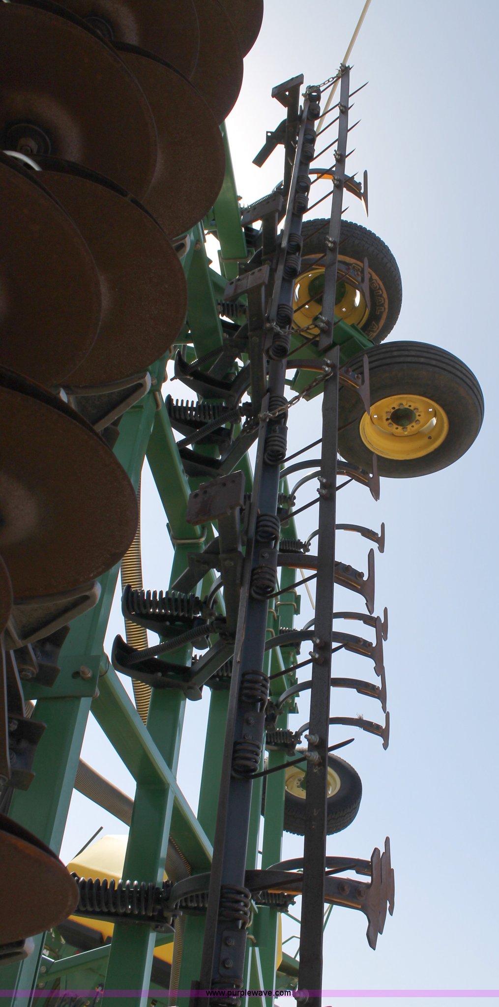 Purple Wave is selling a used Air Seeder in Oklahoma. This item is a 2002 John Deere 1900 air seeding cart with John Deere 730 air drill with the following: John Deere 1900 air cart, Single fan blower, (6) delivery tubes, Double seed hoppers, 270 bu. total hopper capacity, 120 and 150 bu. capacity, Hydraulic driven fill auger, Pull behind middle cart, 28L-27 tires, John Deere 730 45' air disk drill, Double disk seed delivery, Spring loading chisels, Pull behind air seed cart, Double disk, Press wheels, Single bar drag harrow, 13.5" disks, 7.5" disk spacing, Walking tandem axles, 30x9.50R15Lt tires, Serial A01900T695102