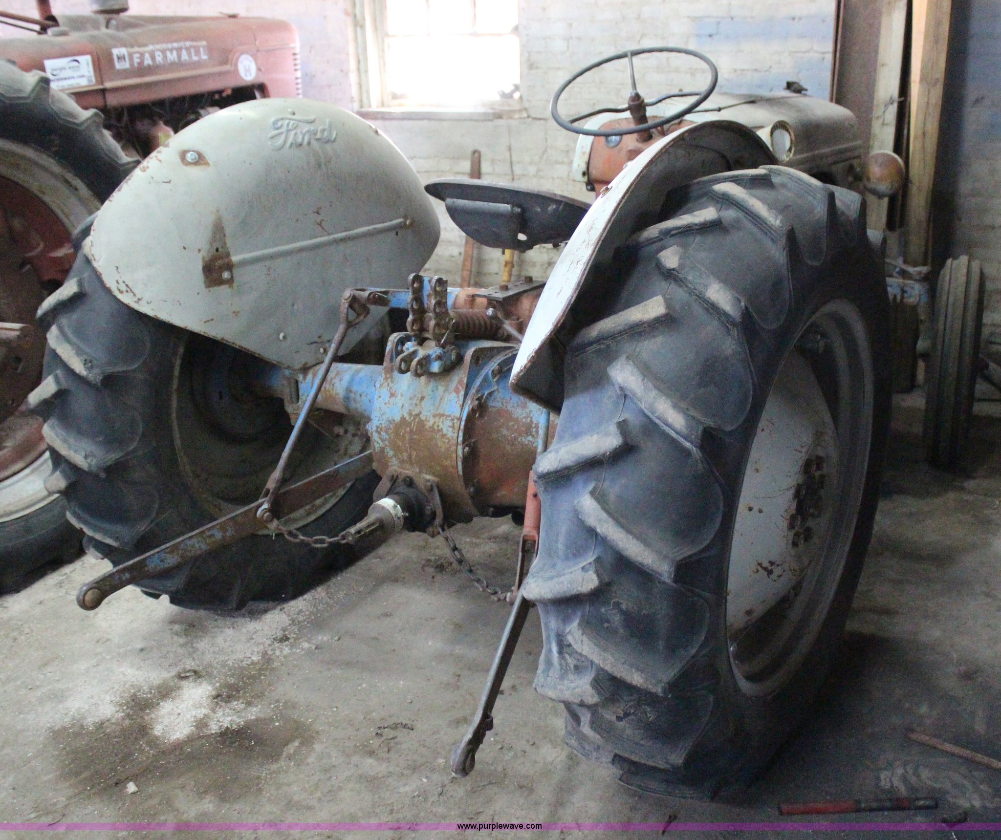Purple Wave is selling a used Tractor in Kansas. This item is a 1952 Ford 8N tractor with the following: 2.0L four cylinder gas engine, 27 HP, Sherman four speed transmission, 540 PTO, Three point, 6.00-16 front tires, 12.4-28 rear tires, Serial 490013