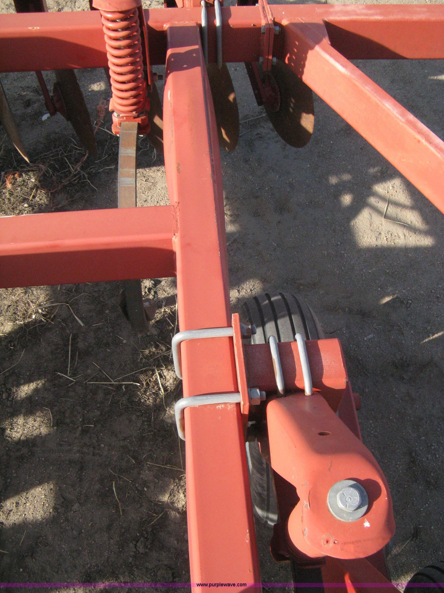 Purple Wave is selling a used Disk Ripper in Kansas. This item is a White 445 mulch tiller with the following: Spring assist down pressure on all tools, Tandem wheel lift wheels, Adjustable height pin hitch, Rear smoothing harrow, 9.5L-15 tires, Frame beams over lift wheels are bulging