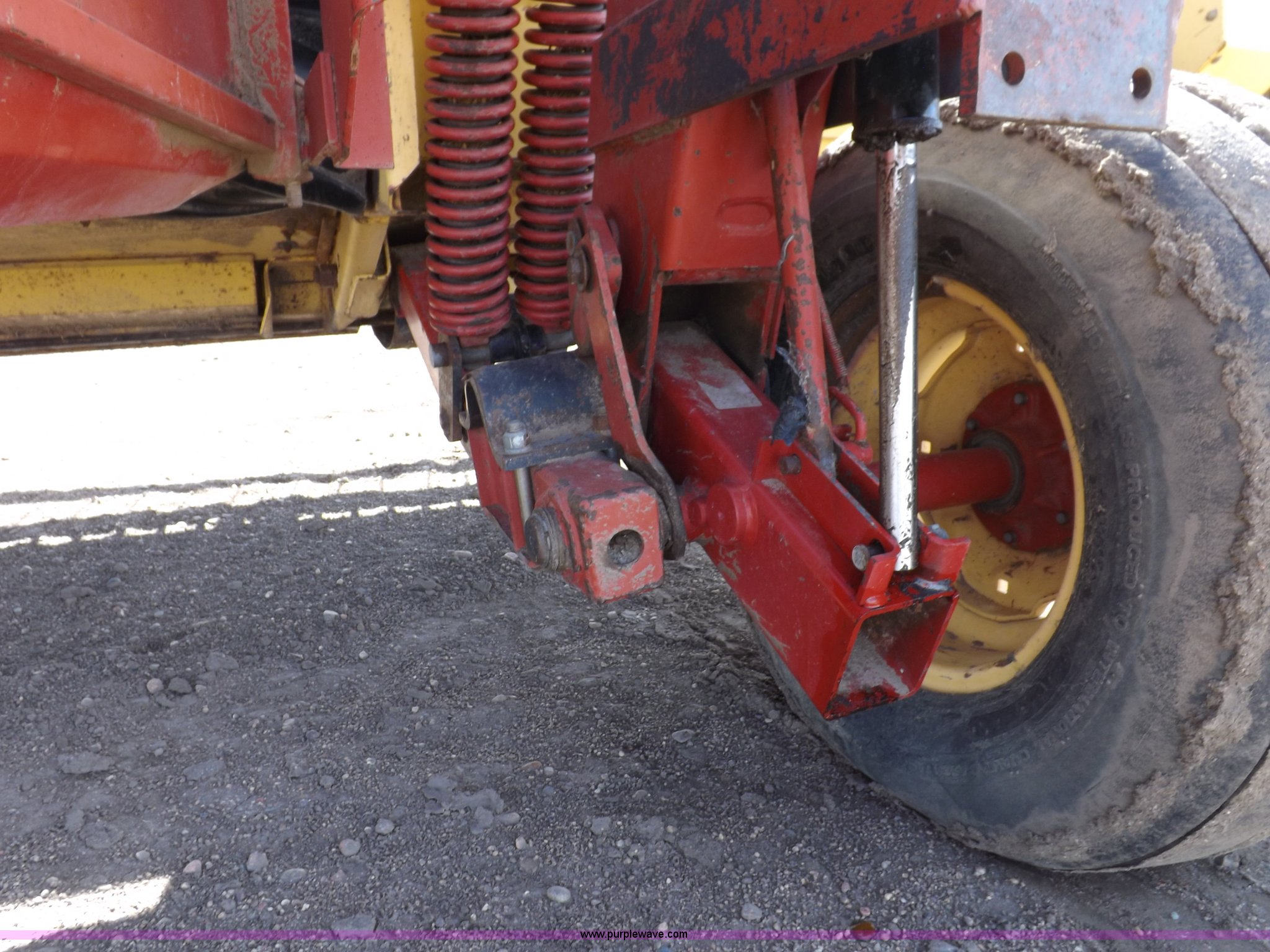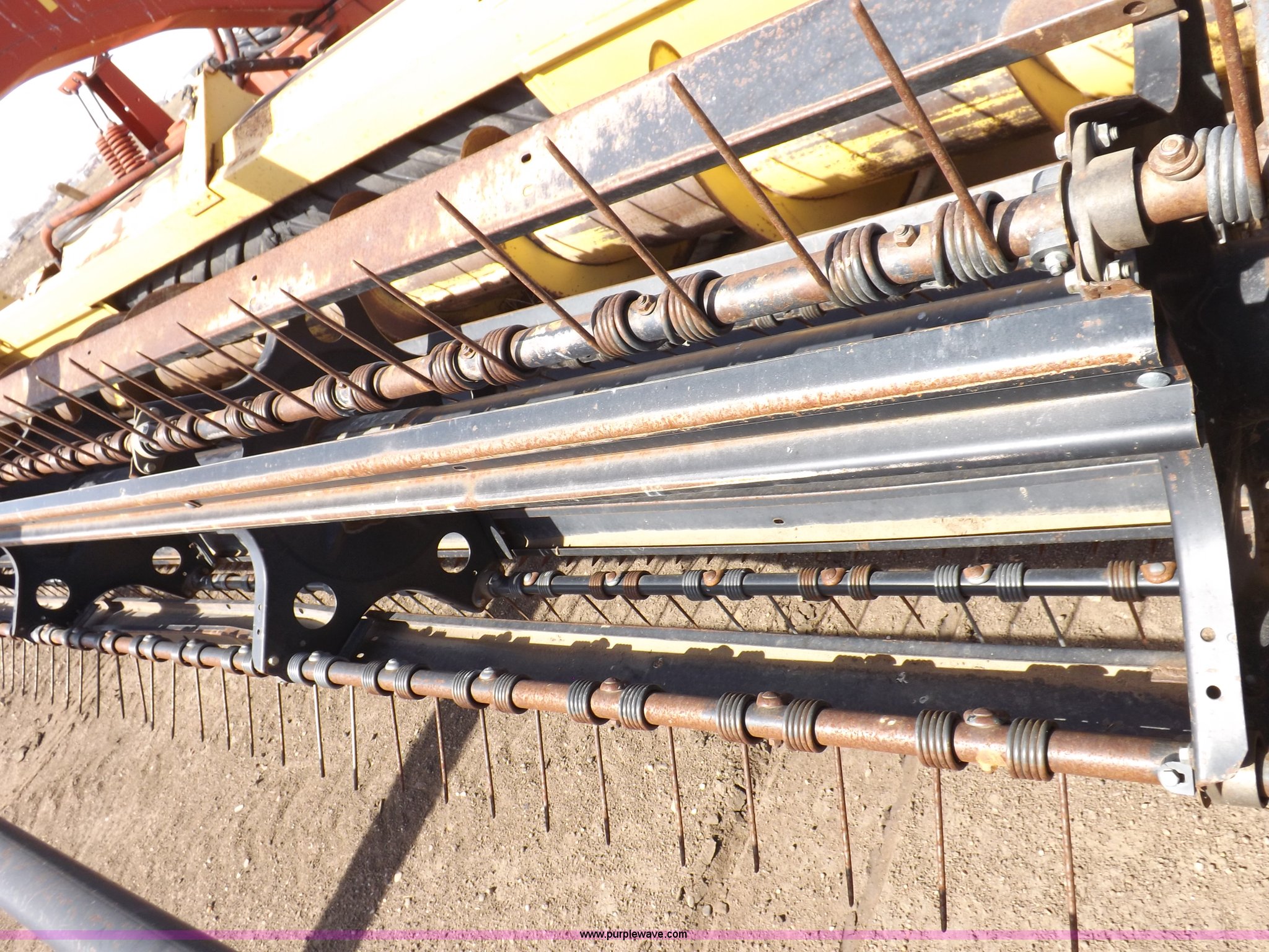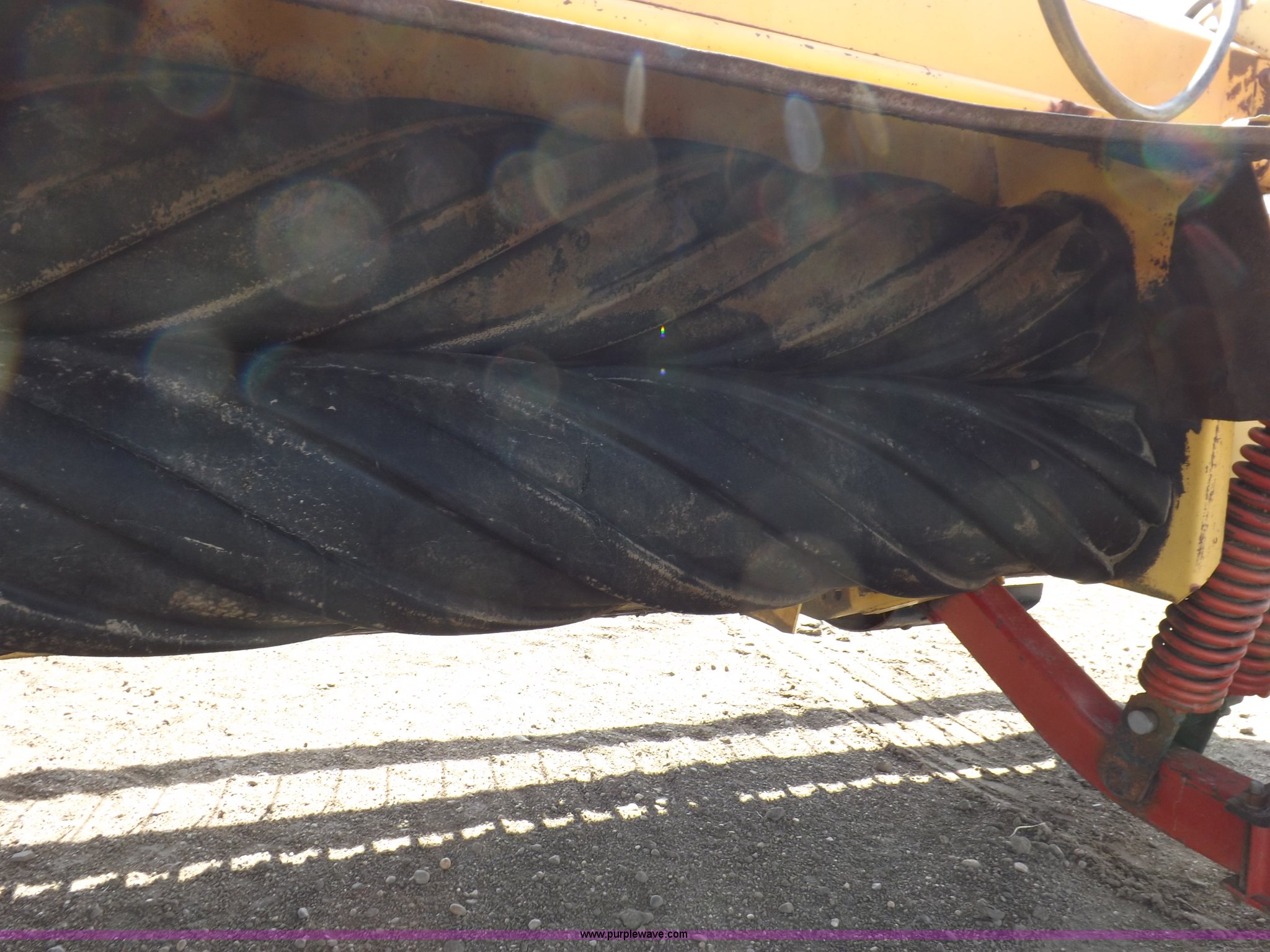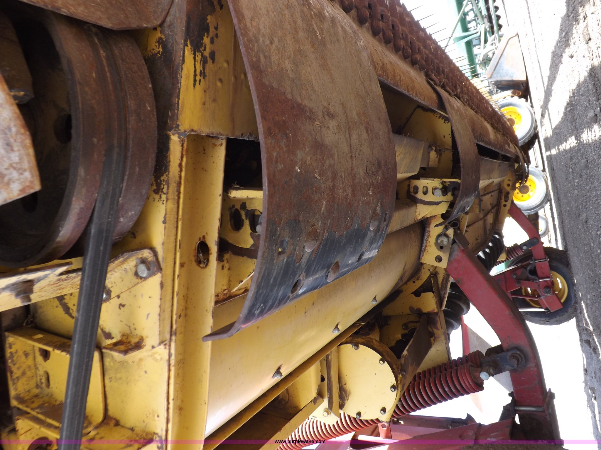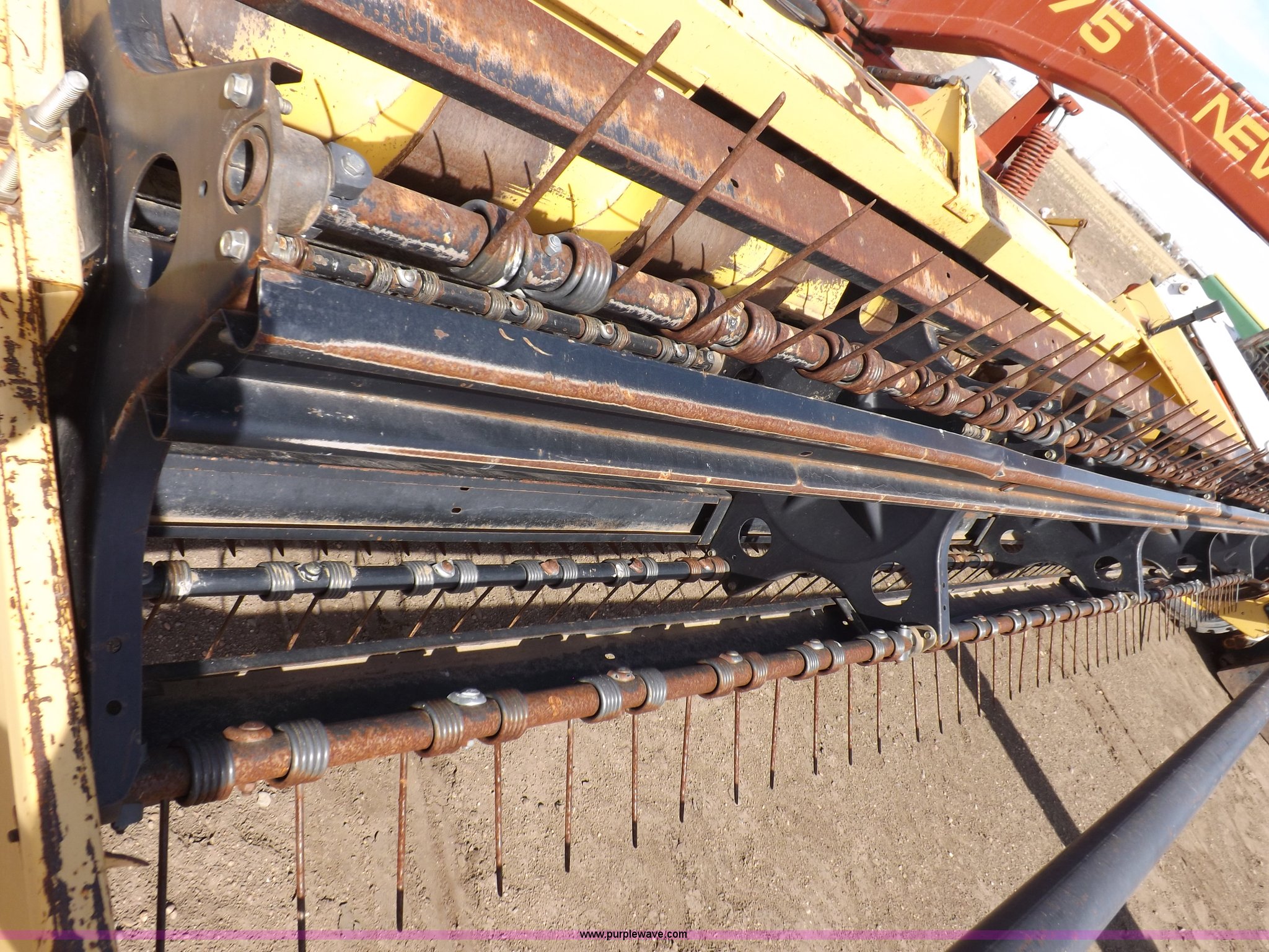 Purple Wave is selling a used Windrower Pull Type in Kansas. This item is a New Holland 1475 mower conditioner with the following: 18'W, Small 1000 PTO, Nylon crimpers, Nylon pan inserts, Adjustable windrow width, Pin hitch, Head model 2328, Serial 637418, Hitch model 1475, Serial 614935, 31x13.5-15 tires, Left tire low, Shrouds and covers bent and cracked, Hydraulic hose leak