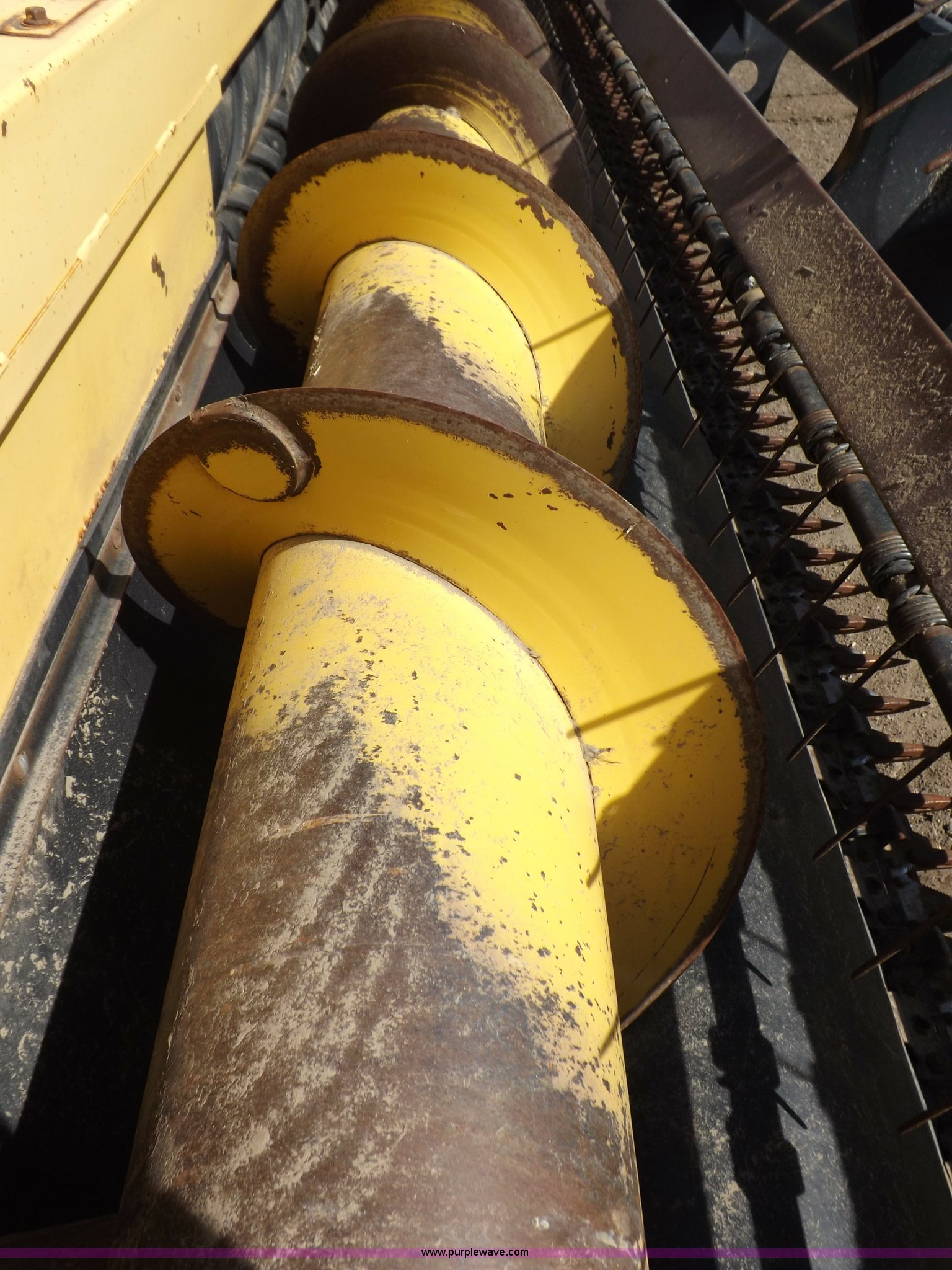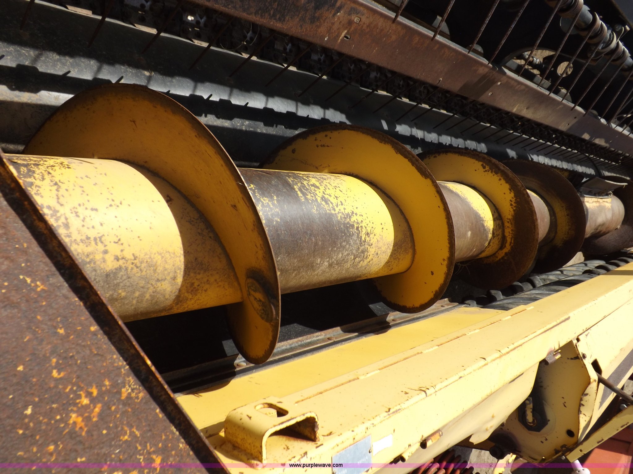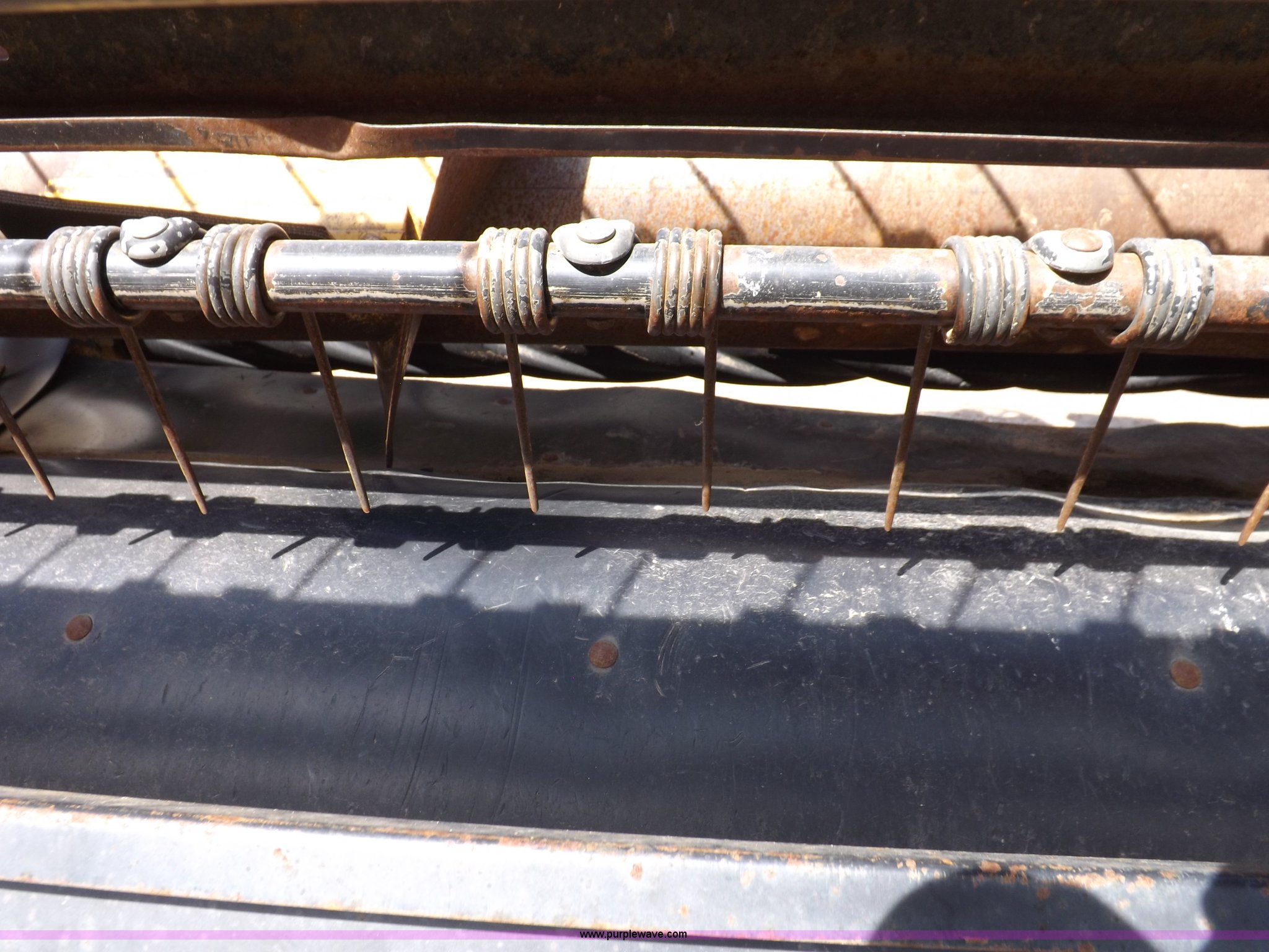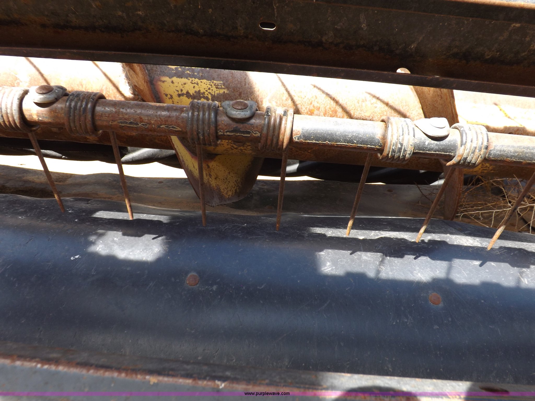 Purple Wave is selling a used Windrower Pull Type in Kansas. This item is a New Holland 1475 mower conditioner with the following: 18'W, Small 1000 PTO, Nylon crimpers, Nylon pan inserts, Adjustable windrow width, Pin hitch, Head model 2328, Serial 637418, Hitch model 1475, Serial 614935, 31x13.5-15 tires, Left tire low, Shrouds and covers bent and cracked, Hydraulic hose leak