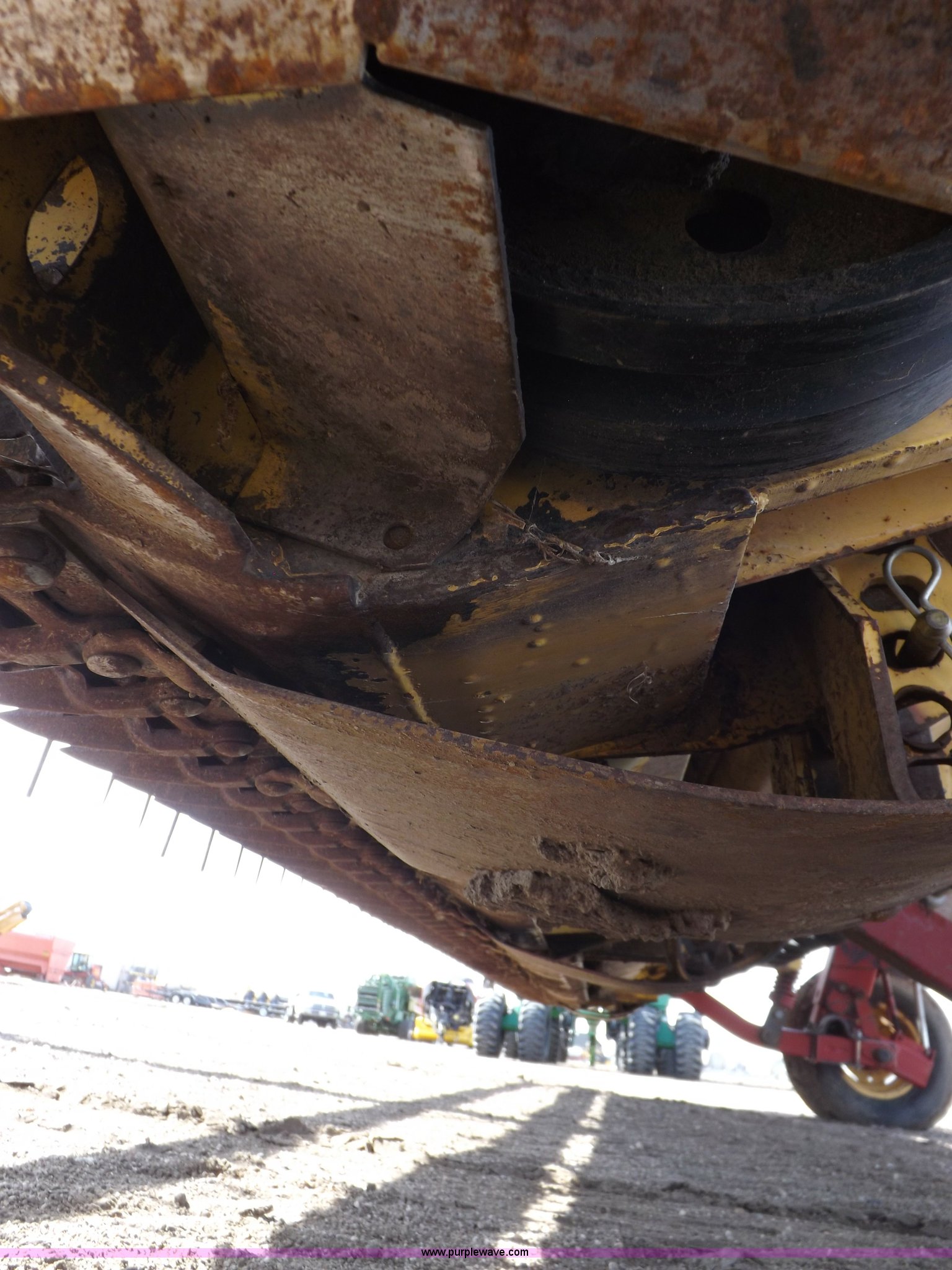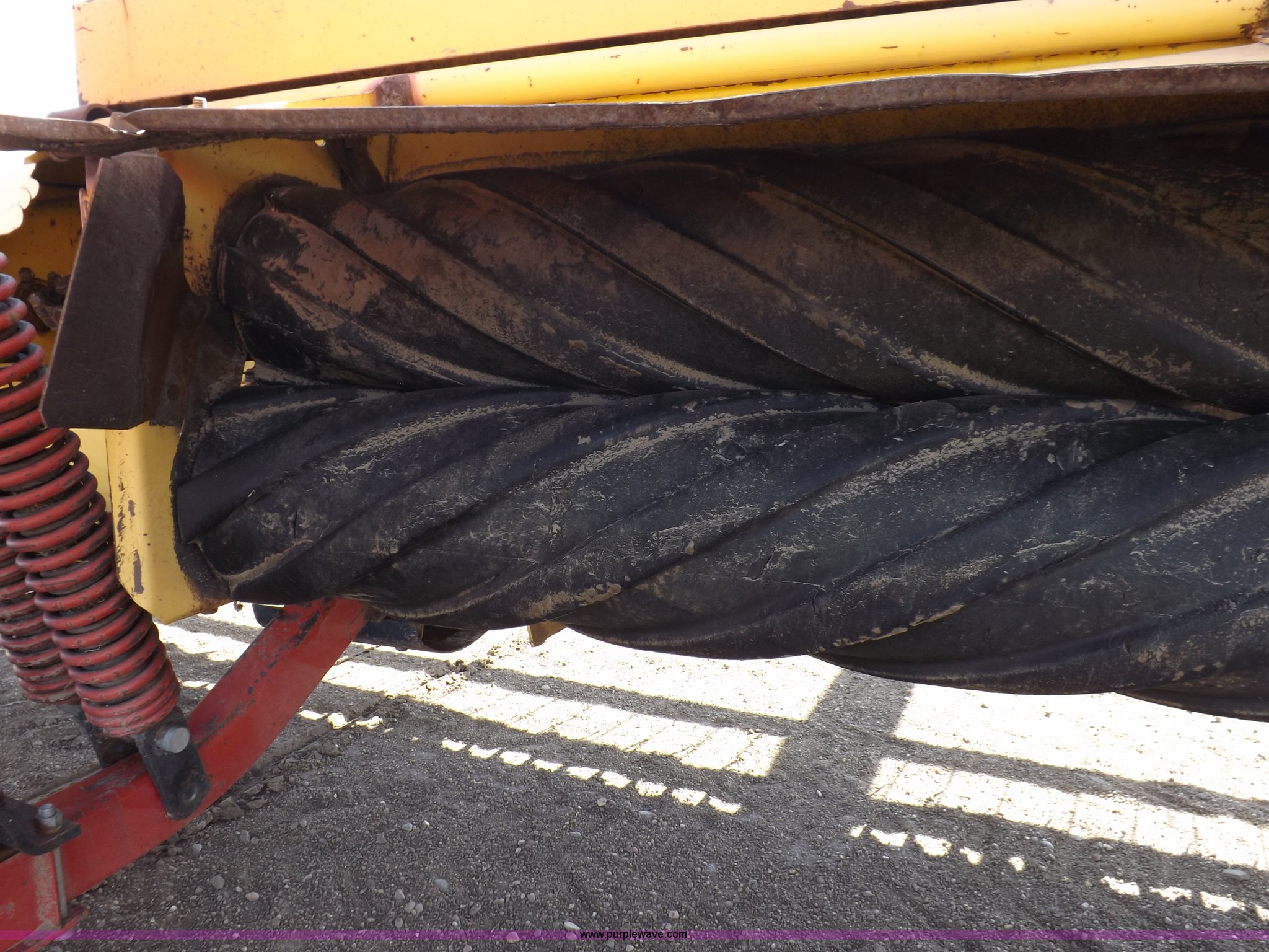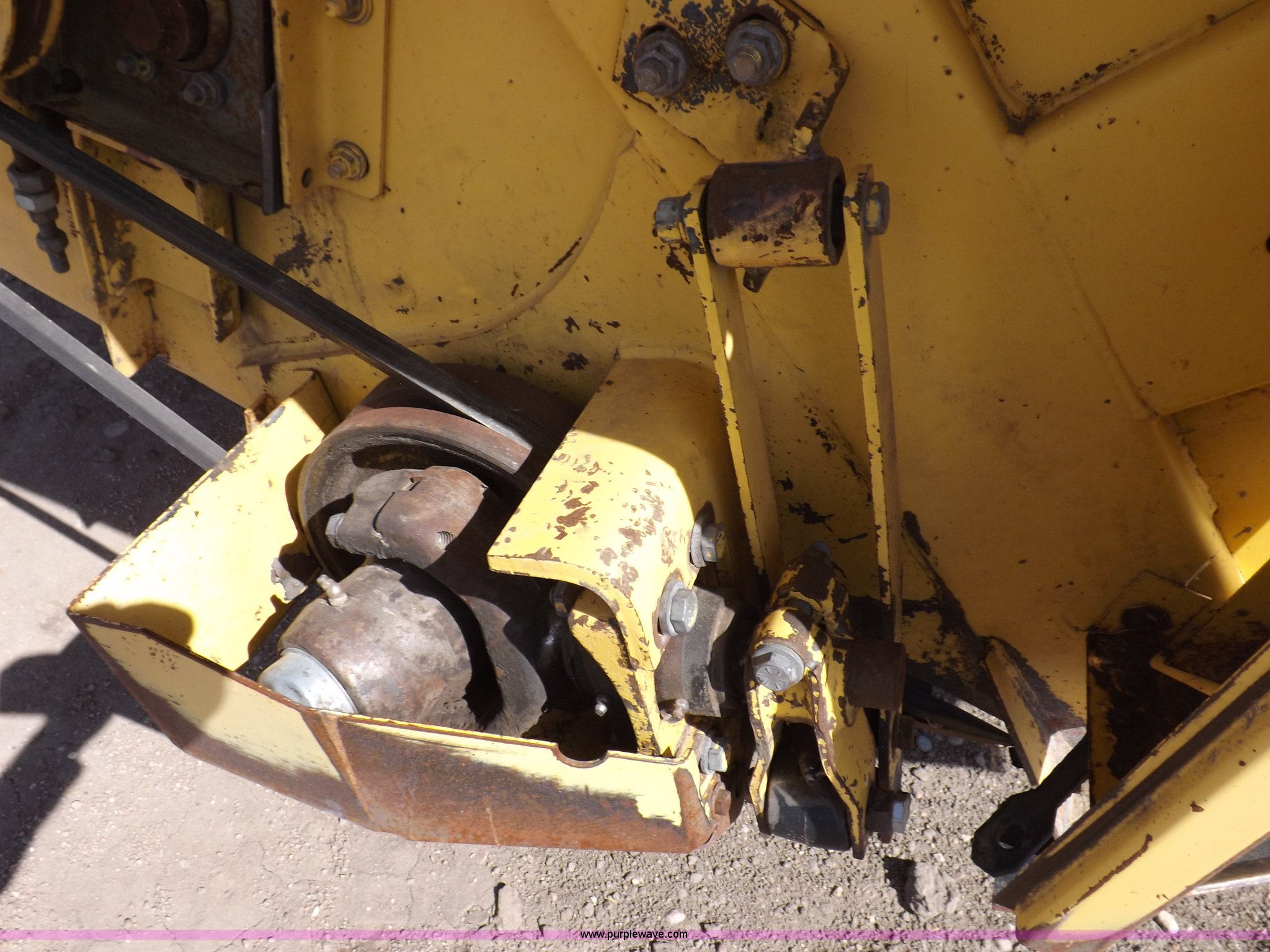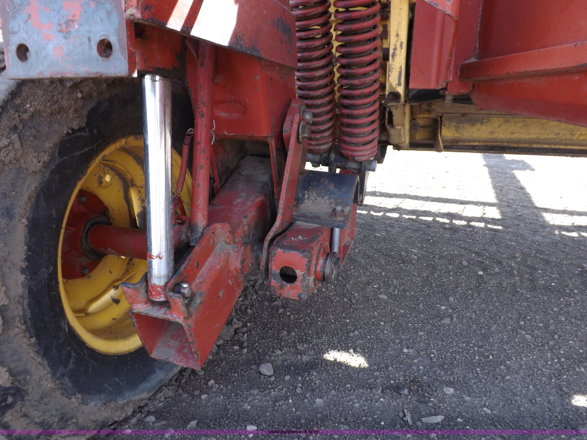 Purple Wave is selling a used Windrower Pull Type in Kansas. This item is a New Holland 1475 mower conditioner with the following: 18'W, Small 1000 PTO, Nylon crimpers, Nylon pan inserts, Adjustable windrow width, Pin hitch, Head model 2328, Serial 637418, Hitch model 1475, Serial 614935, 31x13.5-15 tires, Left tire low, Shrouds and covers bent and cracked, Hydraulic hose leak