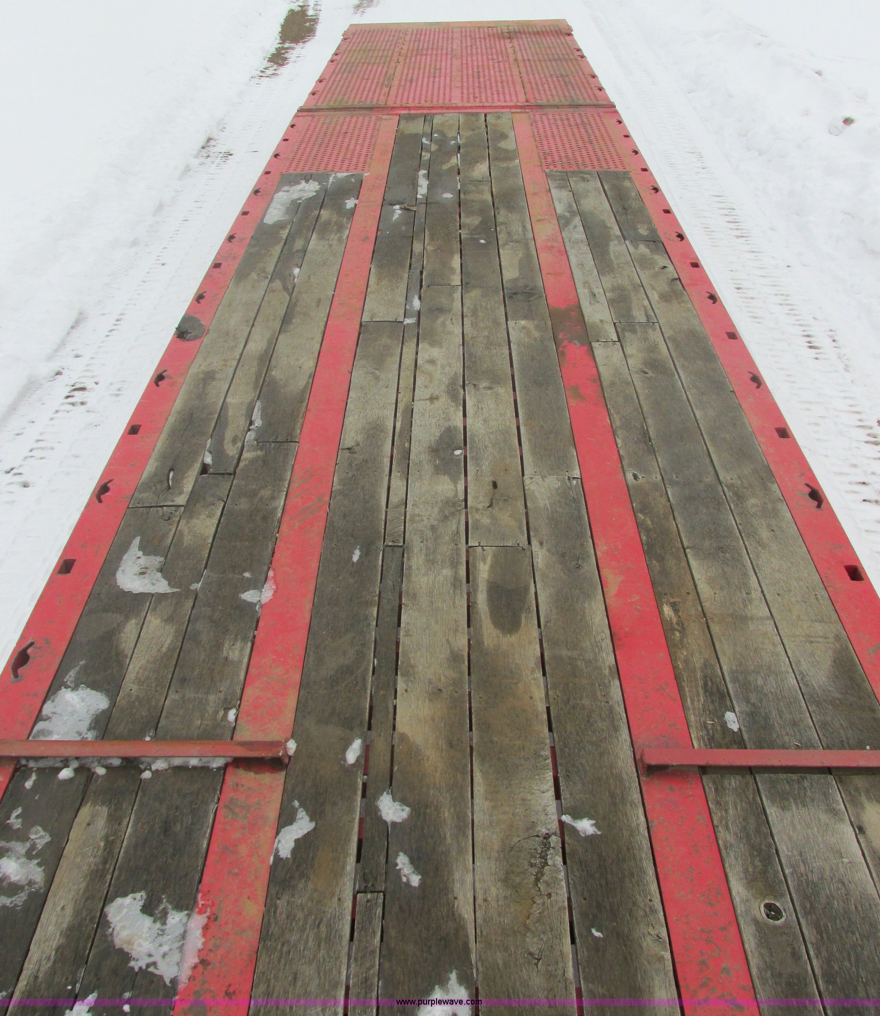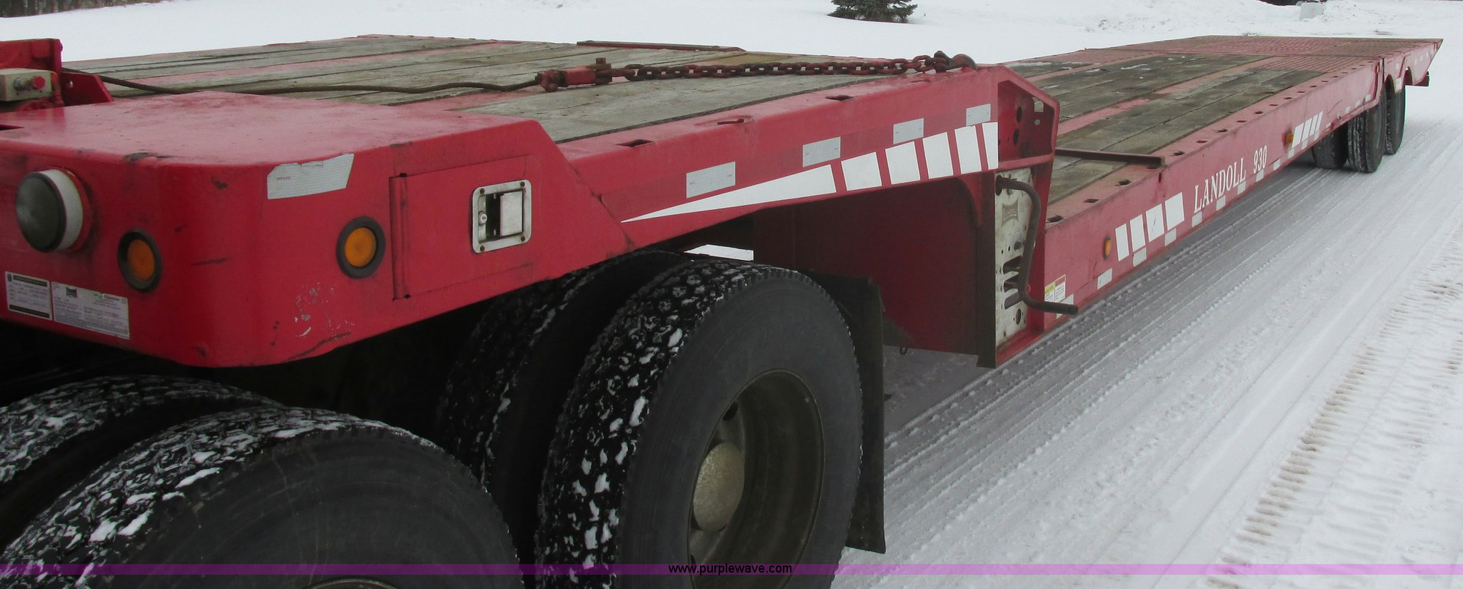 Purple Wave is selling a used Equip. Trailer in Minnesota. This item is a 2000 Landoll 930 Hydratail equipment trailer with the following: 26'L x 102"W main deck, 10.5'L top deck, 15'L hydratail deck, Wood and steel deck, Stake pockets, DP winch, 20,000 lbs capacity, (2) side toolboxes, Slide axle, 10R27.5HL tires, GVWR 86,300 lbs