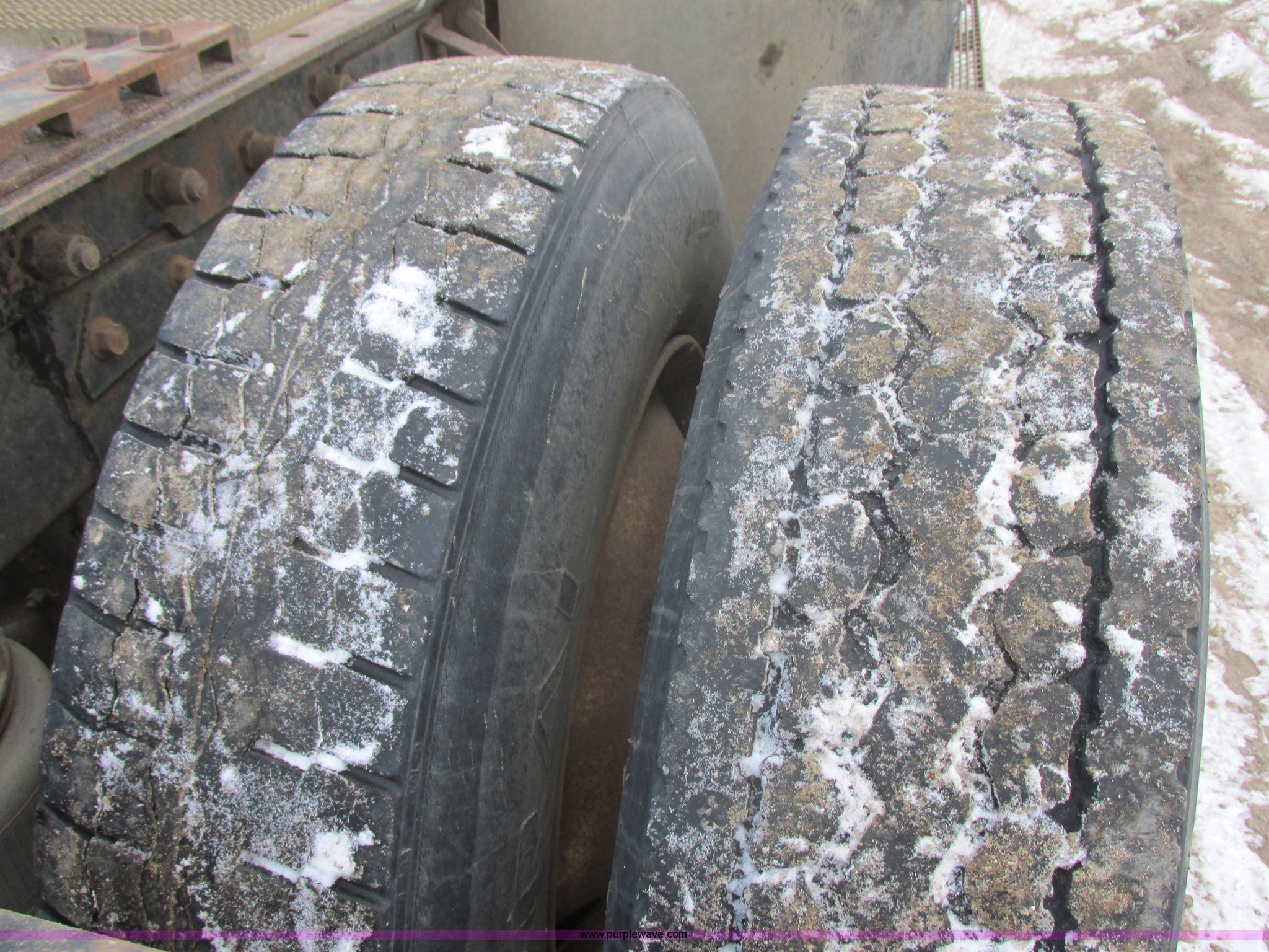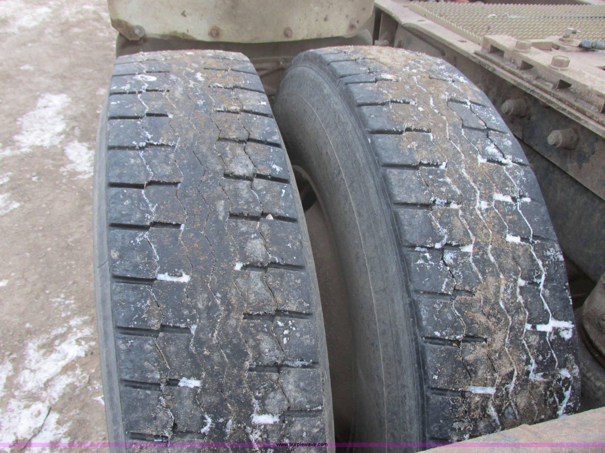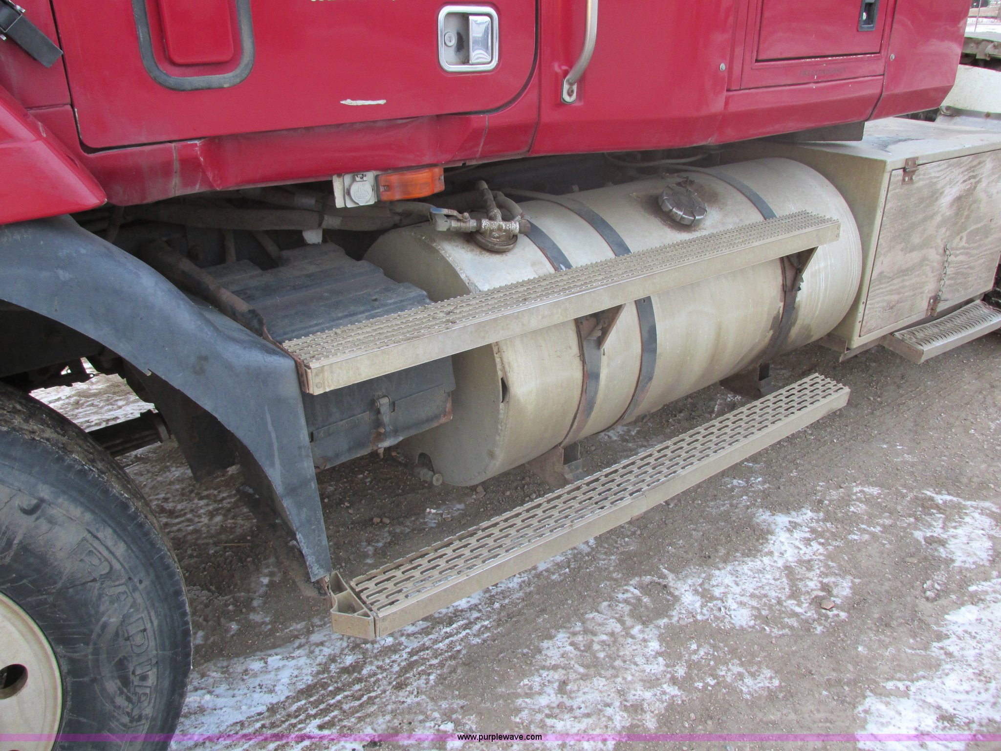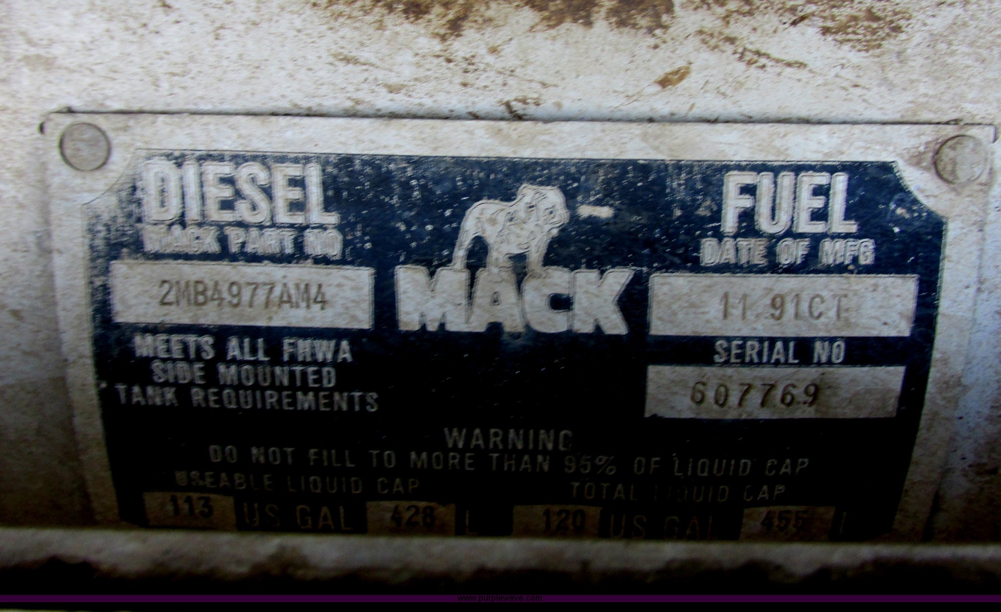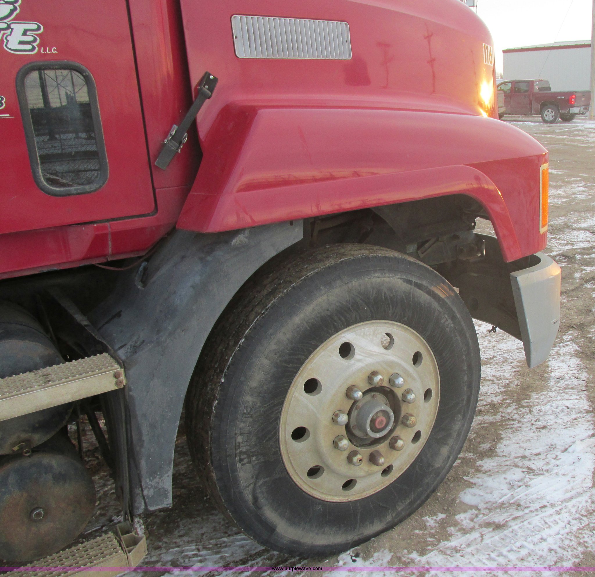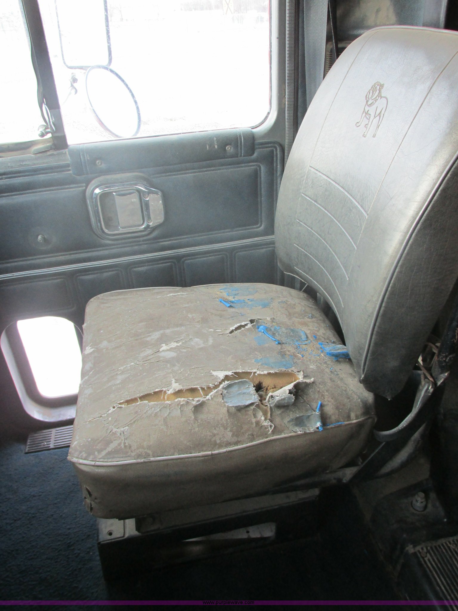 Purple Wave is selling a used Truck Tractor in South Dakota. This item is a 1992 Mack CH613 semi truck with the following: 949,820 miles on odometer, 24,807 hours on meter, Mack E7 12.0L L6 diesel engine, 350 HP, Eaton Road Ranger nine speed manual transmission, AC and heat, Tilt, AM/FM/CD, Passenger daylight door, Bostrom 915 air suspension seat, 36" sleeper, Storage, (2) toolboxes, 24" x 24" x 42", Steps, Visor, Block heater, Air slide fifth wheel, Dual 120 gallon fuel tanks, Dual exhaust stacks, Steel deck plate, Air suspension, Air brakes, Jake brake, Nut wheel covers, 208" wheelbase, 11R24.5 tires, GVWR 52,000 lbs, FAWR 12,000 lbs, IAWR 20,000 lbs, RAWR 20,000 lbs, Interior/exterior cosmetic damage, Passenger door does not seal tight, Passenger mirror broken, Seats ripped, Fenders missing, DOT certified in Feb. 2014