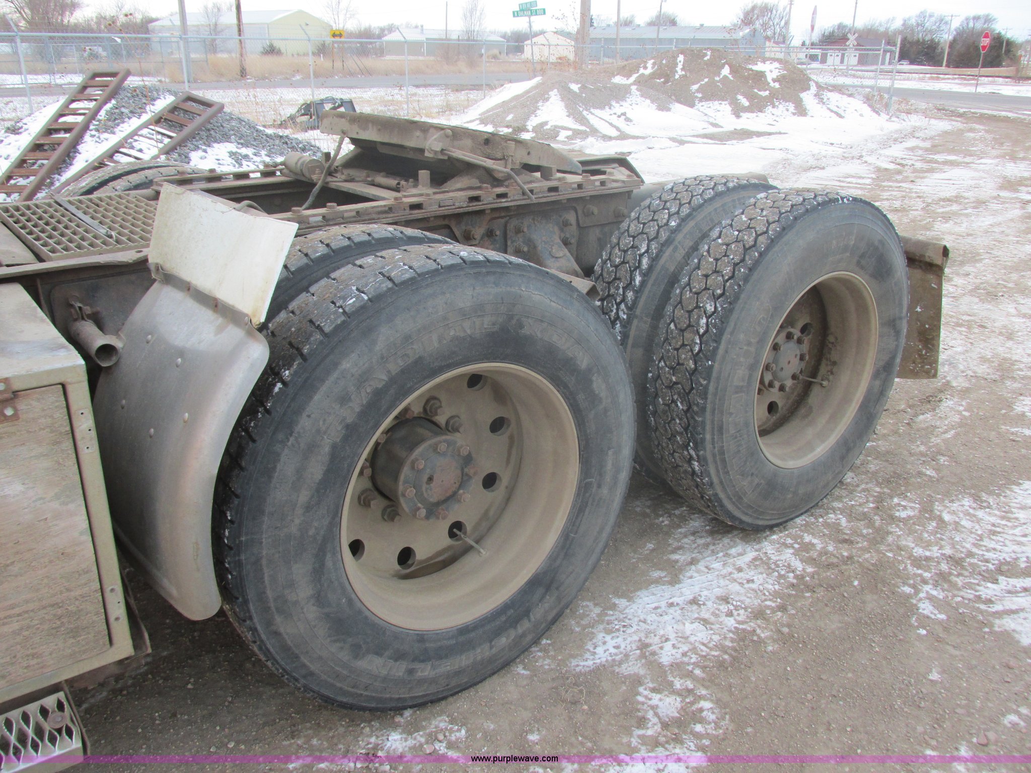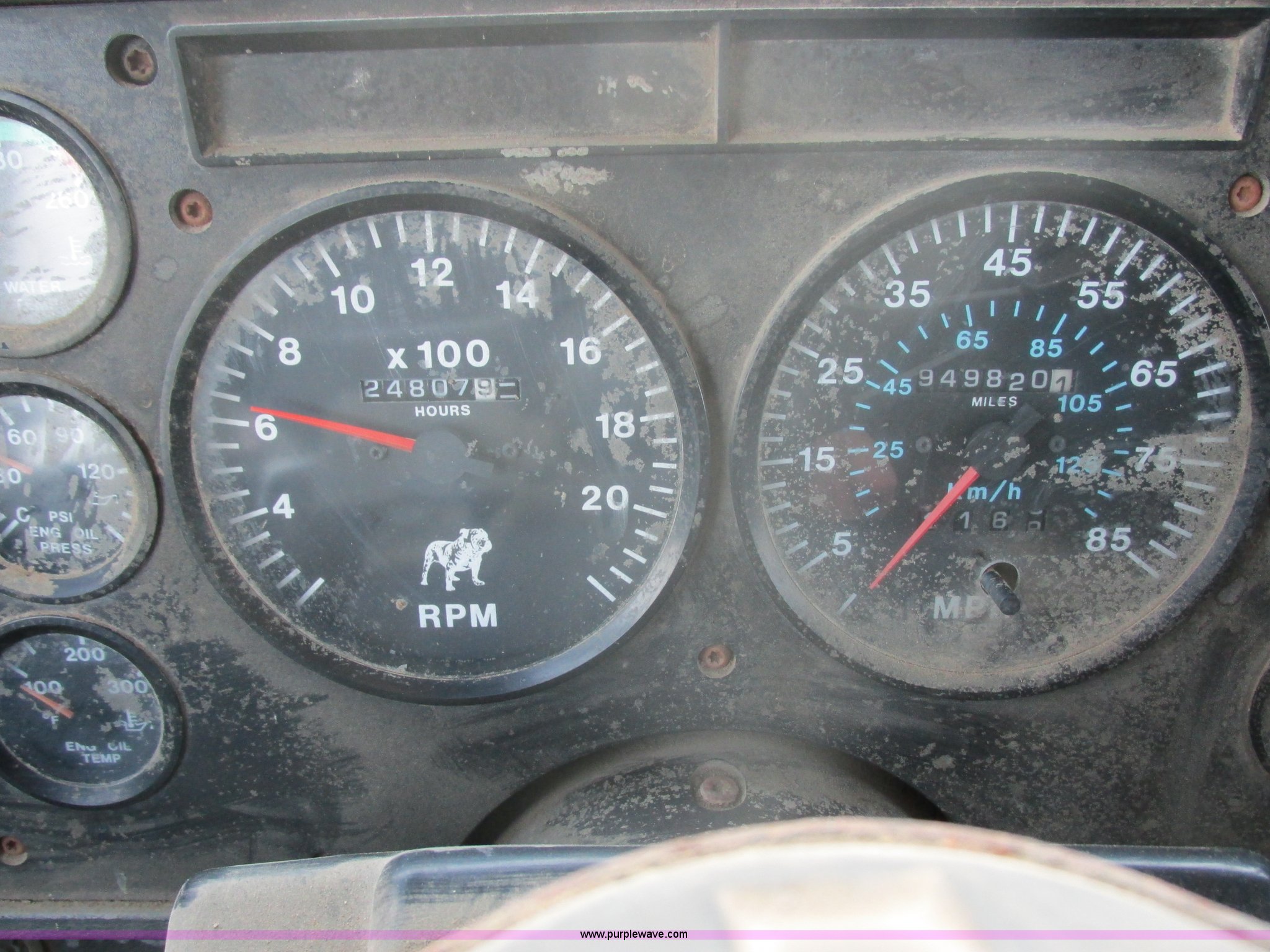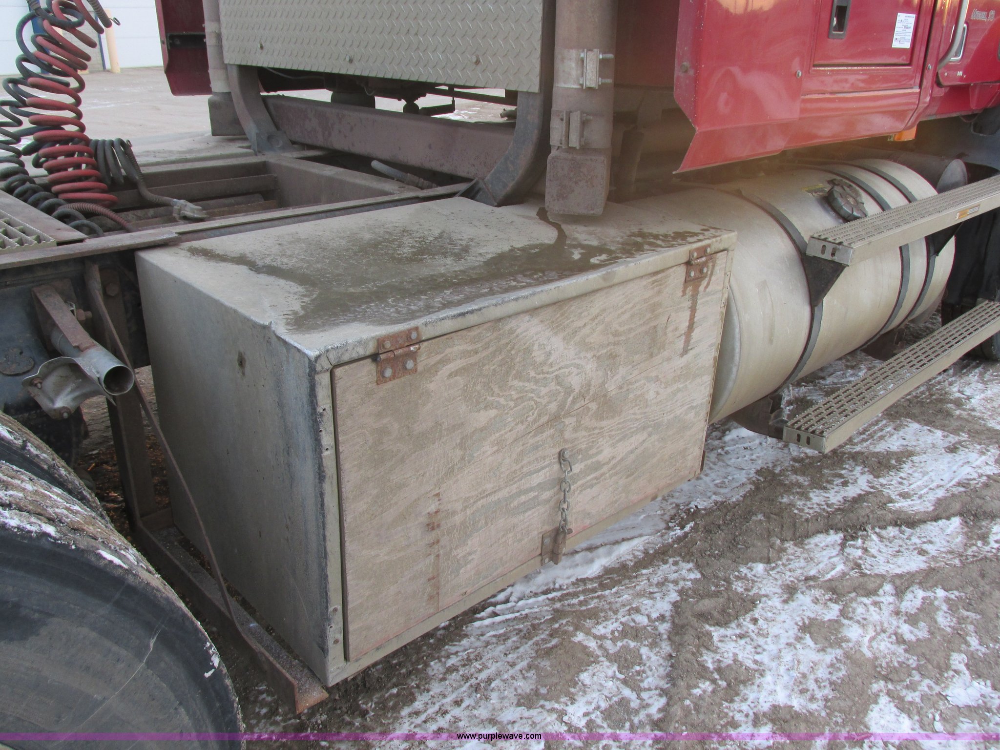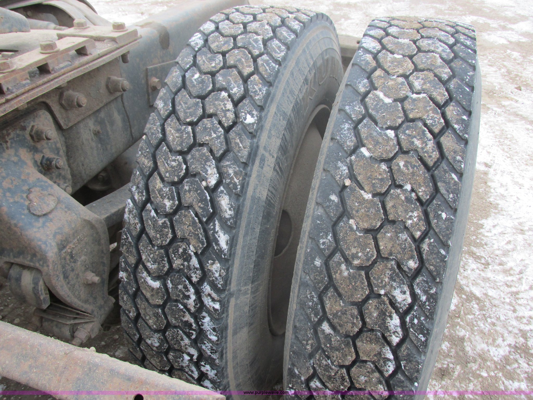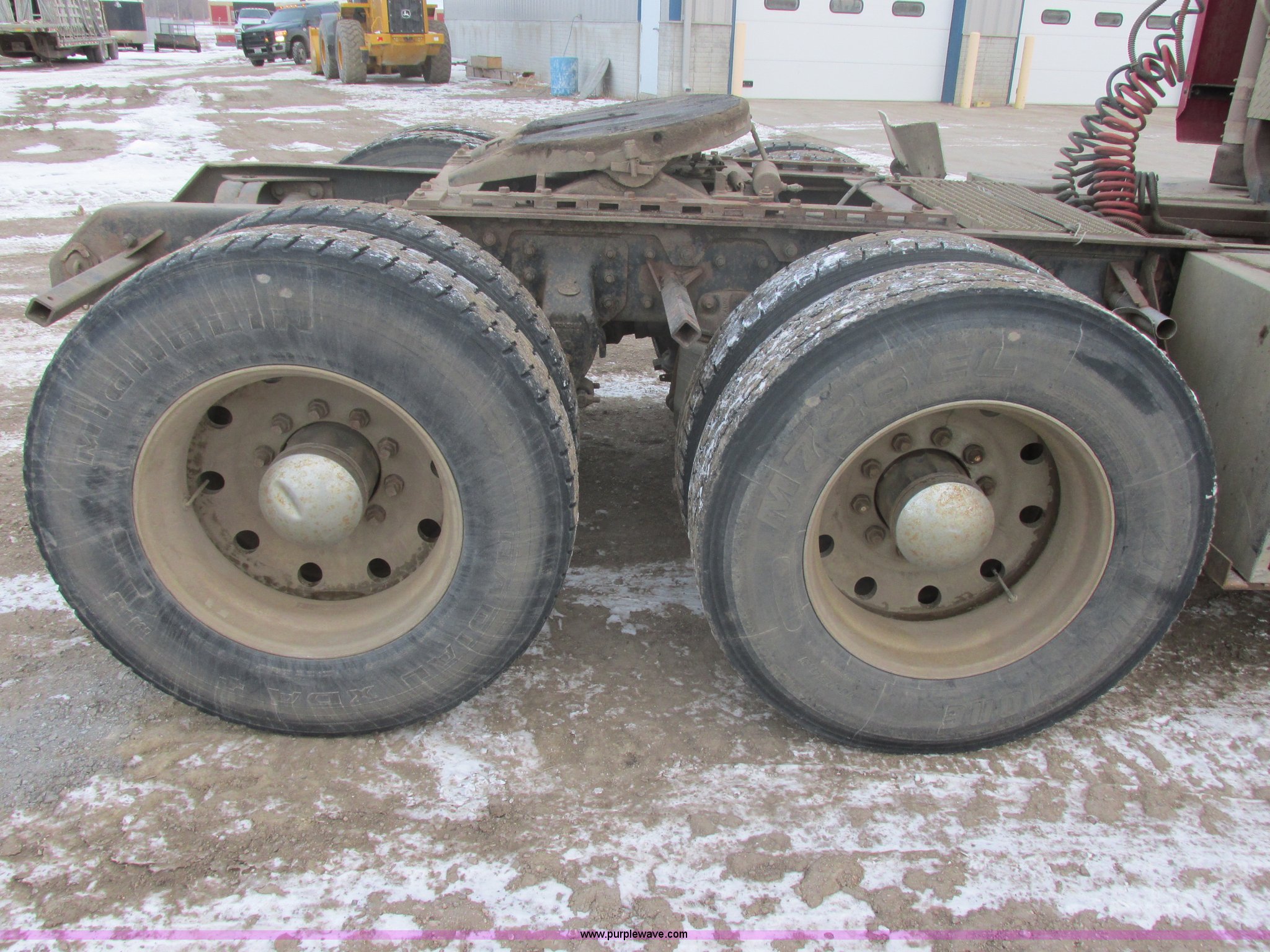 Purple Wave is selling a used Truck Tractor in South Dakota. This item is a 1992 Mack CH613 semi truck with the following: 949,820 miles on odometer, 24,807 hours on meter, Mack E7 12.0L L6 diesel engine, 350 HP, Eaton Road Ranger nine speed manual transmission, AC and heat, Tilt, AM/FM/CD, Passenger daylight door, Bostrom 915 air suspension seat, 36" sleeper, Storage, (2) toolboxes, 24" x 24" x 42", Steps, Visor, Block heater, Air slide fifth wheel, Dual 120 gallon fuel tanks, Dual exhaust stacks, Steel deck plate, Air suspension, Air brakes, Jake brake, Nut wheel covers, 208" wheelbase, 11R24.5 tires, GVWR 52,000 lbs, FAWR 12,000 lbs, IAWR 20,000 lbs, RAWR 20,000 lbs, Interior/exterior cosmetic damage, Passenger door does not seal tight, Passenger mirror broken, Seats ripped, Fenders missing, DOT certified in Feb. 2014
