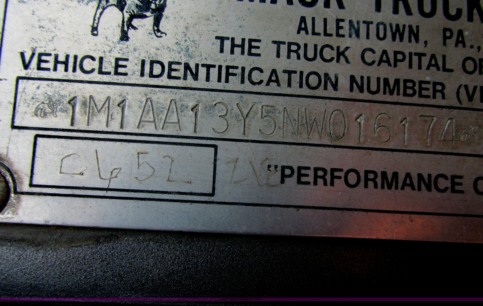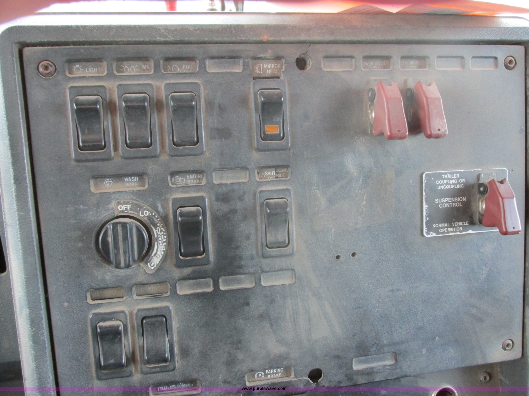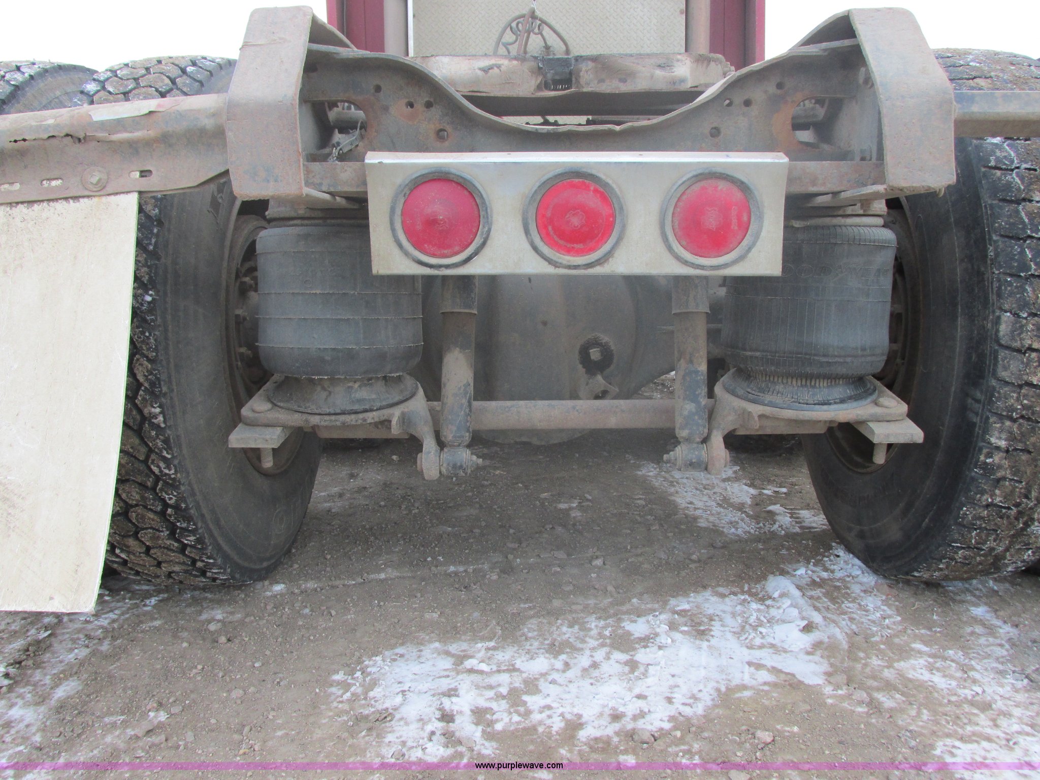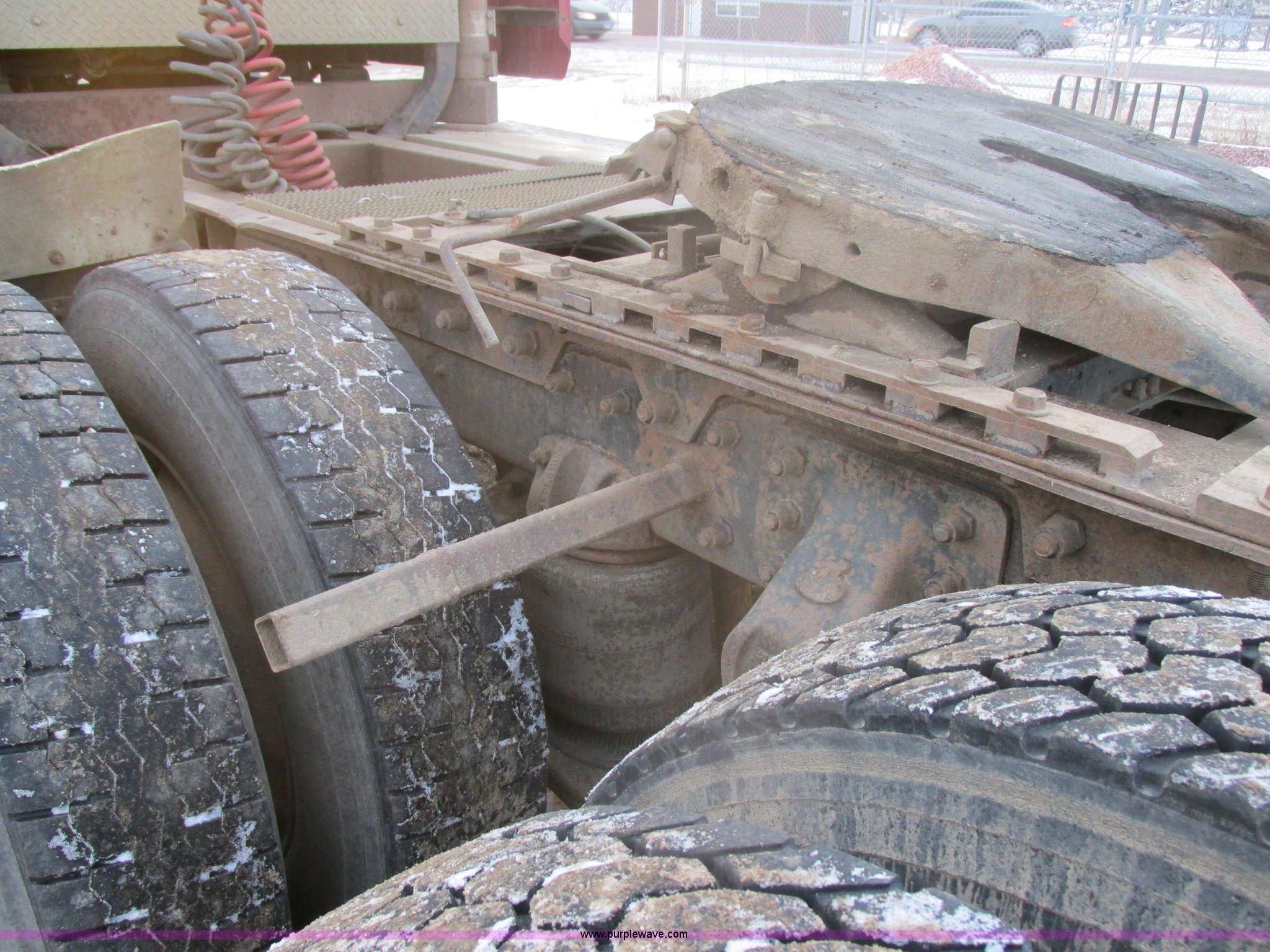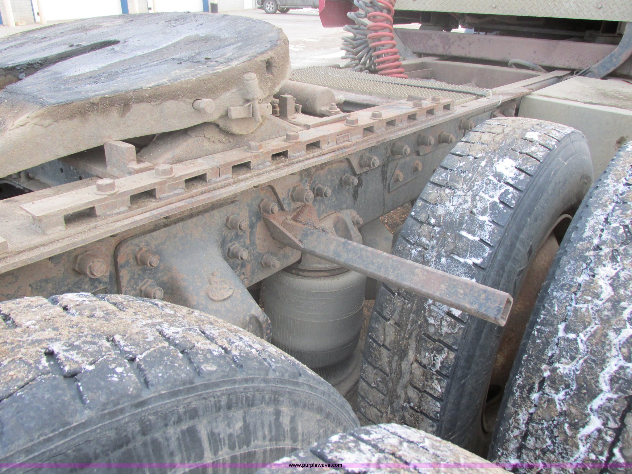 Purple Wave is selling a used Truck Tractor in South Dakota. This item is a 1992 Mack CH613 semi truck with the following: 949,820 miles on odometer, 24,807 hours on meter, Mack E7 12.0L L6 diesel engine, 350 HP, Eaton Road Ranger nine speed manual transmission, AC and heat, Tilt, AM/FM/CD, Passenger daylight door, Bostrom 915 air suspension seat, 36" sleeper, Storage, (2) toolboxes, 24" x 24" x 42", Steps, Visor, Block heater, Air slide fifth wheel, Dual 120 gallon fuel tanks, Dual exhaust stacks, Steel deck plate, Air suspension, Air brakes, Jake brake, Nut wheel covers, 208" wheelbase, 11R24.5 tires, GVWR 52,000 lbs, FAWR 12,000 lbs, IAWR 20,000 lbs, RAWR 20,000 lbs, Interior/exterior cosmetic damage, Passenger door does not seal tight, Passenger mirror broken, Seats ripped, Fenders missing, DOT certified in Feb. 2014