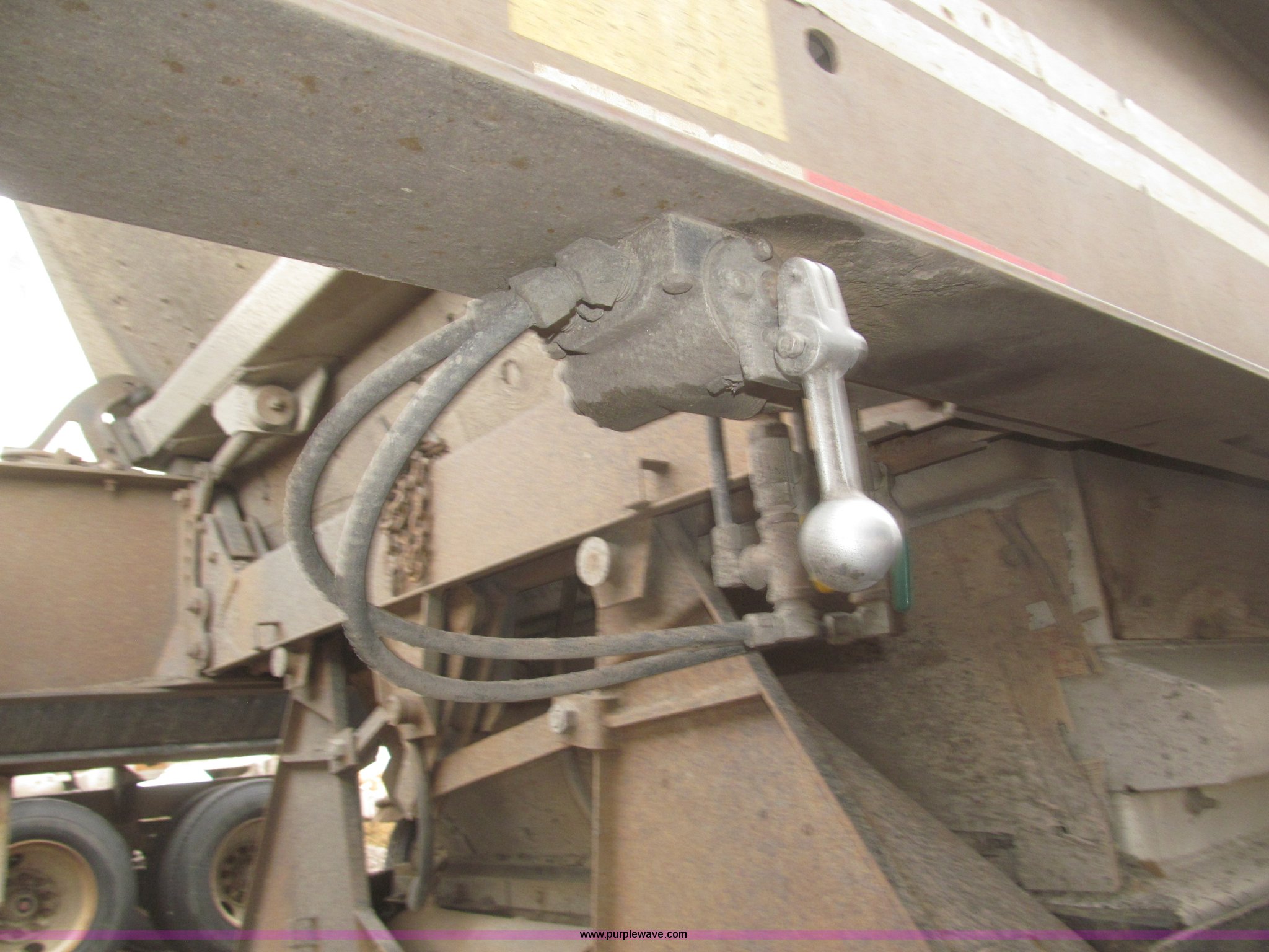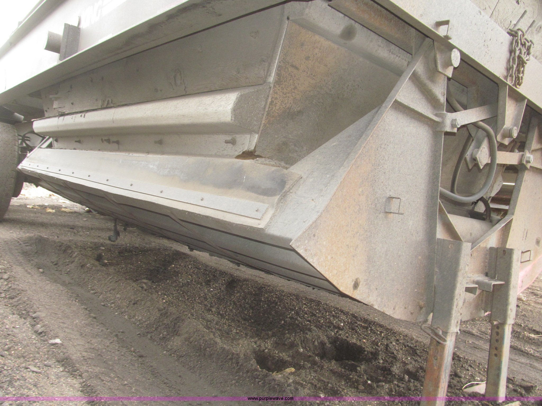 Purple Wave is selling a used Bottom Dump Trailer in Nebraska. This item is a 1986 Trail King BD22-383A 40' triple axle belly dump trailer with the following: Approx. 40'L x 96"W O.D., Approx. 103"H to top of hopper plus tarp frame, DOT reflective tape, Driver's side and cab ready hopper controls, Tarp cover, Rear mounted crank, Oscillating king pin plate, Approx. 29" rear push bumper, Gladhands and seven pin electric connectors, Hopper mounted front adjustable jack stands, Spring suspension, Air brakes, 12R22.5 tires, GVWR 73,000 lbs, GAWR 14,400 lbs, Unit# 220