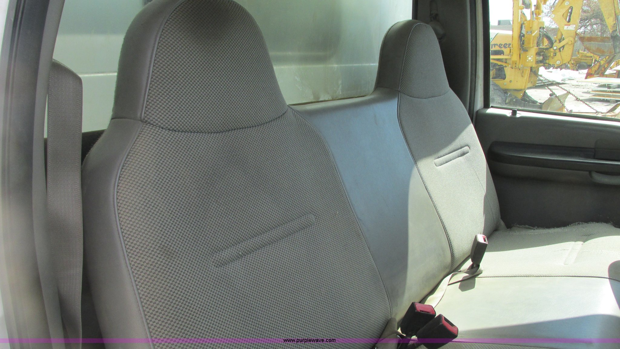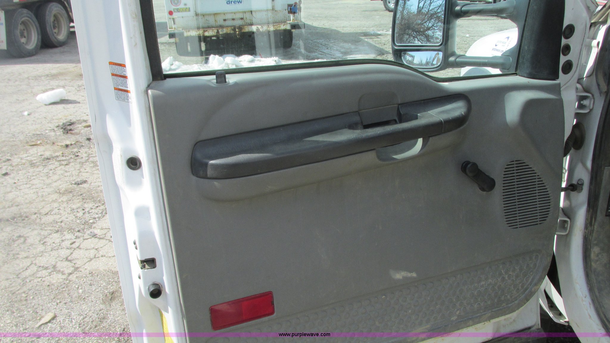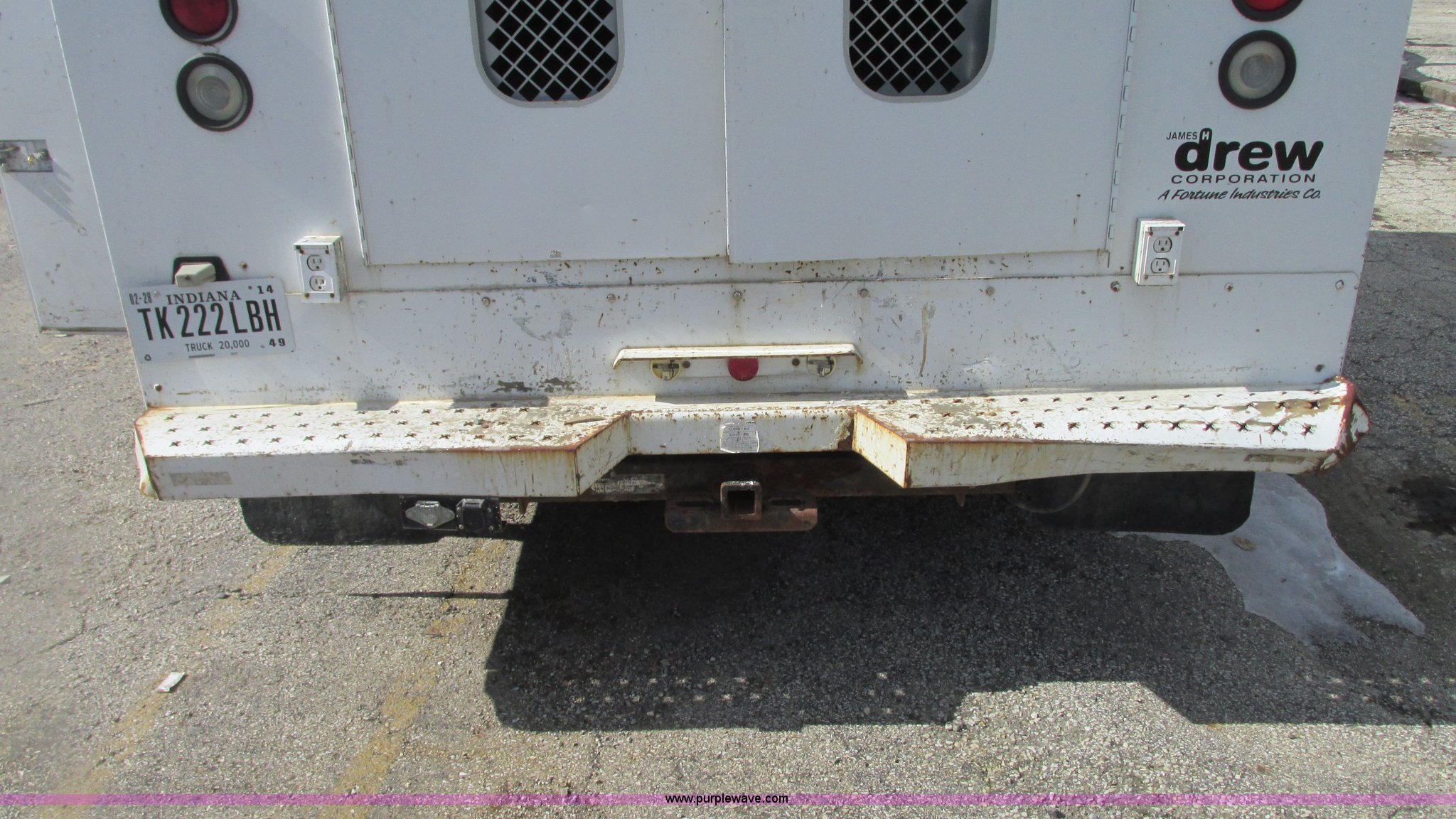 Purple Wave is selling a used Service Truck in Indiana. This item is a 2006 Ford F550 service truck with the following: 120,778 miles on odometer, 6.0L V8 OHV 32V turbo diesel engine, Unknown engine issues, Automatic transmission, Four wheel drive, AC and heat, Tilt, Cruise, AM/FM/CD, Manual windows and locks, Vinyl/cloth interior, Knapheide utility bed, 11'L x 54"W x 60"H, (8) compartments, Interior racks and bins, Heavy duty step bumper, Receiver hitch, Trailer wiring, 225/70R19.5 tires, Interior/exterior cosmetic damage, Possible clogged EGR valve, Batteries missing, Unit# 756