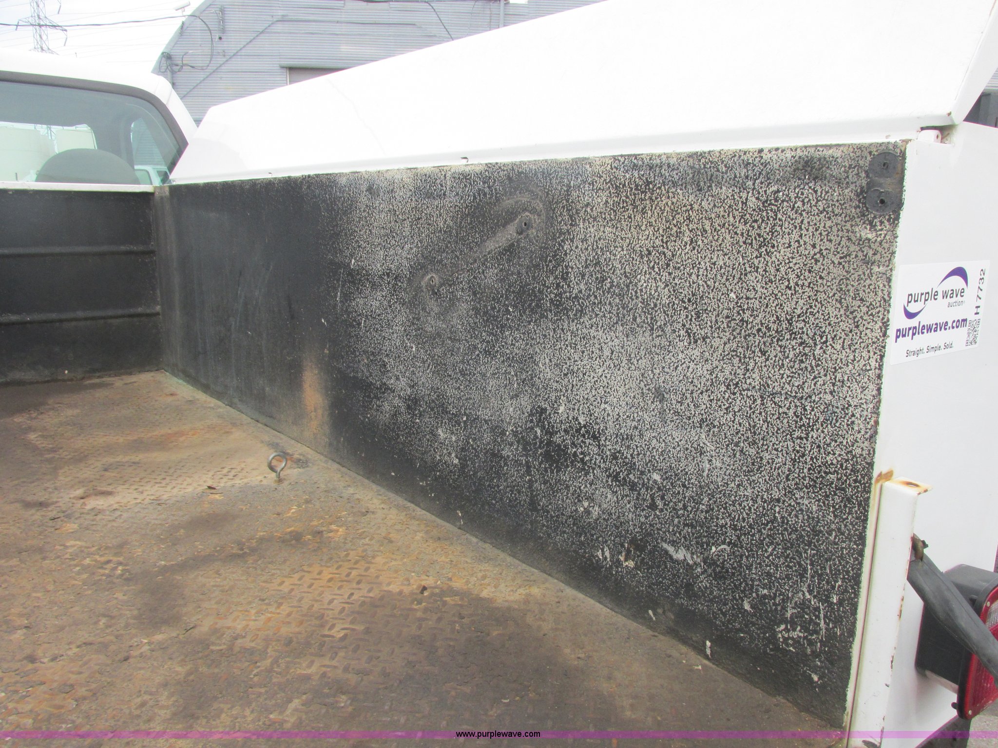 Purple Wave is selling a used Service Truck in Missouri. This item is a 2002 Ford F250 Super Duty XL utility truck with the following: 101,924 miles on odometer, 5.4L V8 SOHC 16V gas engine, Automatic transmission, AC and heat, AM/FM/cassette, Manual windows and locks, Vinyl interior, Front tow hooks, Reading utility long bed, Model US98ABSW, (6) side compartments, Two top saddle compartments, Spray-in bed liner, Serial 368486, Rear step bumper, Receiver hitch, Michelin 235/85R16 Load Range E tires, Interior/exterior cosmetic damage, Lower right windshield cracked, Some wear on bed liner, Bed has minor rust, Right rear corner damage, Seat torn