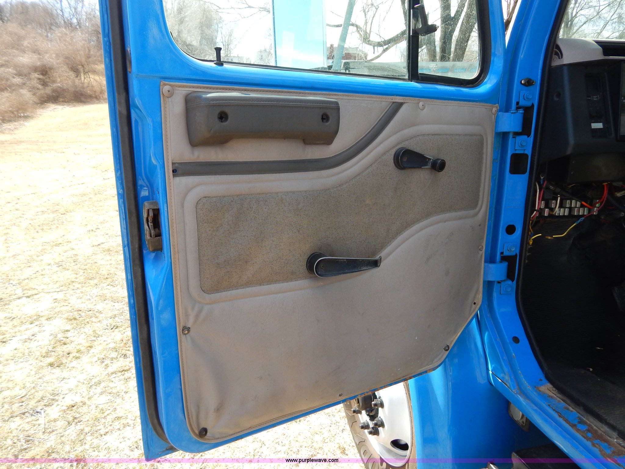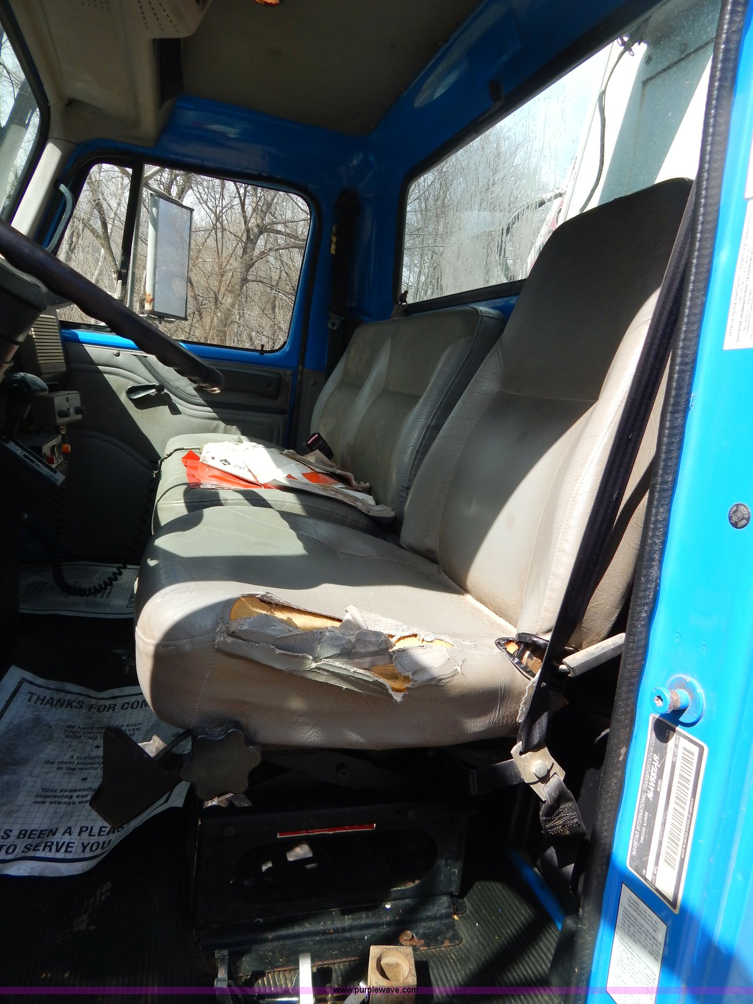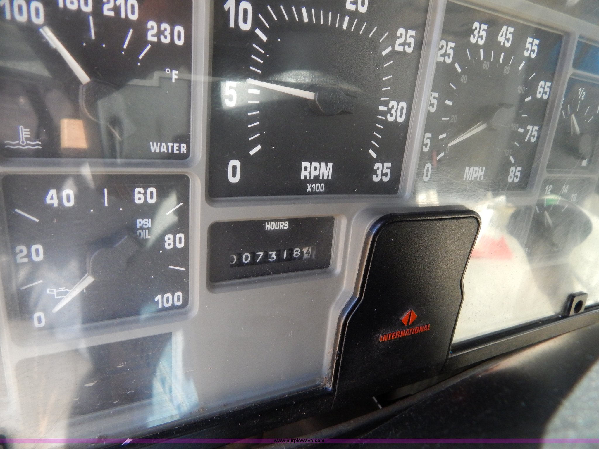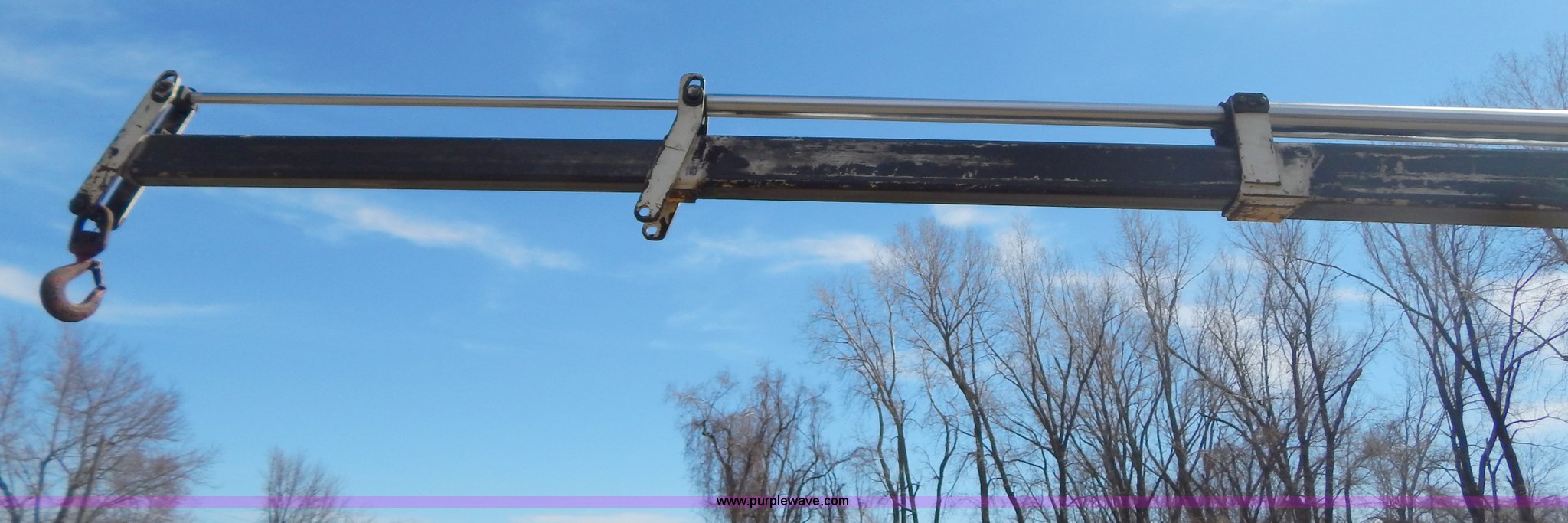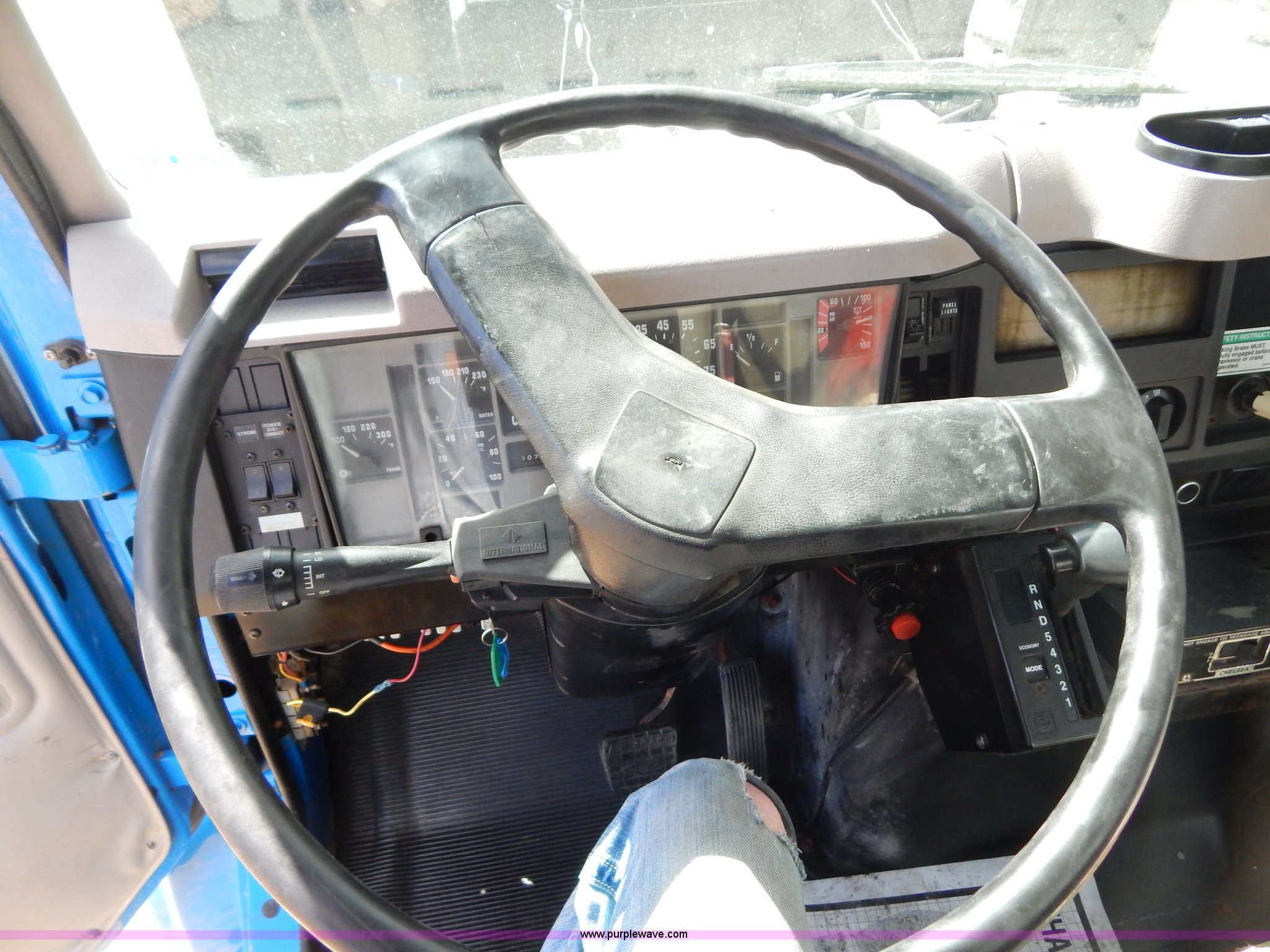 Purple Wave is selling a used Crane Truck in Missouri. This item is a 1996 International 4900 flatbed truck with crane with the following: 51,025 miles on odometer, 7,318 hours on meter, International DT530 8.7L L6 diesel engine, Allison automatic transmission, Heat, Air suspension seat, 15'L x 94"W flatbed, 16"H removable sideboards, IMT 9800 knuckle boom crane, 49'9" maximum height, Serial 1495951013, PTO, Air brakes, 315/80R22.5 front tires, 11R22.5 rear tires