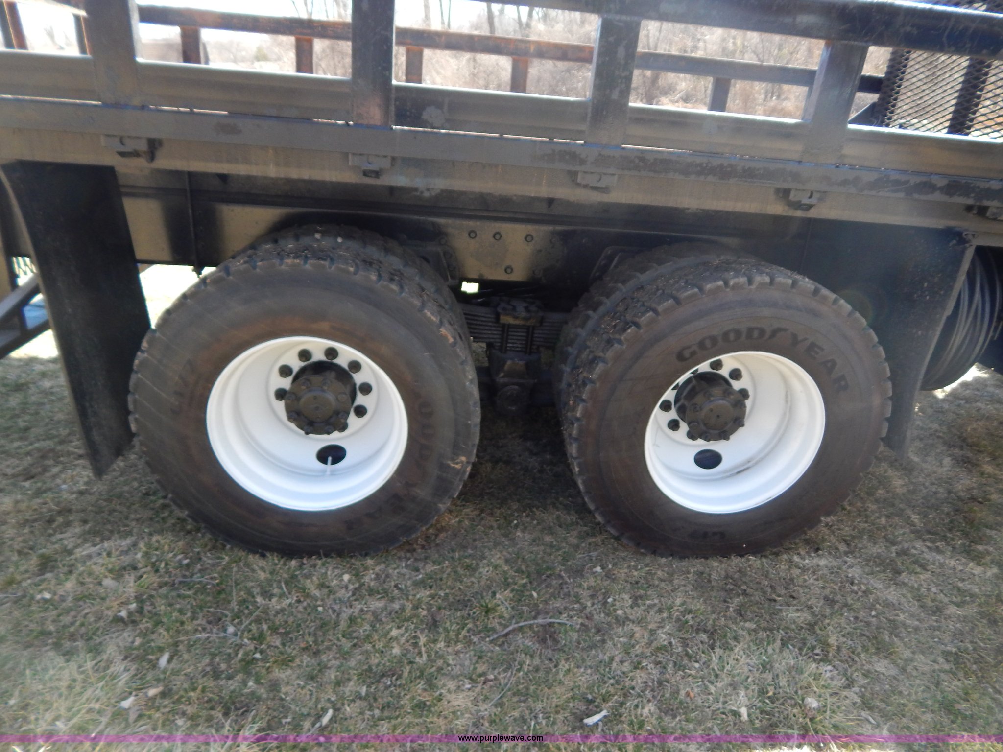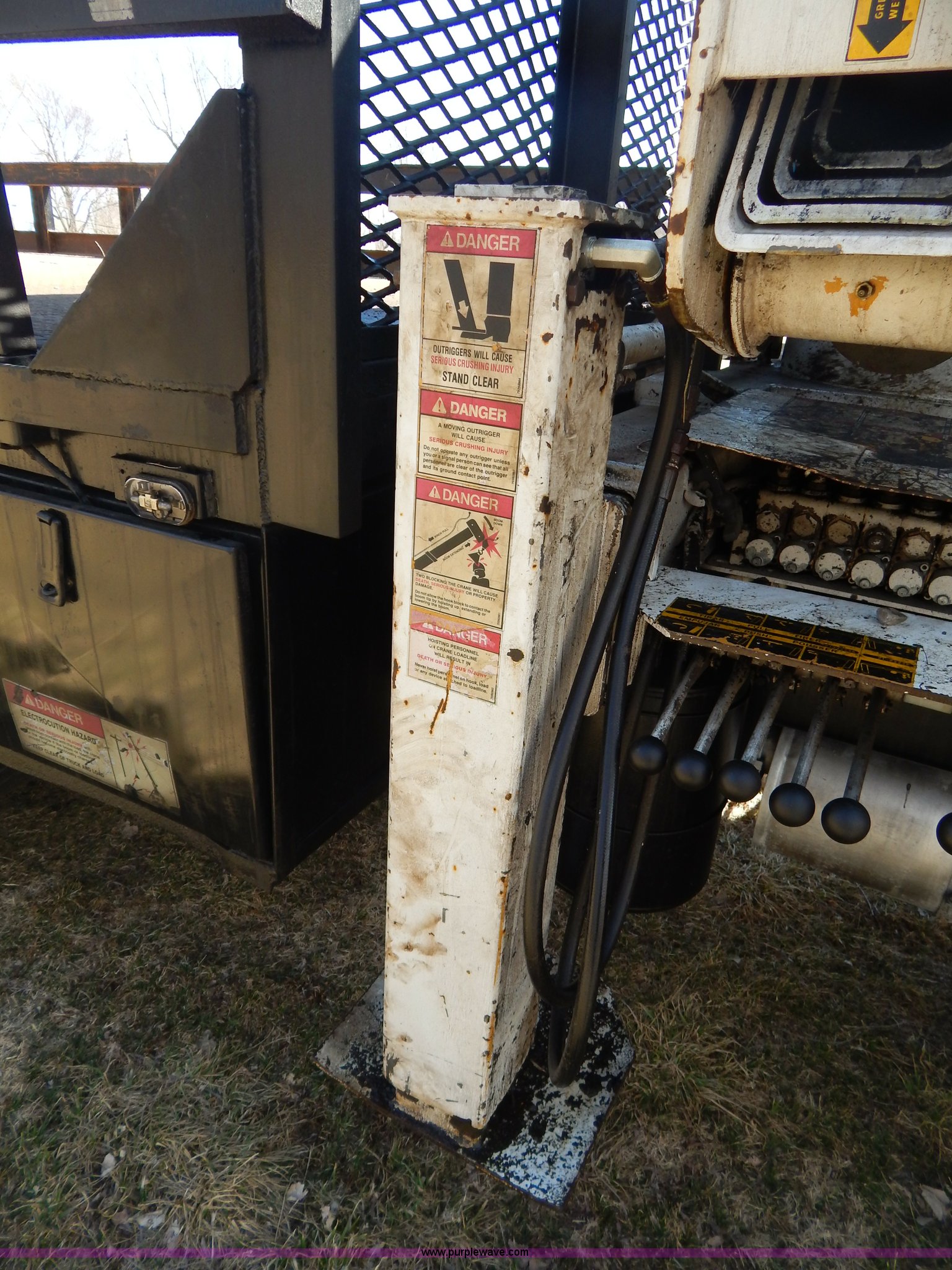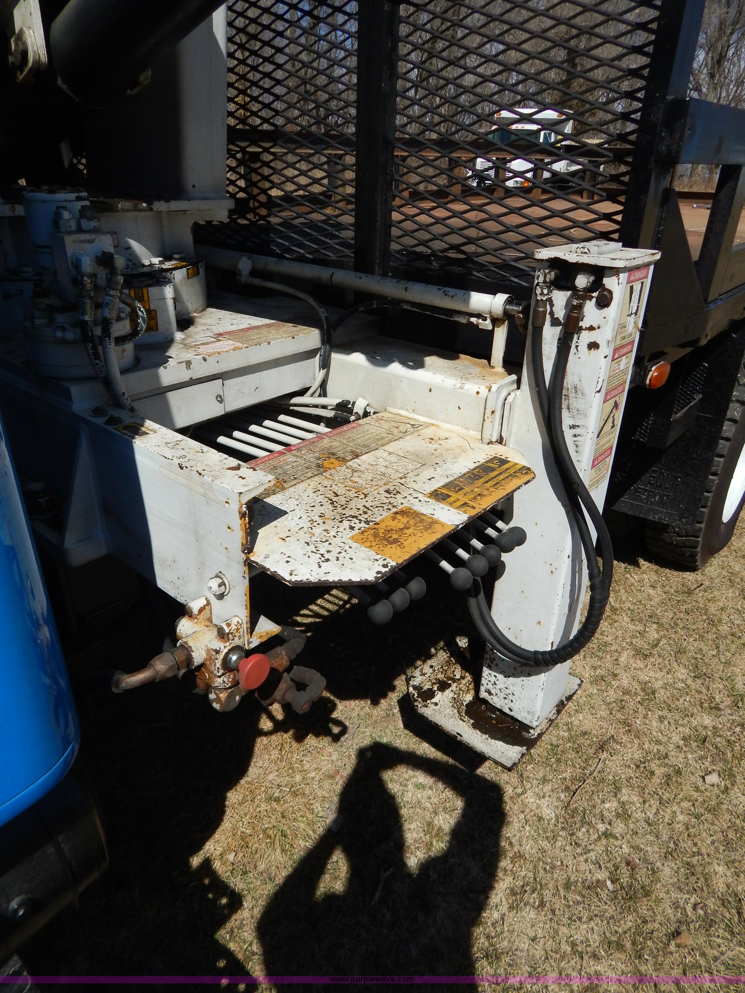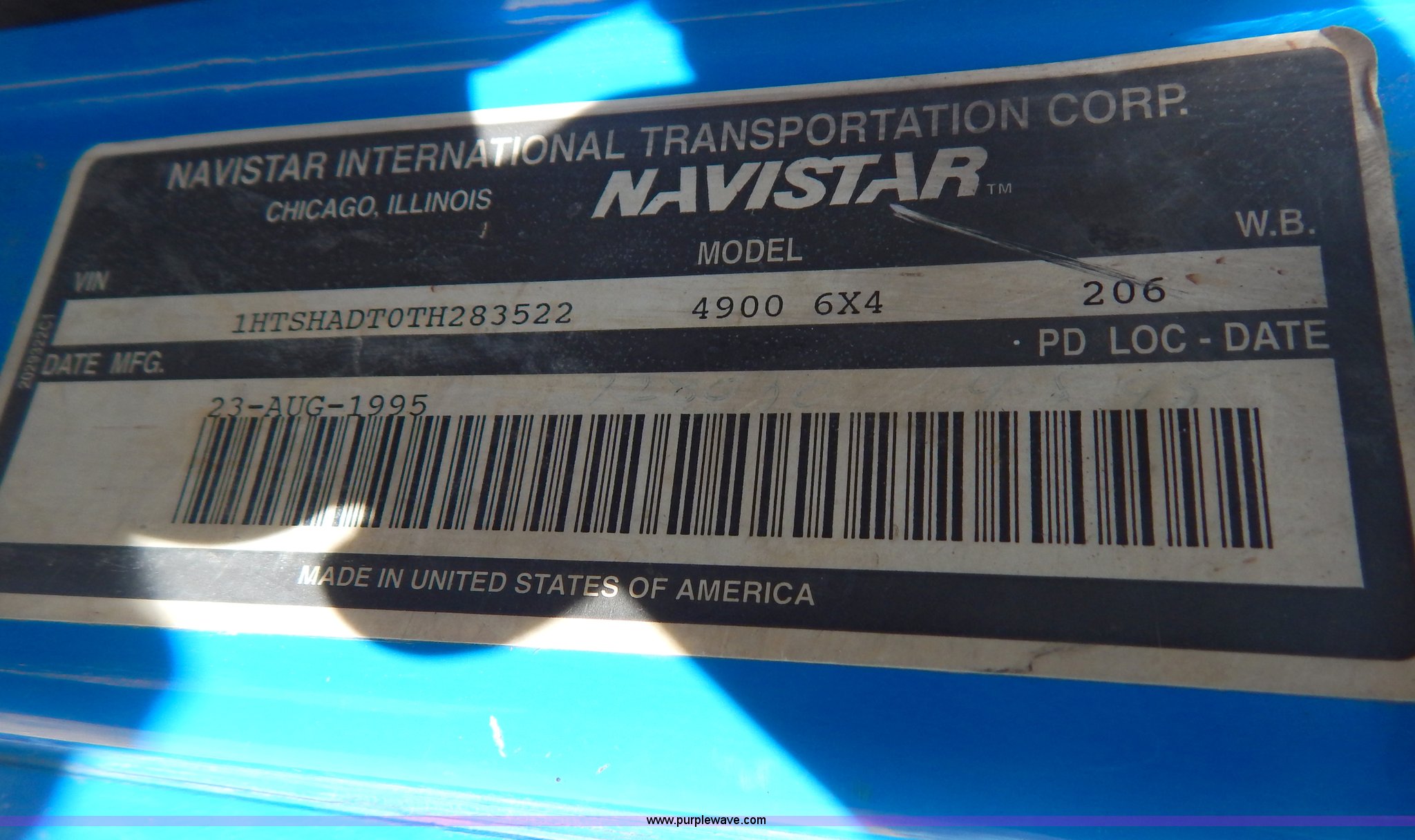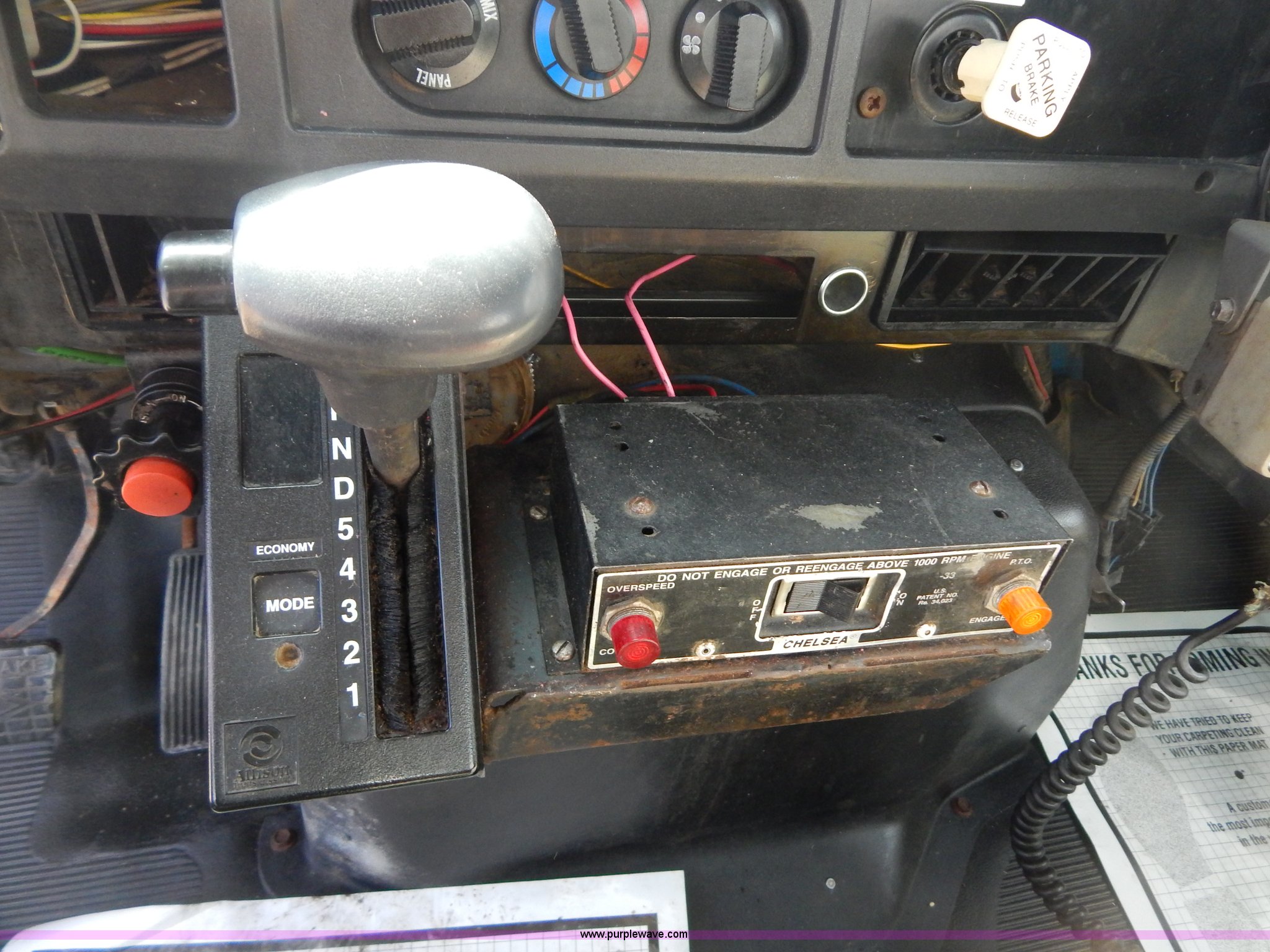 Purple Wave is selling a used Crane Truck in Missouri. This item is a 1996 International 4900 flatbed truck with crane with the following: 51,025 miles on odometer, 7,318 hours on meter, International DT530 8.7L L6 diesel engine, Allison automatic transmission, Heat, Air suspension seat, 15'L x 94"W flatbed, 16"H removable sideboards, IMT 9800 knuckle boom crane, 49'9" maximum height, Serial 1495951013, PTO, Air brakes, 315/80R22.5 front tires, 11R22.5 rear tires