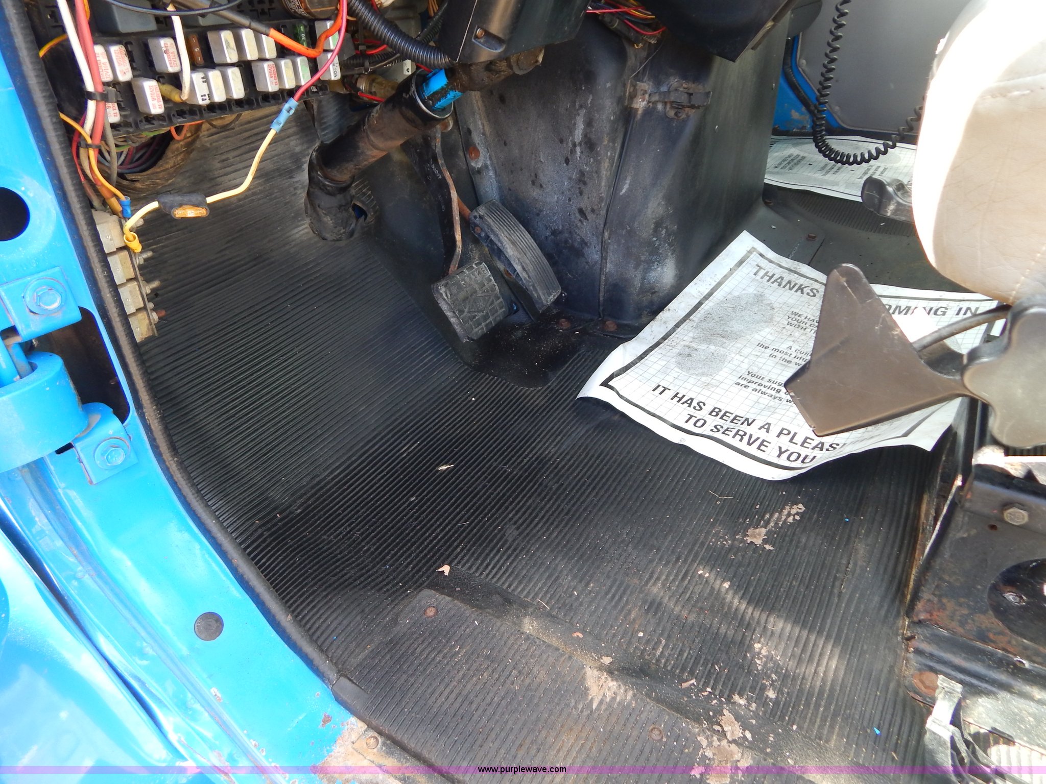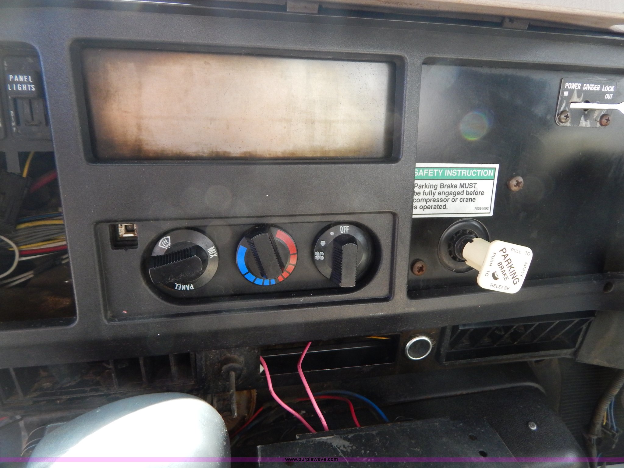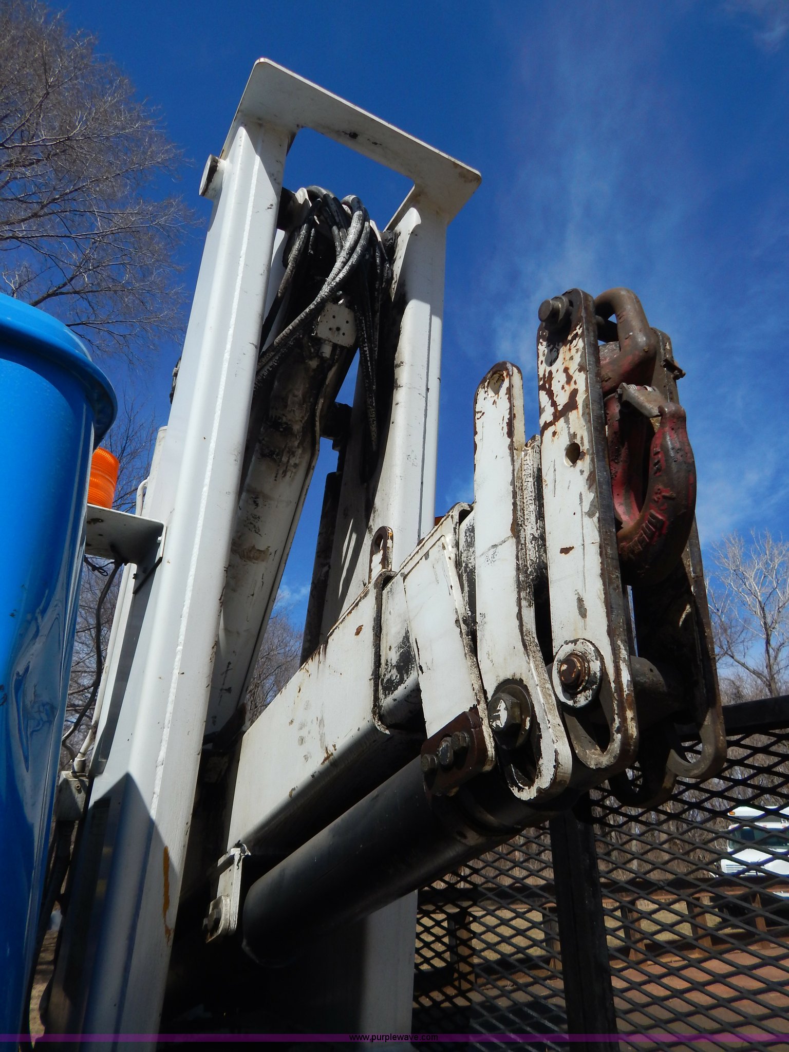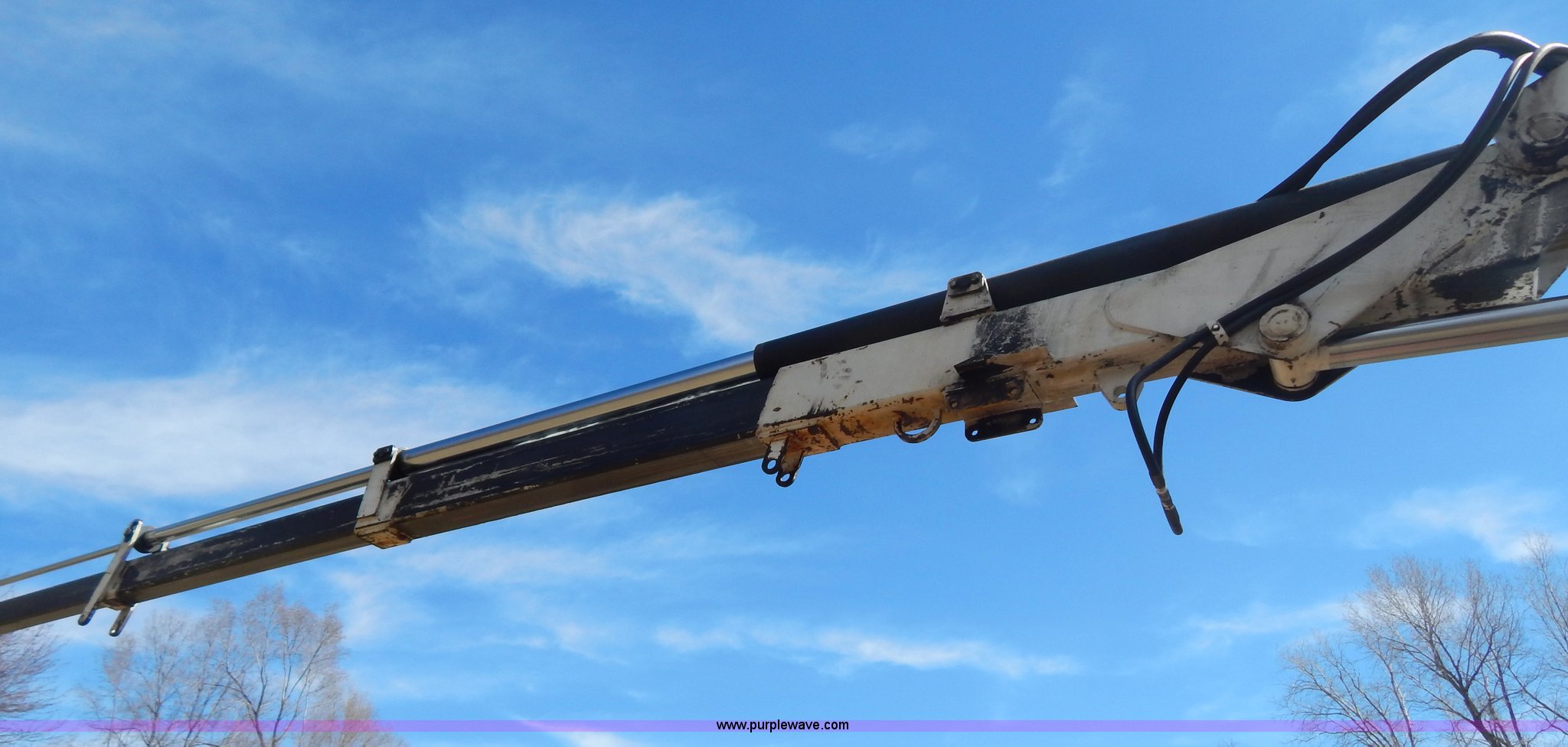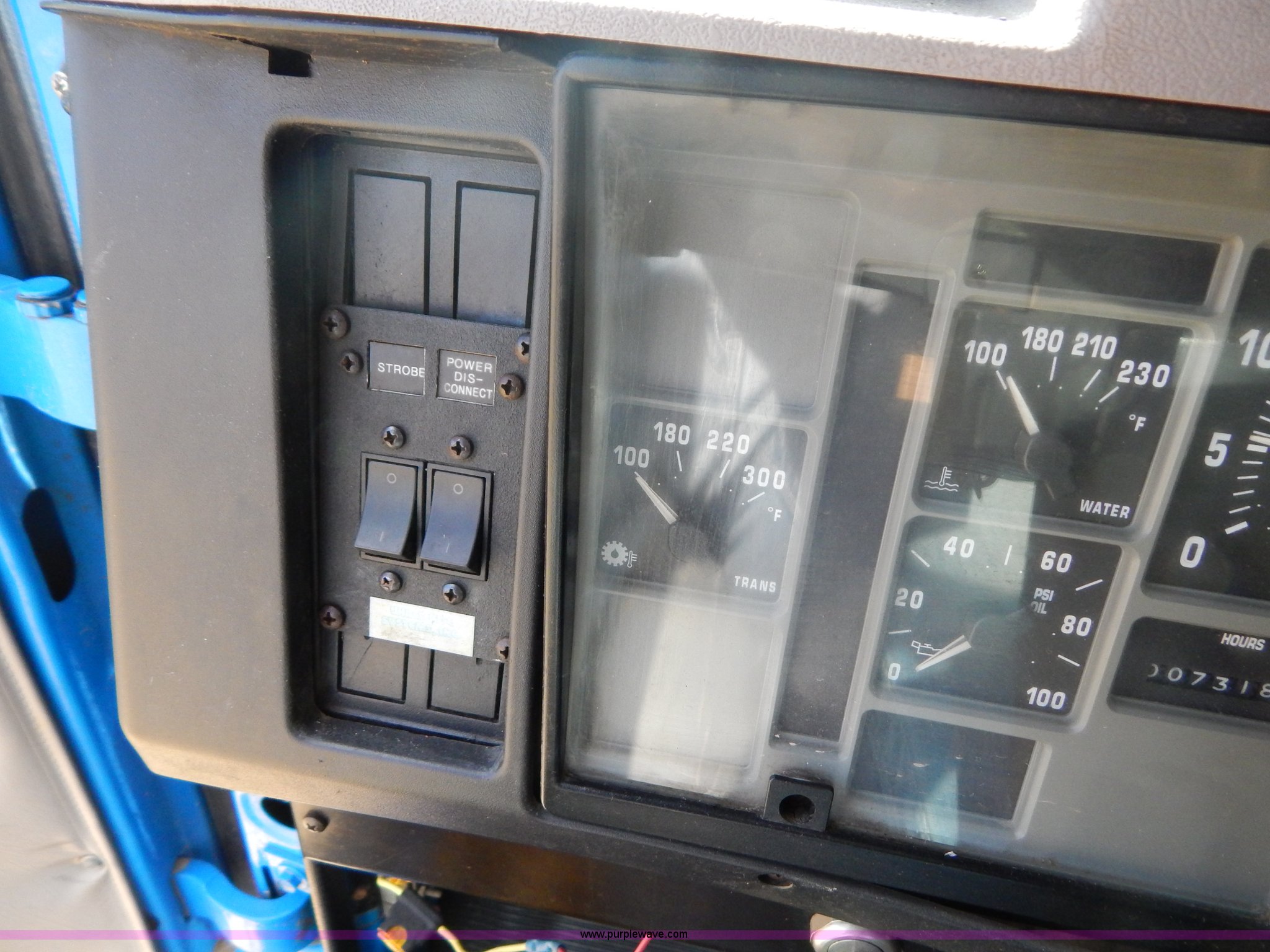 Purple Wave is selling a used Crane Truck in Missouri. This item is a 1996 International 4900 flatbed truck with crane with the following: 51,025 miles on odometer, 7,318 hours on meter, International DT530 8.7L L6 diesel engine, Allison automatic transmission, Heat, Air suspension seat, 15'L x 94"W flatbed, 16"H removable sideboards, IMT 9800 knuckle boom crane, 49'9" maximum height, Serial 1495951013, PTO, Air brakes, 315/80R22.5 front tires, 11R22.5 rear tires