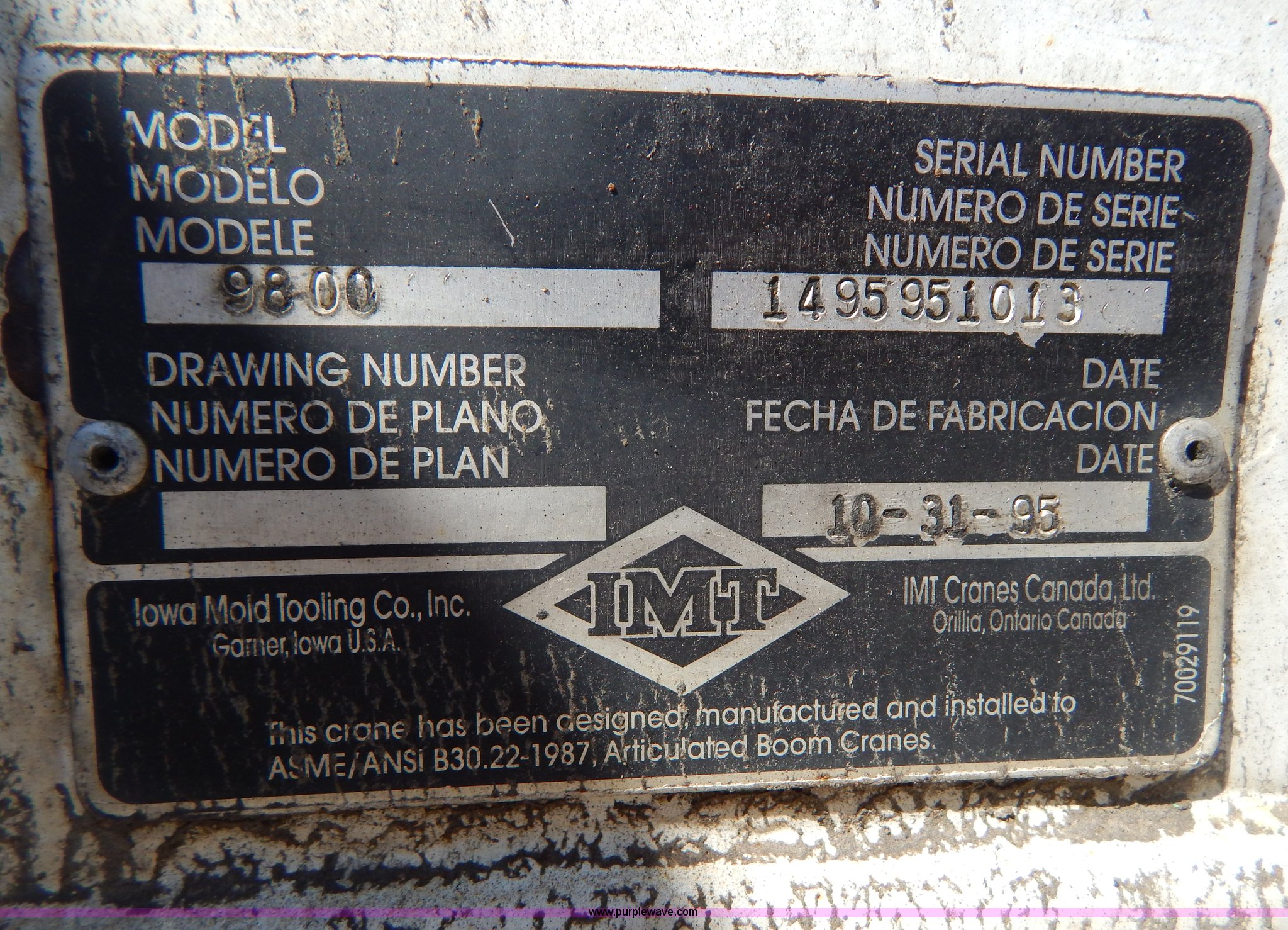 - IMT 9800 knuckle boom crane