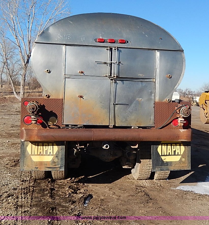Purple Wave is selling a used Tank Truck or Water Truck in Kansas. This item is a 1973 Mack DM600 water truck with the following: 179,171 miles on odometer, Mack 350 diesel engine, Serial BR0-3741, PIN 86SB3502, Five speed manual transmission, Two speed rear axle, Heat, Tilt, Manual windows and locks, Vinyl interior, Air horn, Approx. 3,000 gallon stainless steel tank, Chelsea PTO, Camelback spring suspension, Air brakes, 10.00R20 tires, GVWR 49,780 lbs, FAWR 15,730 lbs, IAWR 17,000 lbs, RAWR 17,000 lbs, Interior/exterior cosmetic damage, Contents not included, Batteries missing, Body rust, Cosmetic damage to hood