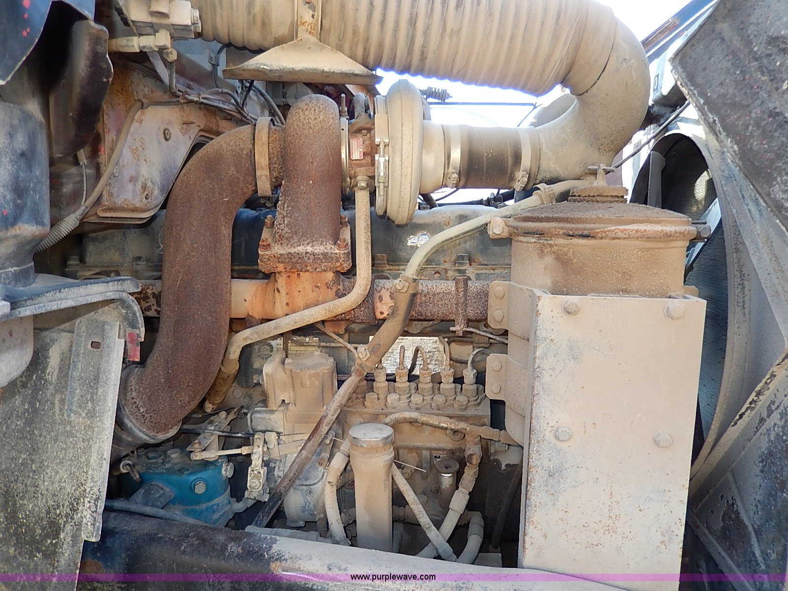 1973 Mack DM600 water truck. 179,171 miles on odometer, Mack 350 diesel engine Serial BR0-3741, PIN 86SB3502, Five speed manual transmission, Two speed rear axle, Heat, Tilt, Manual windows and locks, Vinyl interior, Air horn , Approx. 3,000 gallon stainless steel tank, Chelsea PTO, Camelback spring suspension, Air brakes, 10.00R20 tires, GVWR 49,780 lbs, FAWR 15,730 lbs, IAWR 17,000 lbs, RAWR 17,000 lbs, Interior/exterior cosmetic damage, Contents not included, Batteries missing, Body rust, Cosmetic damage to hood. DM685S14778. Shilling Construction. 9620 Hwy 24. Manhattan, KS 66502