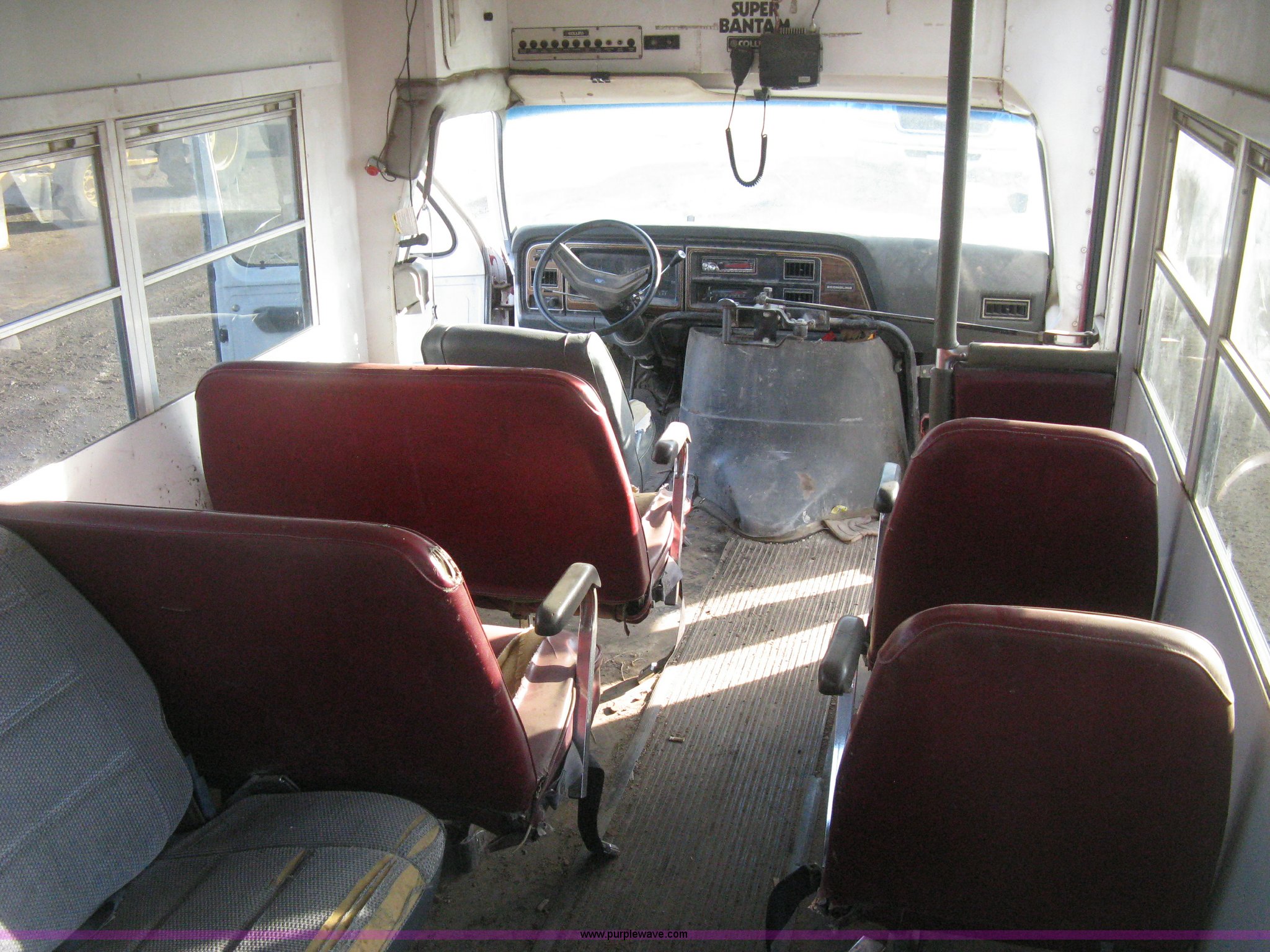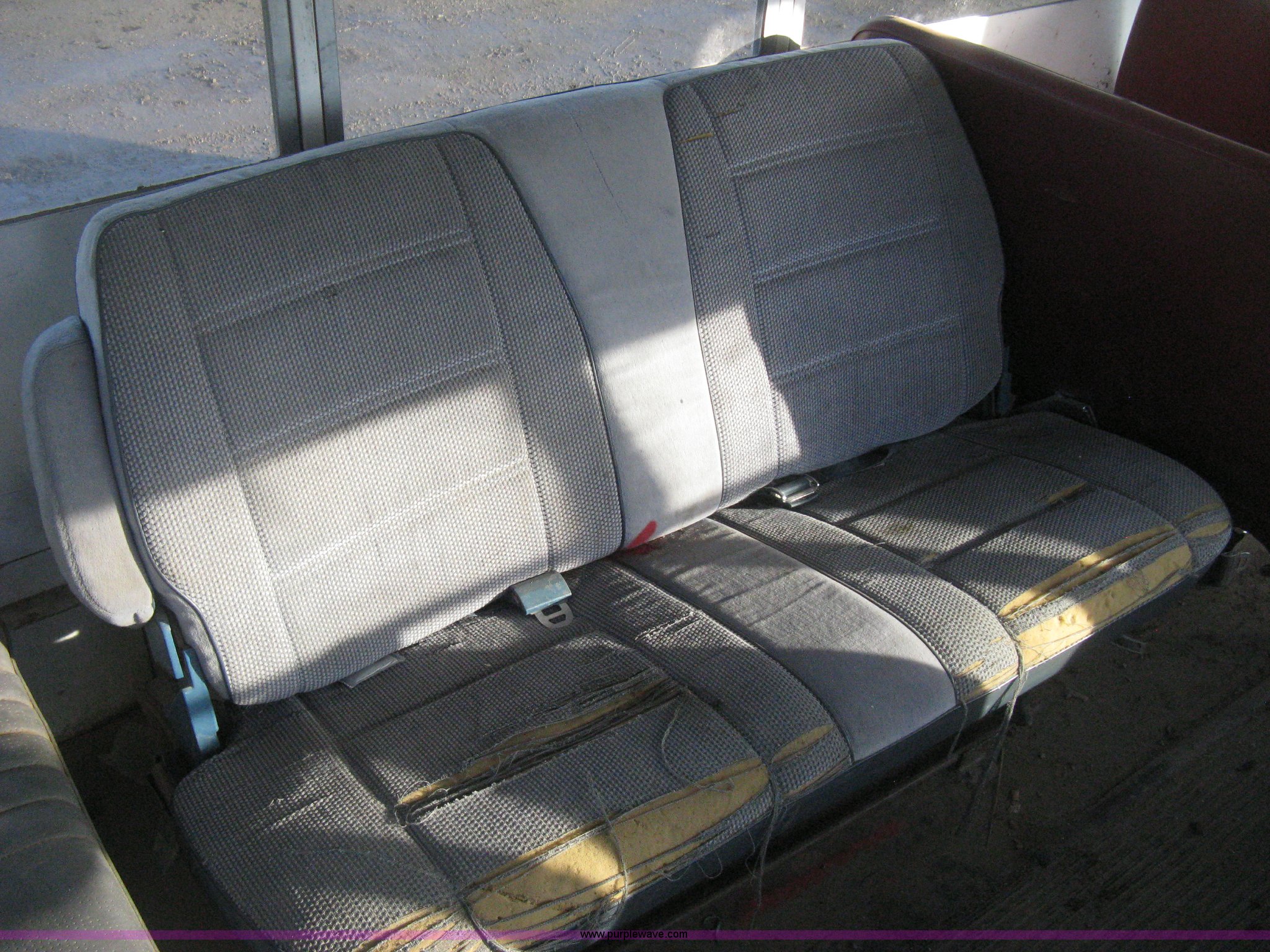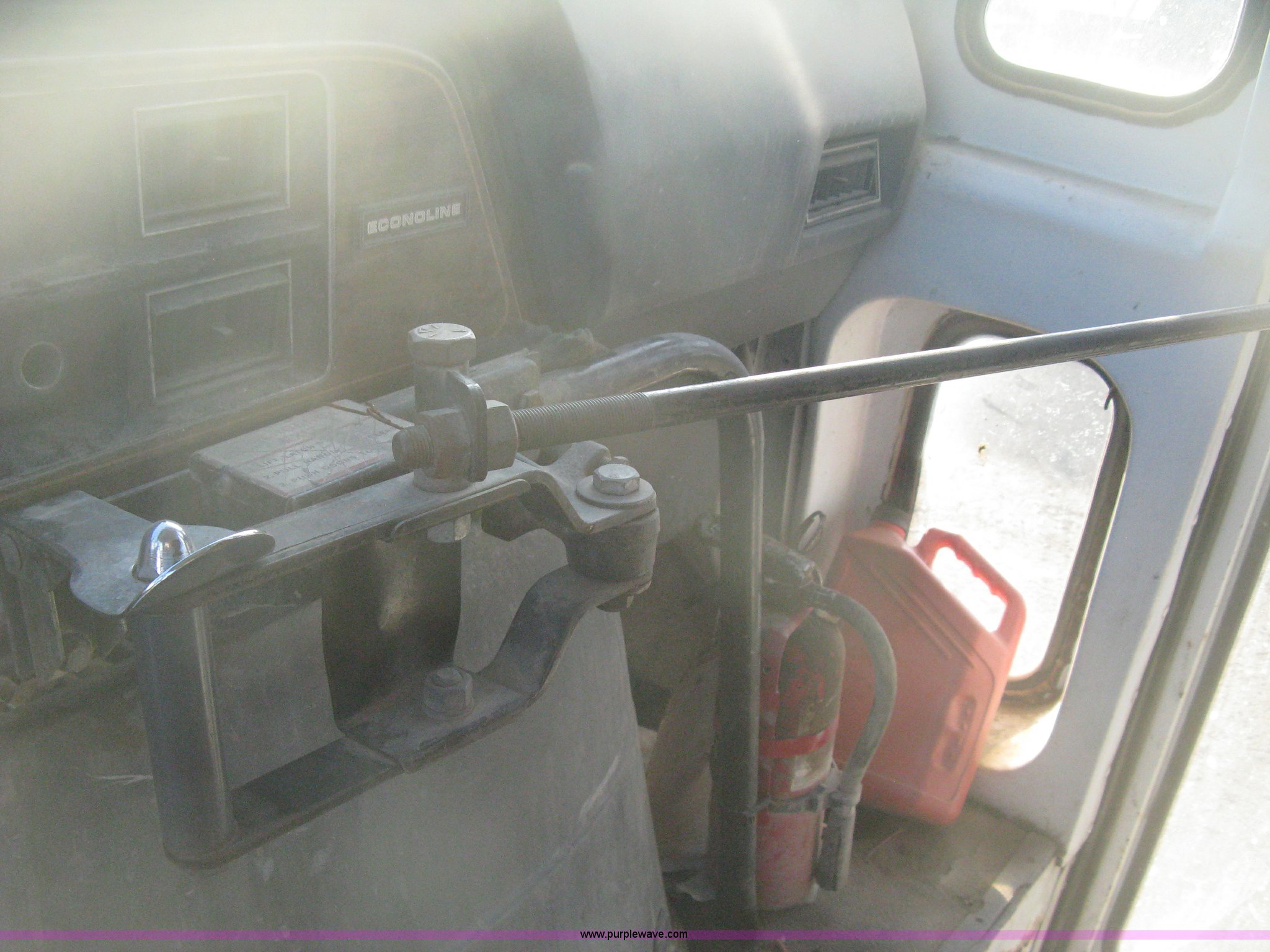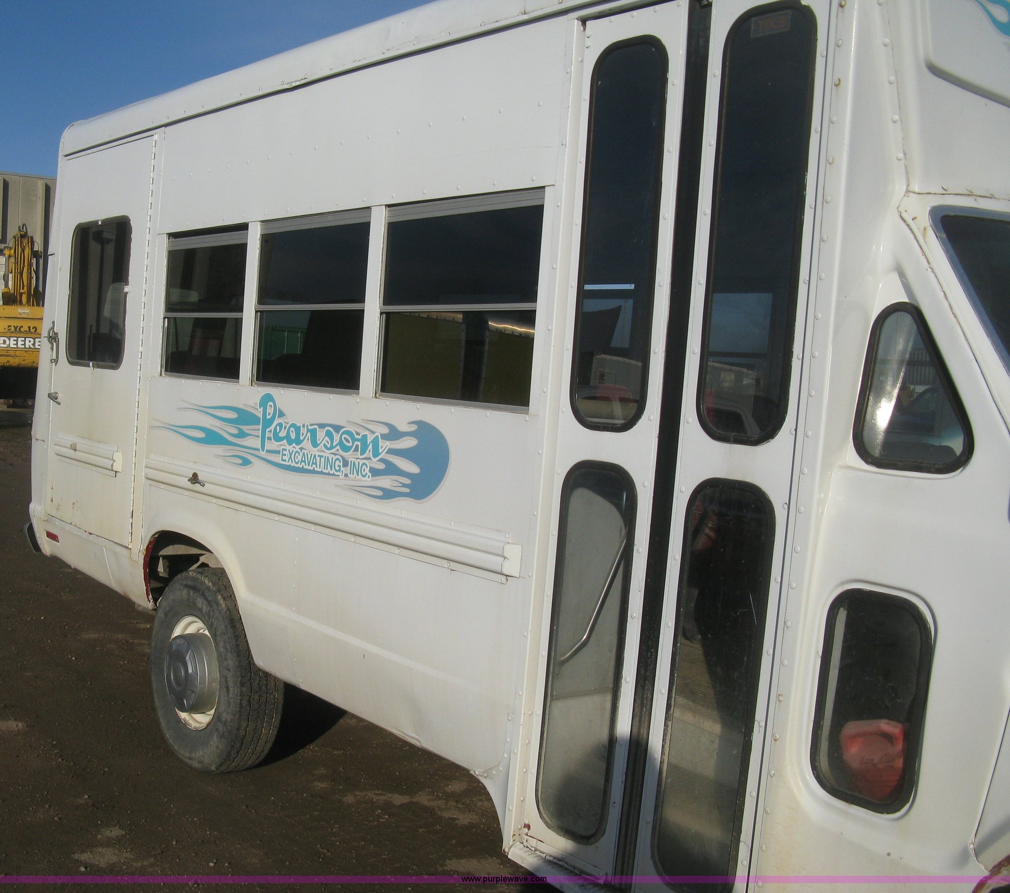 Purple Wave is selling a used Bus in Kansas. This item is a 1991 Ford Econoline E350 bus with the following: 55,129 miles on odometer, 5.8L V8 OHV 16V gas engine, Automatic transmission, AC and heat, JVC AM/FM/CD, Manual windows and locks, Vinyl interior, Kenwood CB radio, Collins Super Bantam bus body, Six passenger capacity, (2) additional aftermarket bench seats, Rear side handicap accessible door, No wheelchair lift, Front passenger entry door, Dual rear doors, Dual fuel tanks, 138" wheelbase, LT235/85R16 tires, GVWR 9,500 lbs, Intermittent transmission leak when parked for long periods, Windshield chipped, Rust, Unit# The George