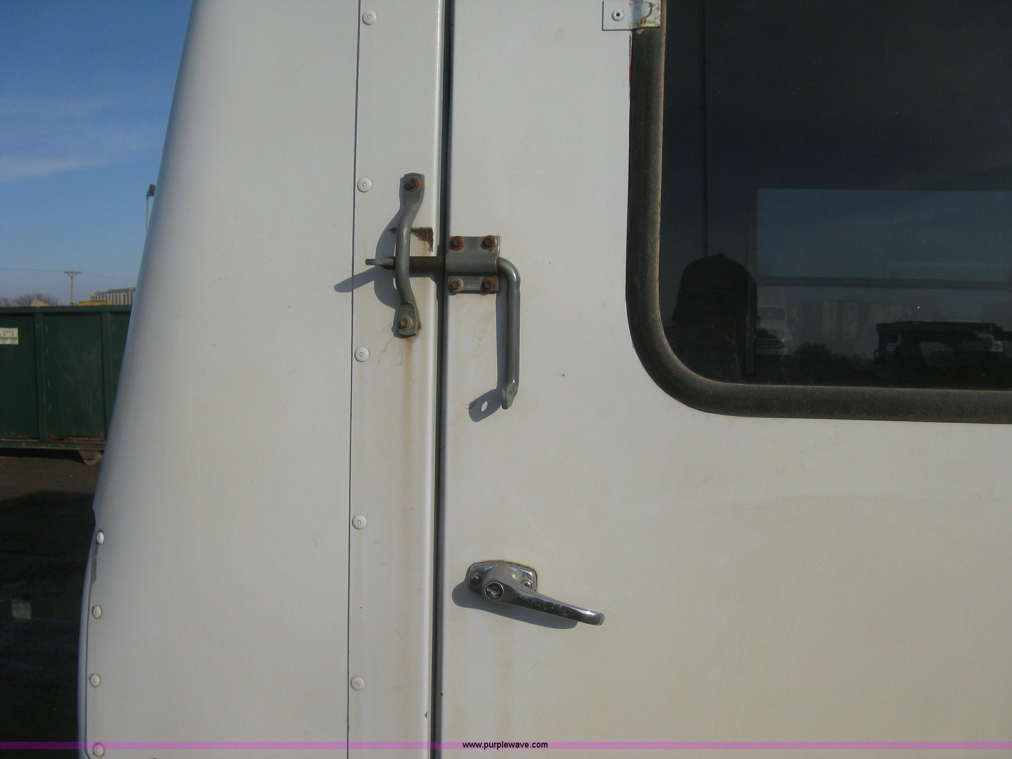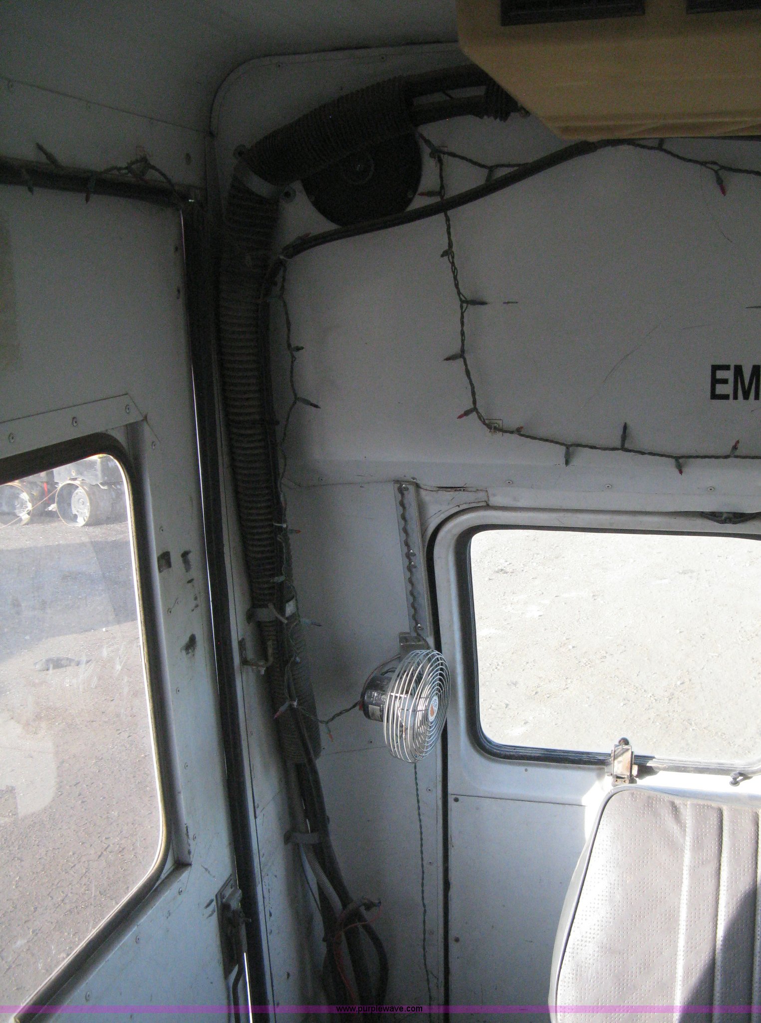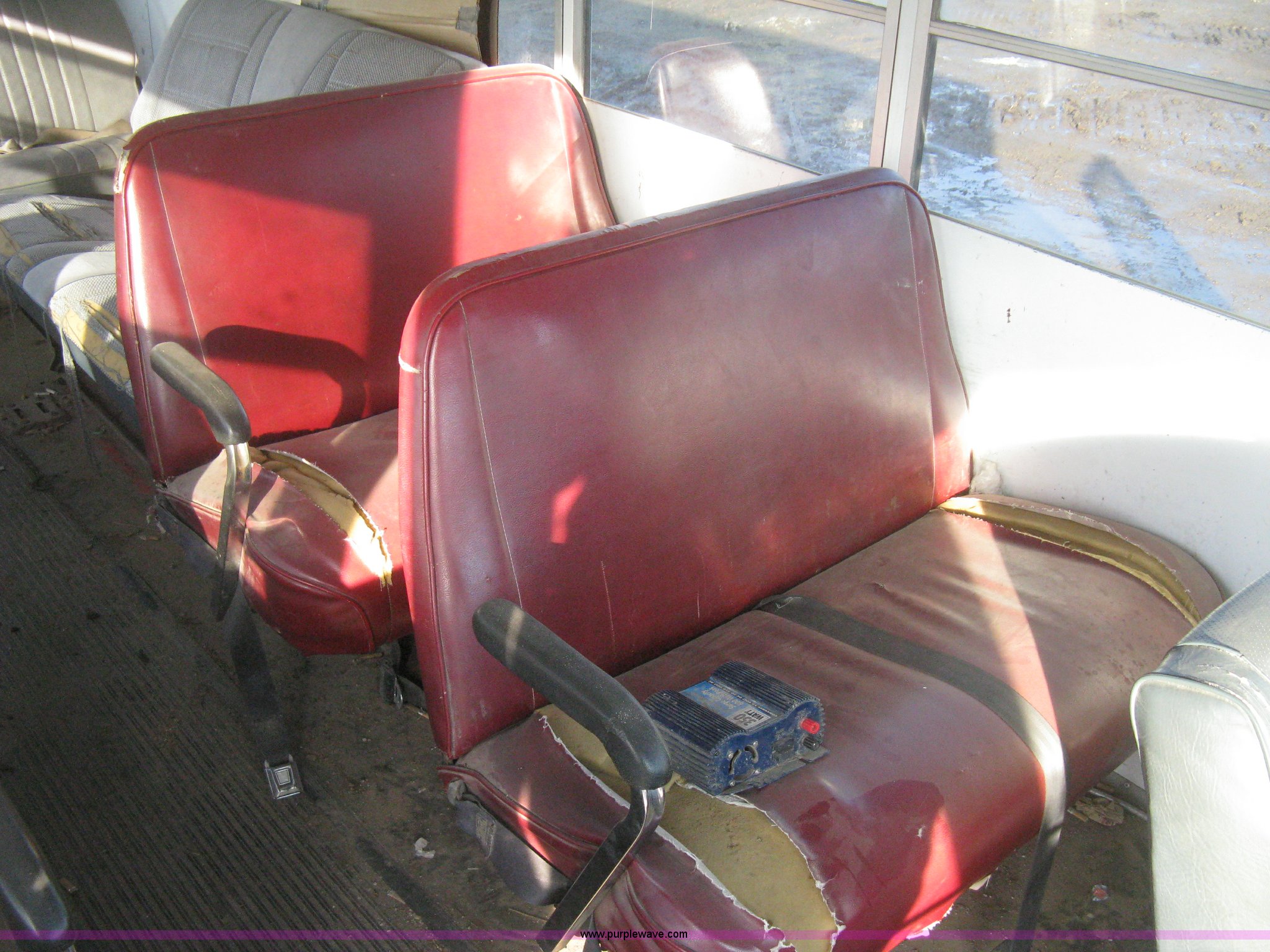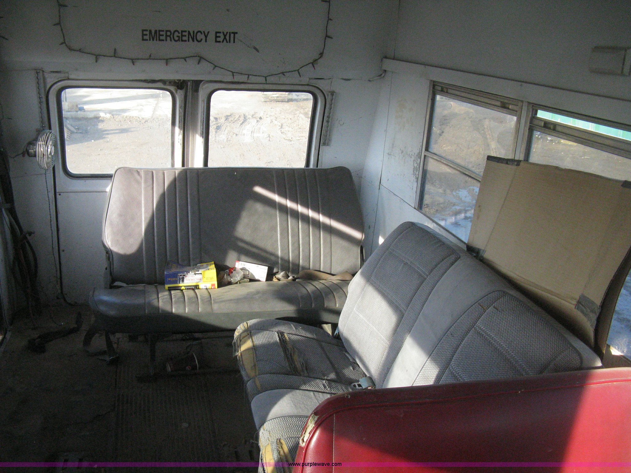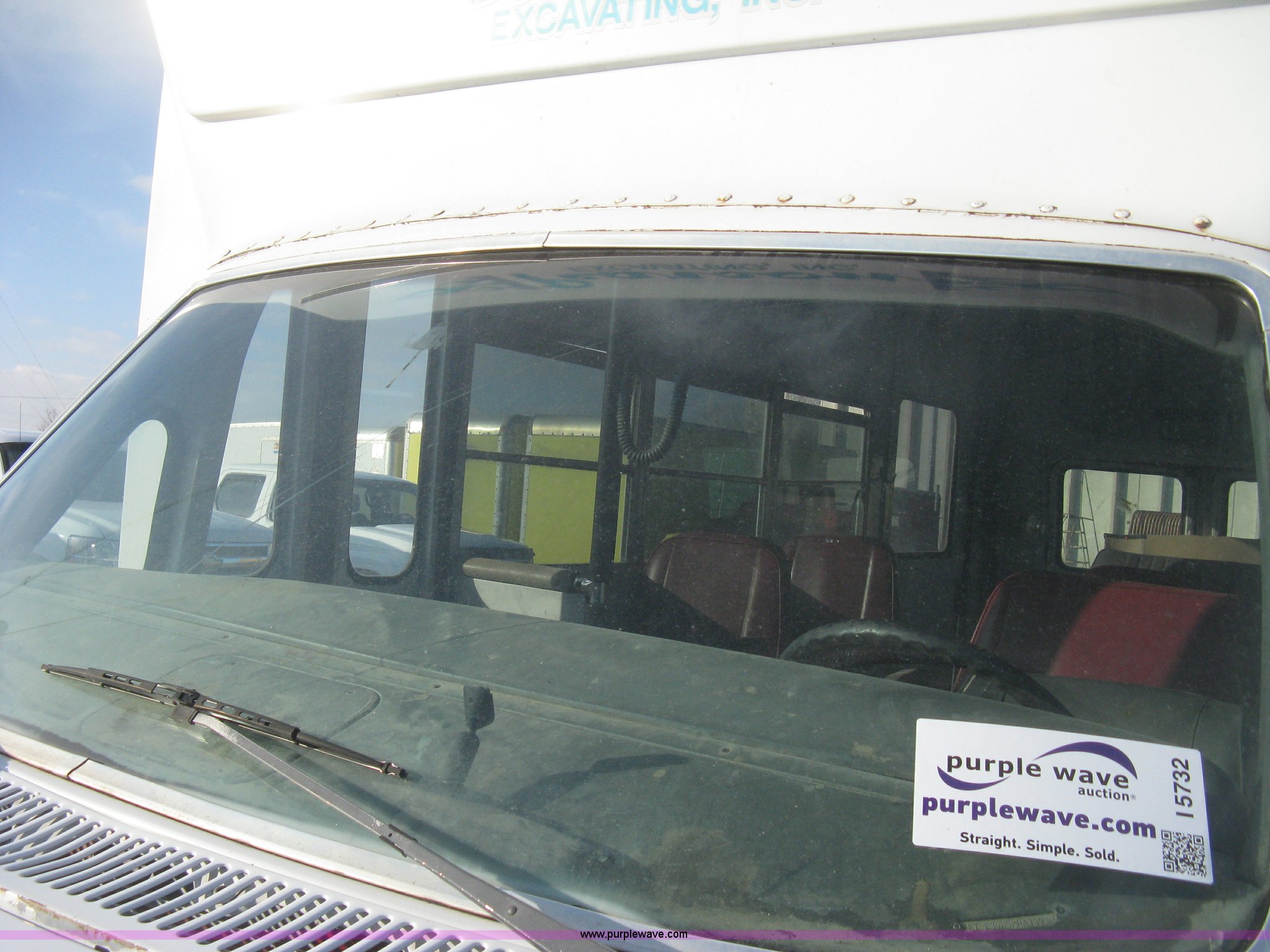 Purple Wave is selling a used Bus in Kansas. This item is a 1991 Ford Econoline E350 bus with the following: 55,129 miles on odometer, 5.8L V8 OHV 16V gas engine, Automatic transmission, AC and heat, JVC AM/FM/CD, Manual windows and locks, Vinyl interior, Kenwood CB radio, Collins Super Bantam bus body, Six passenger capacity, (2) additional aftermarket bench seats, Rear side handicap accessible door, No wheelchair lift, Front passenger entry door, Dual rear doors, Dual fuel tanks, 138" wheelbase, LT235/85R16 tires, GVWR 9,500 lbs, Intermittent transmission leak when parked for long periods, Windshield chipped, Rust, Unit# The George