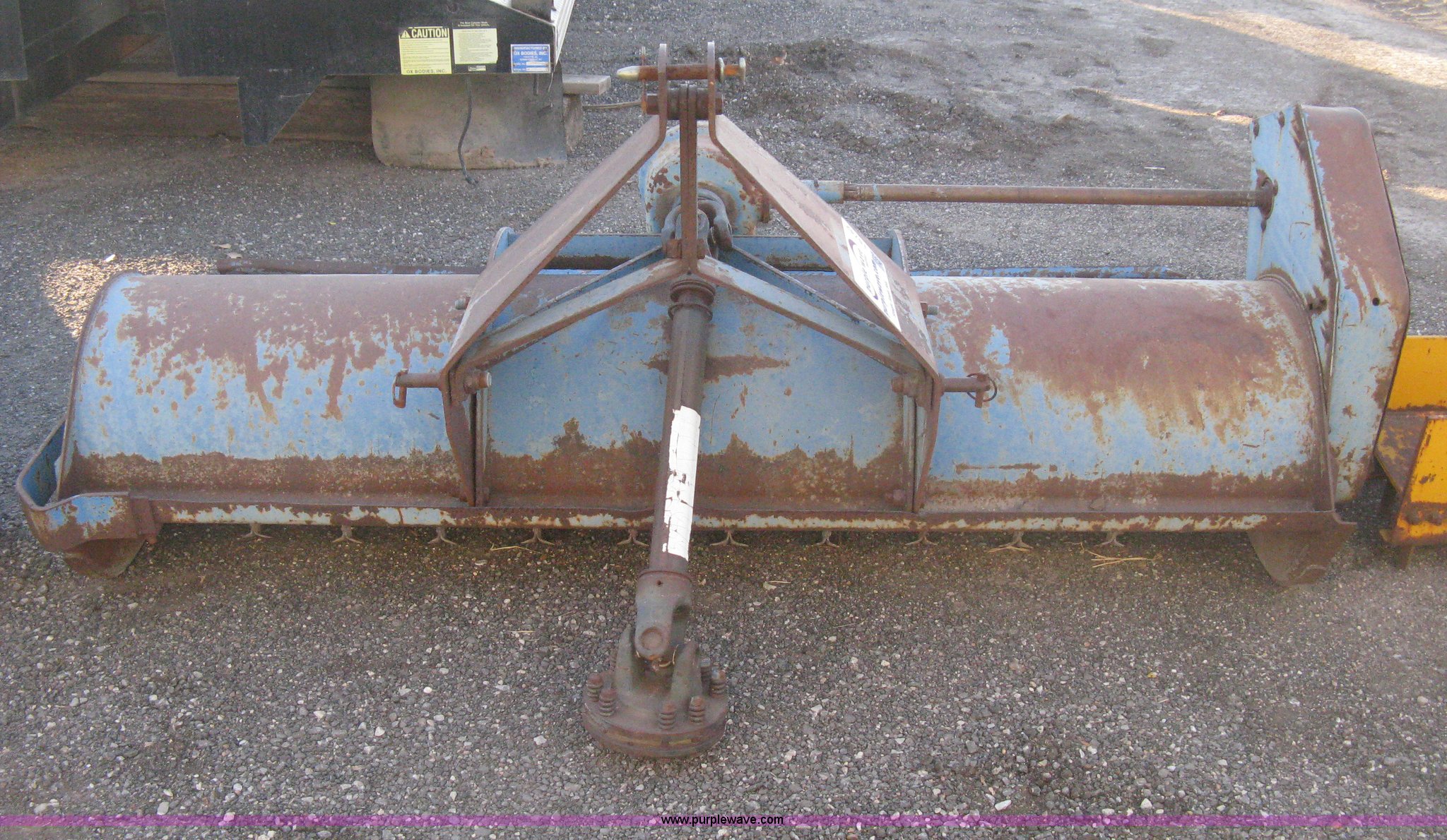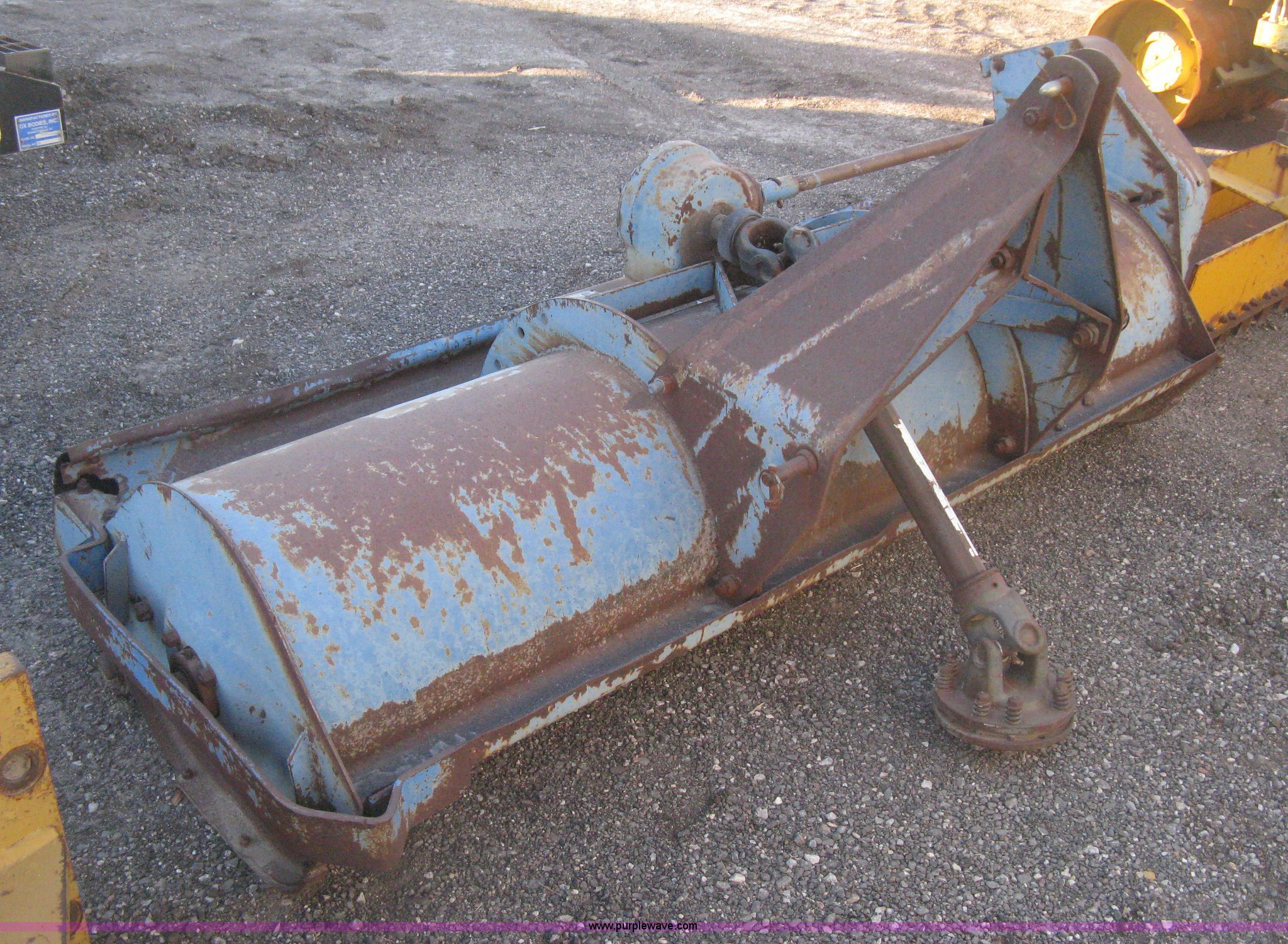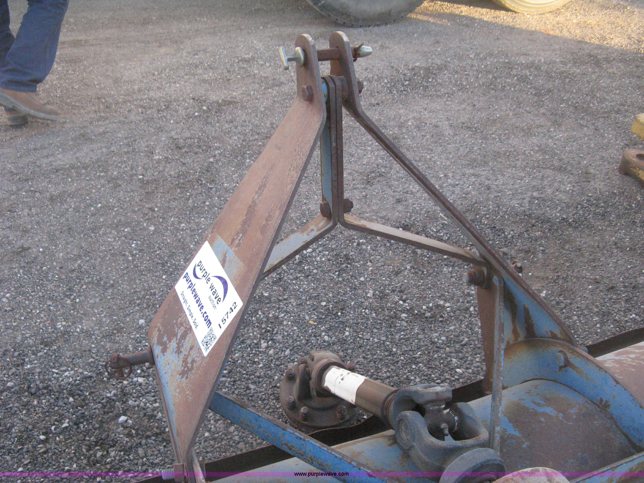 Purple Wave is selling a used Mower, Cutter, Shredder in Kansas. This item is a Ford flail finish mower with the following: 76" working width, 540 PTO, Three point, Component No. 22-I24, PTO shaft rusted, Shield sheeting damaged, Unknown operating condition, Serial 3905