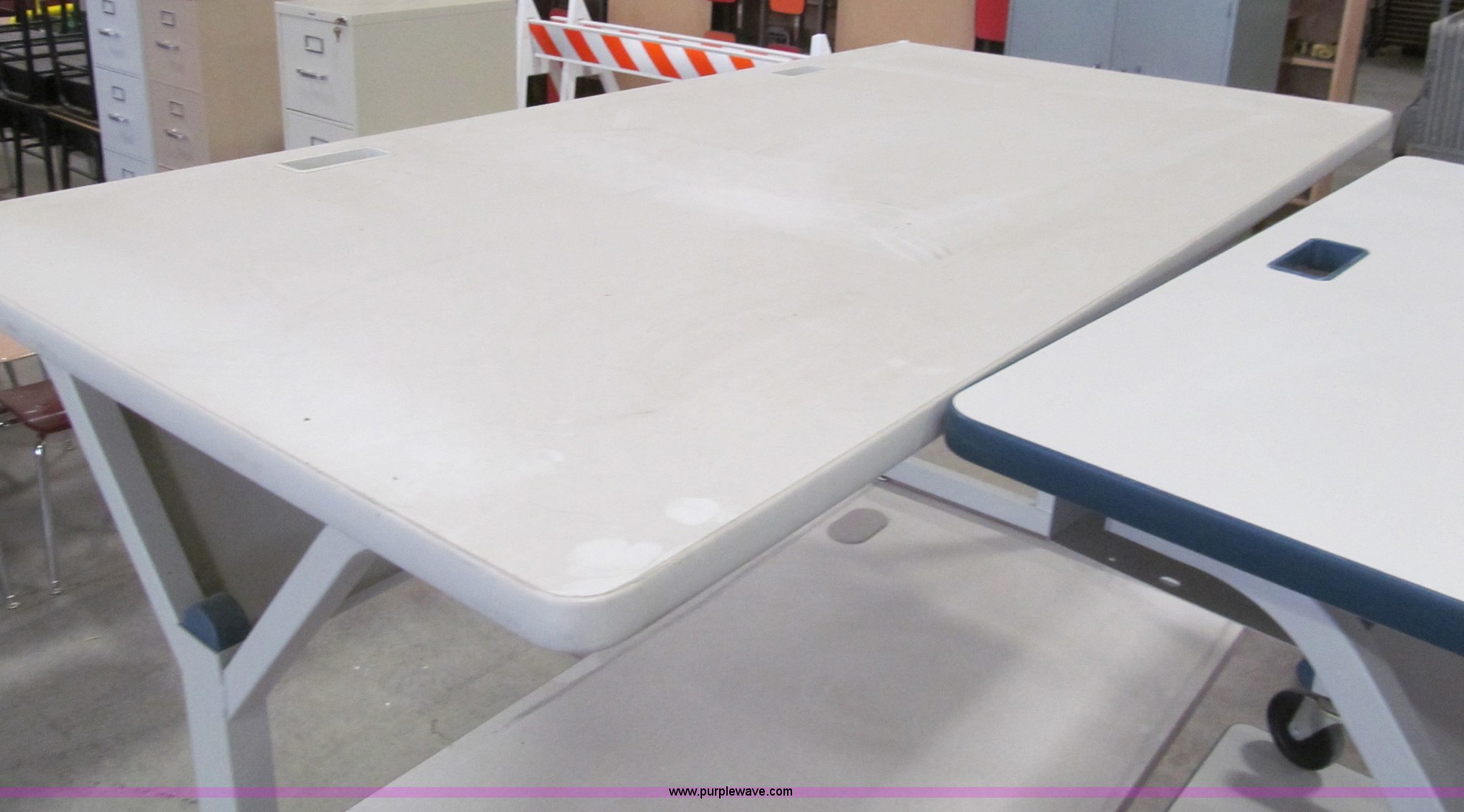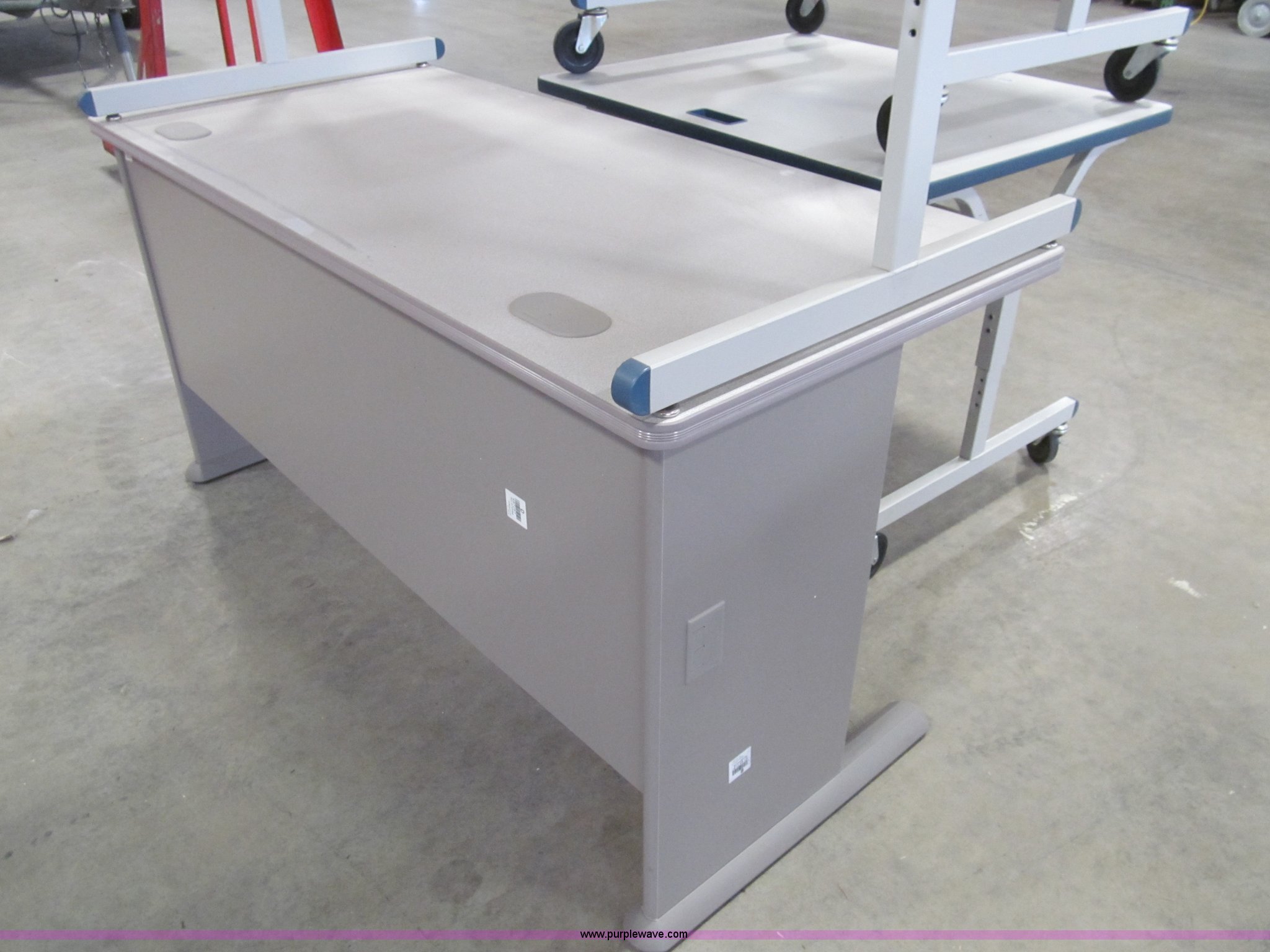 Purple Wave is selling a used Office Supplies and Equip. in Kansas. This item is a (4) computer tables with the following: (2) 5' x 30", (2) 3' x 30"